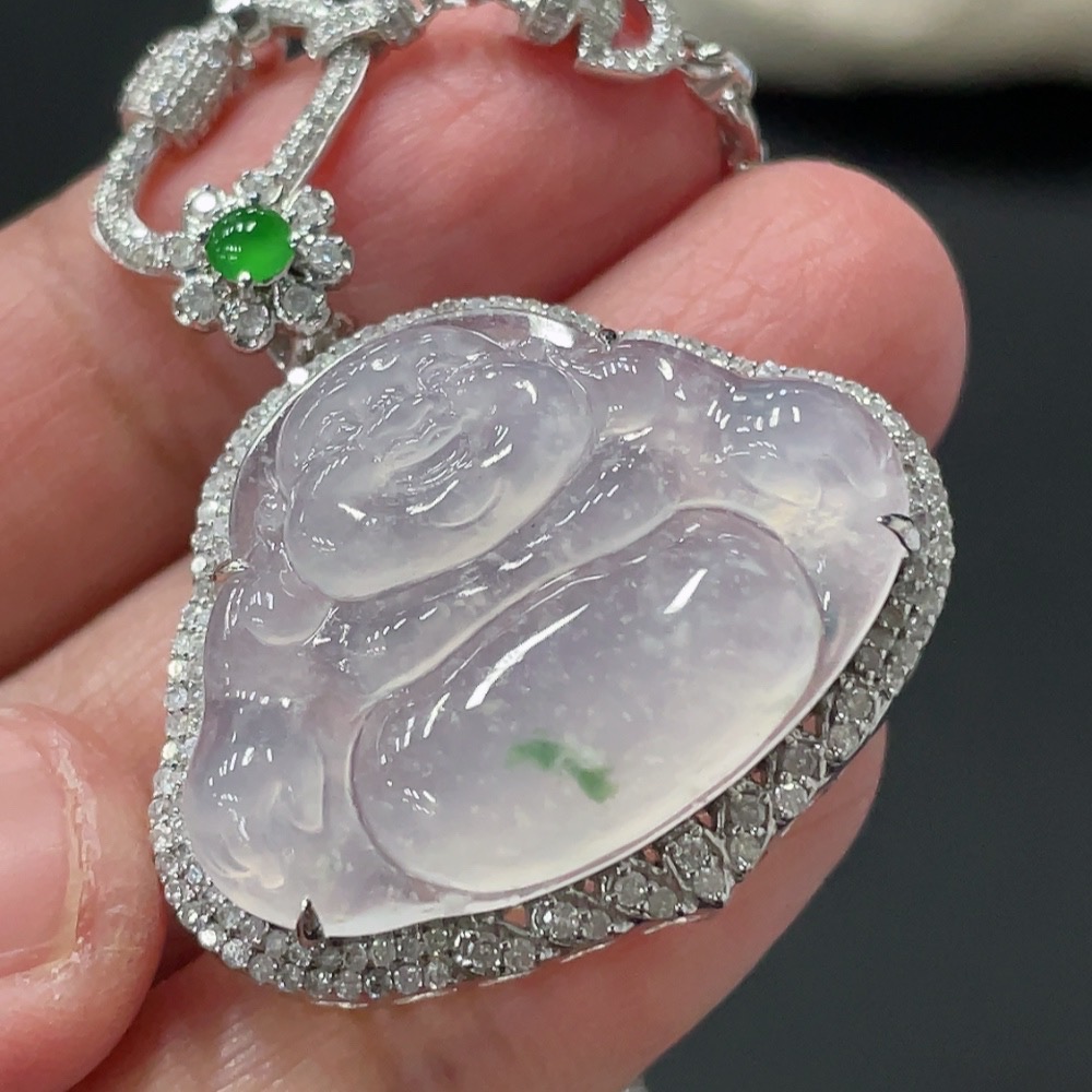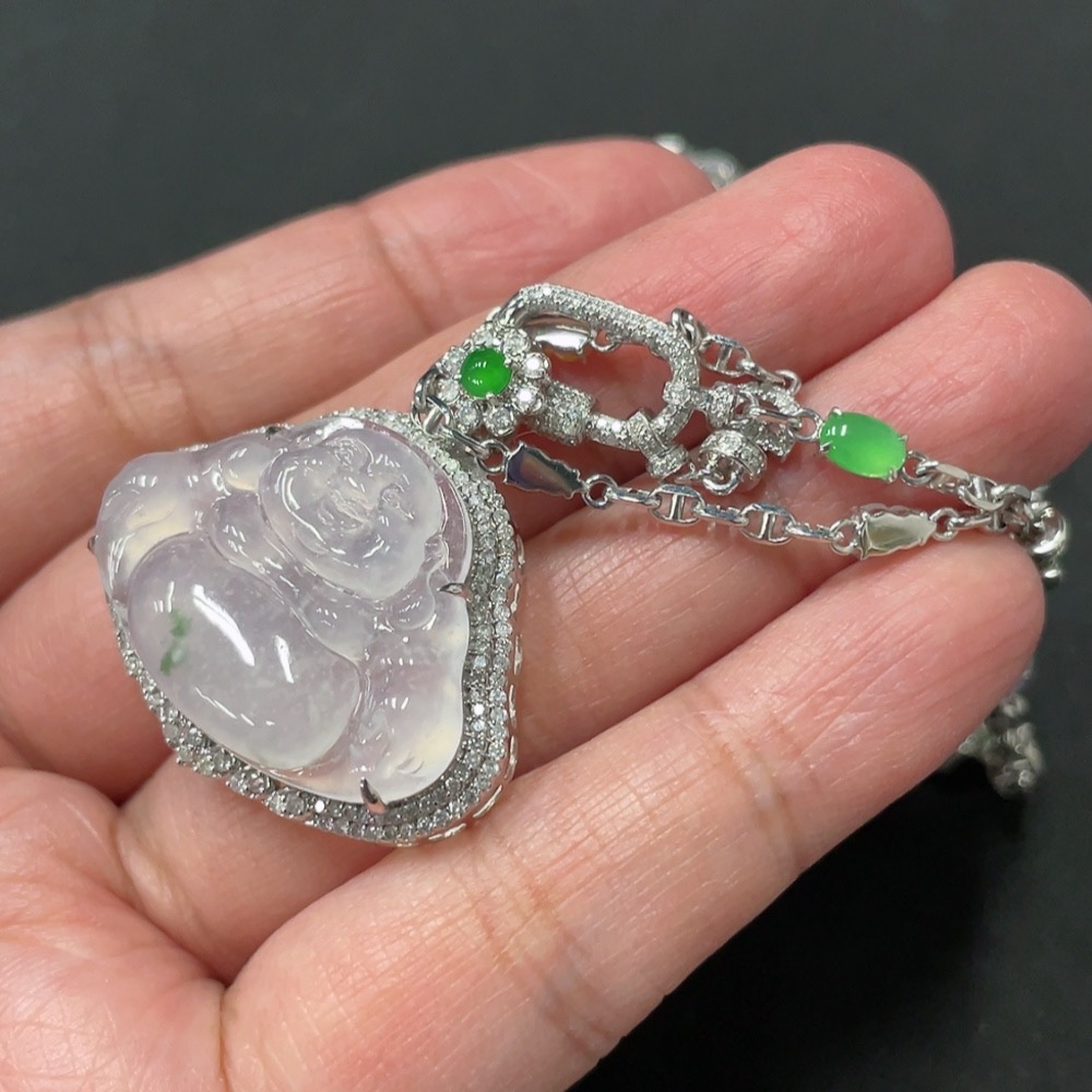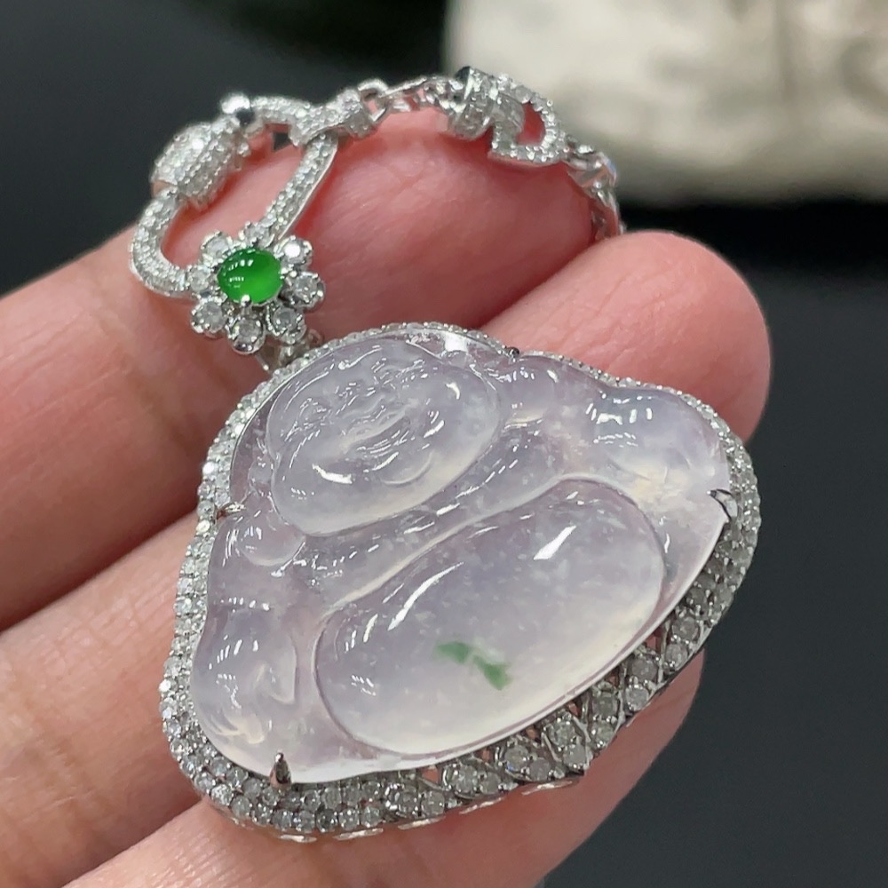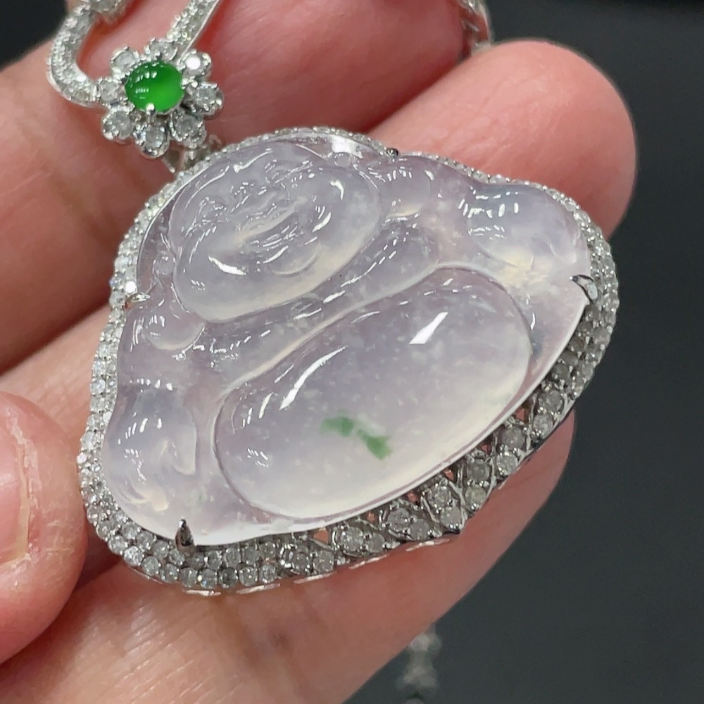 Jadeite Buddha Pendant with 18K Gold and Diamond Accents, Total Weight Approximately 12.48g