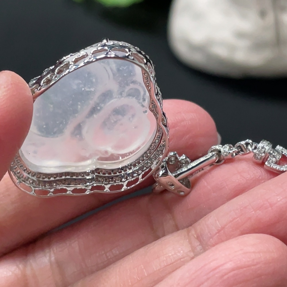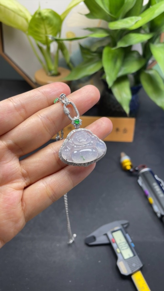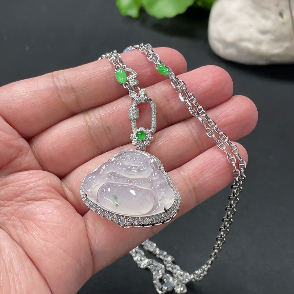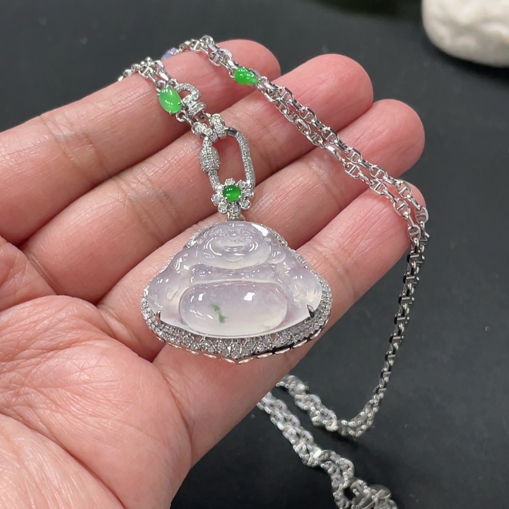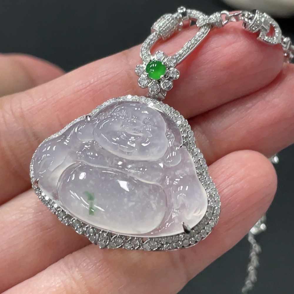 Jadeite Buddha Pendant with 18K Gold and Diamond Accents, Total Weight Approximately 12.48g