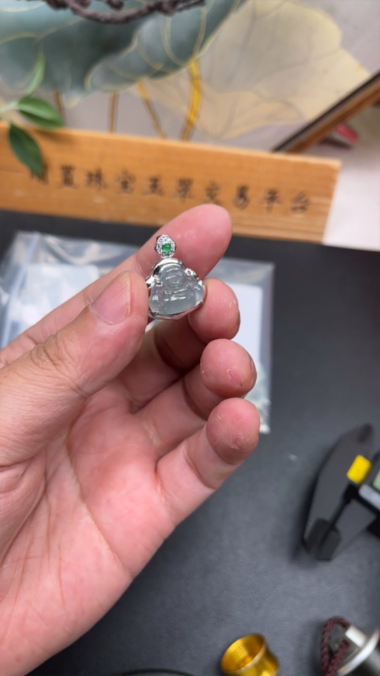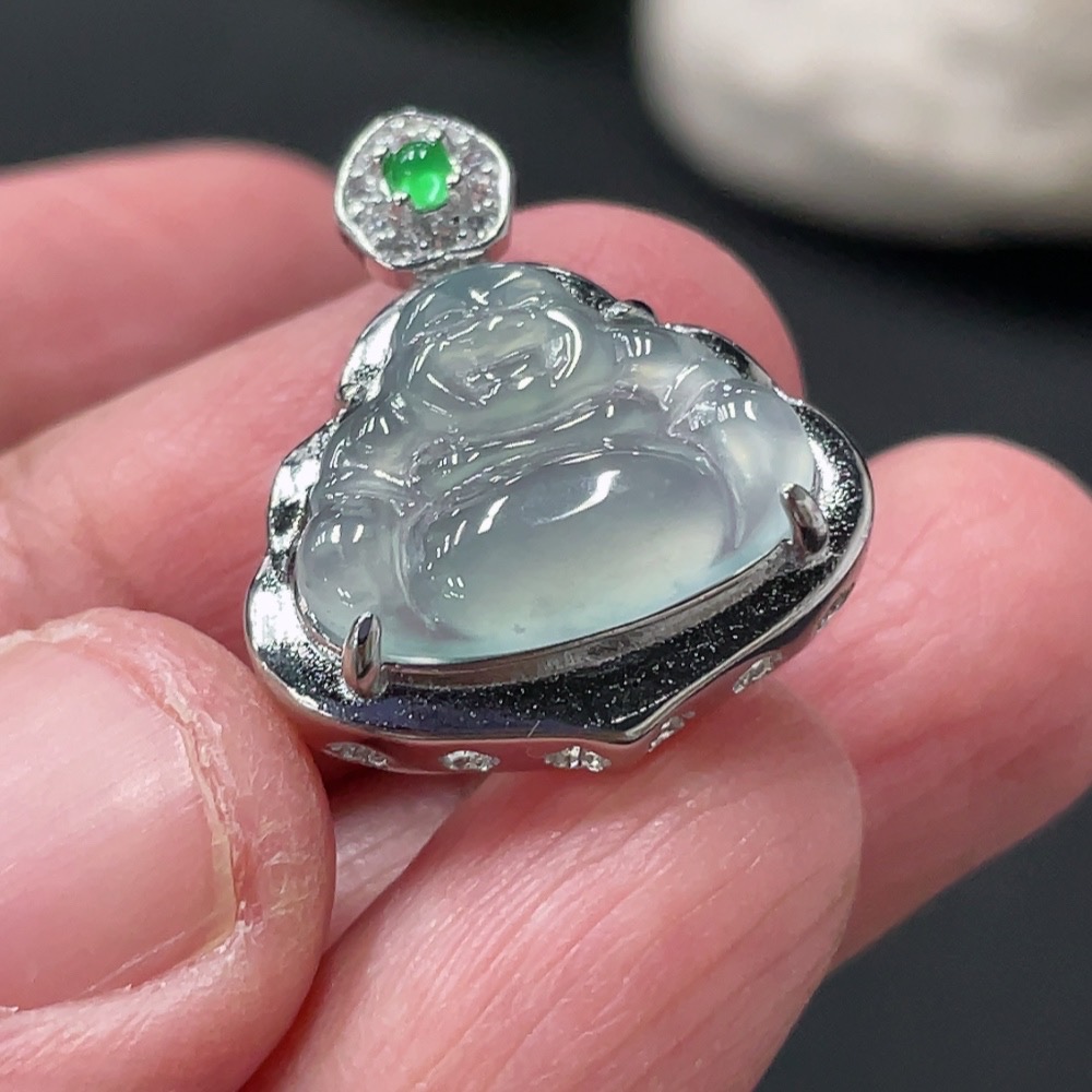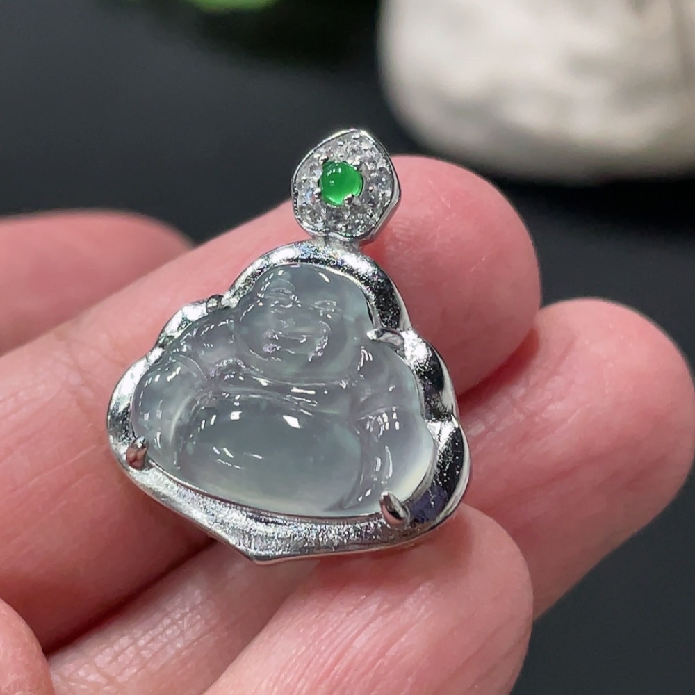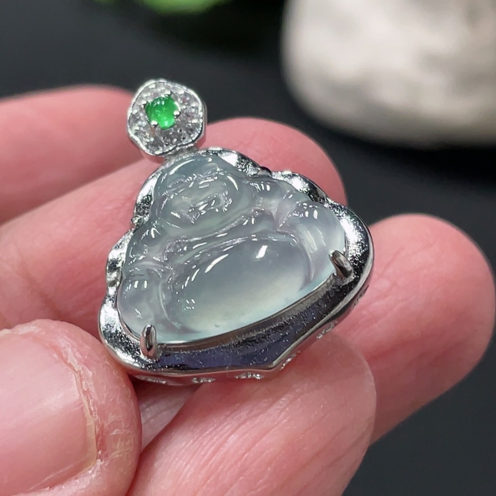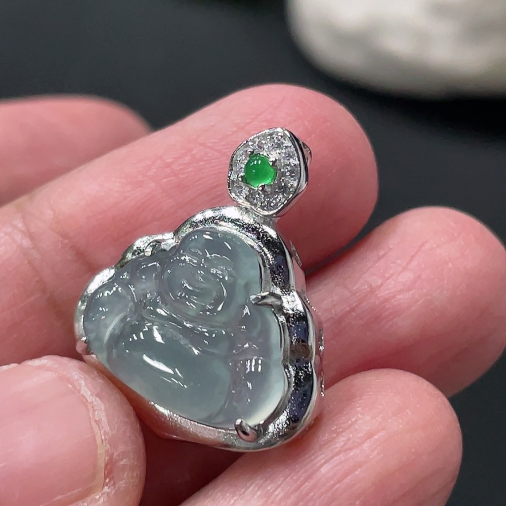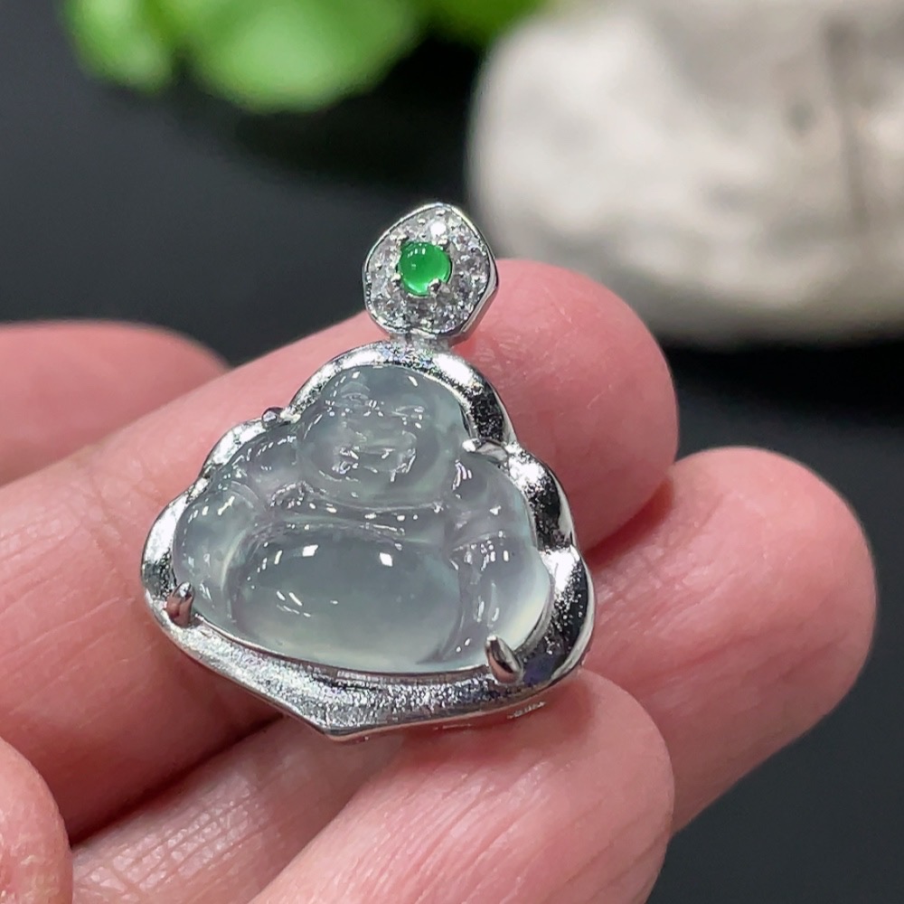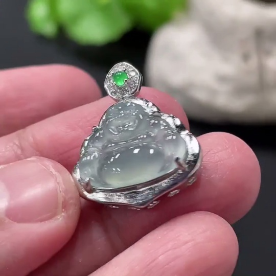 Jadeite Buddha Inlaid Pendant Non-gold Inlaid Total Weight About 5g Accessory Stones Non-A