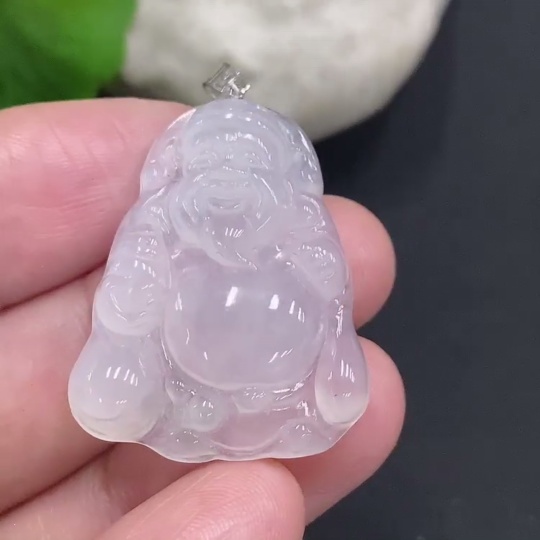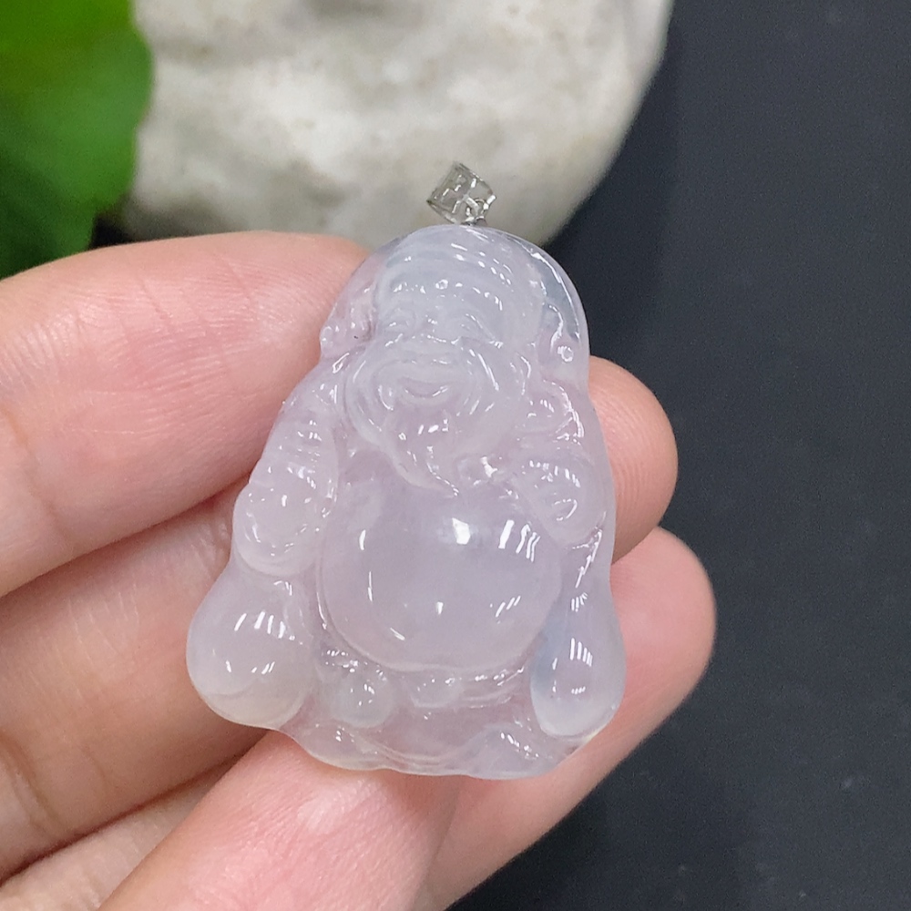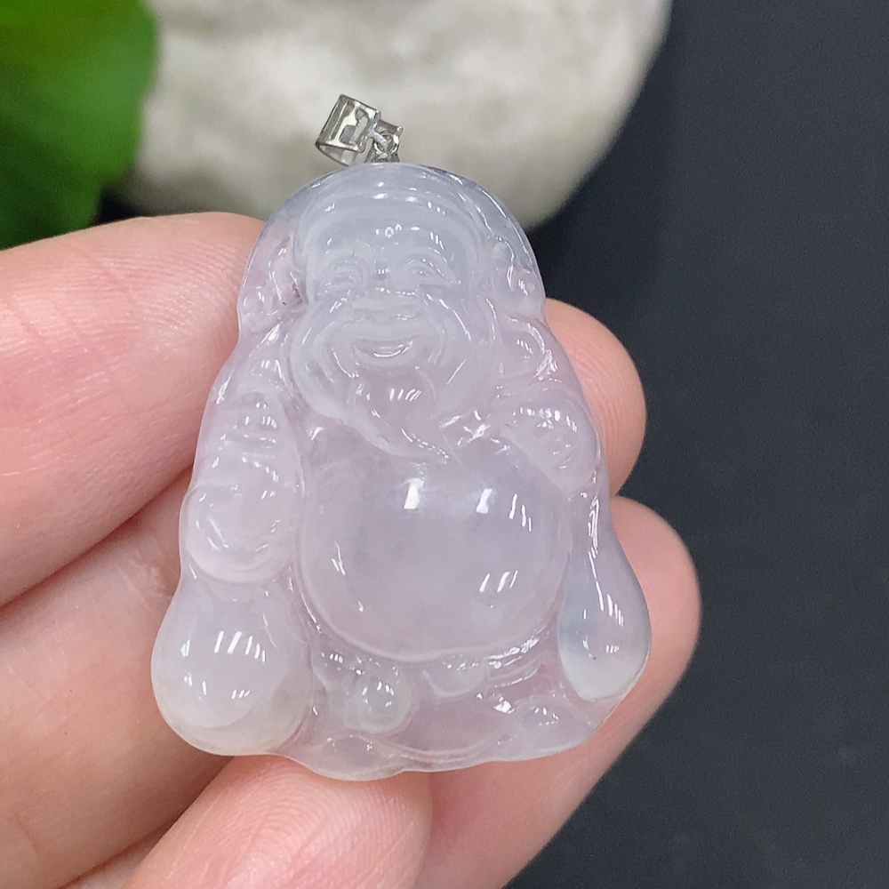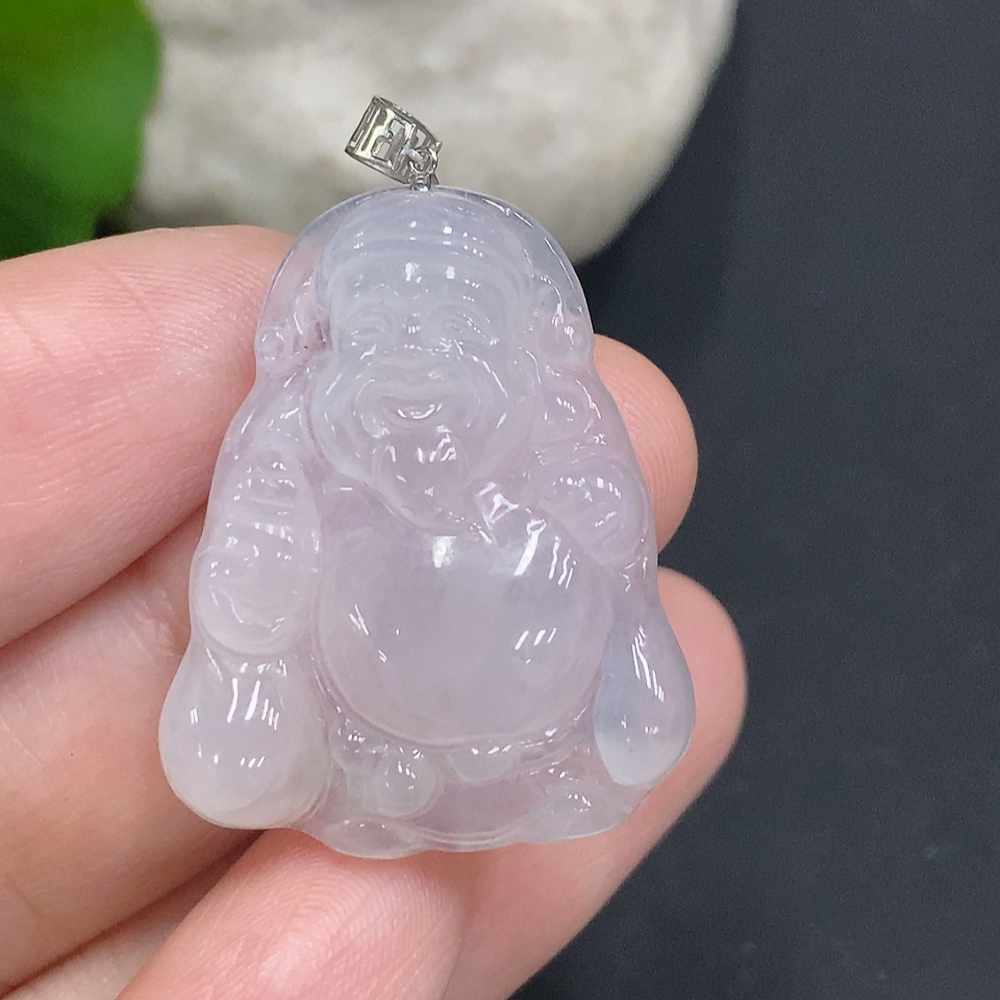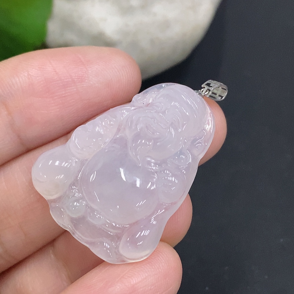 Jadeite God of Wealth Pendant with 18K Gold Clasp, Total Weight Approximately 5.6g