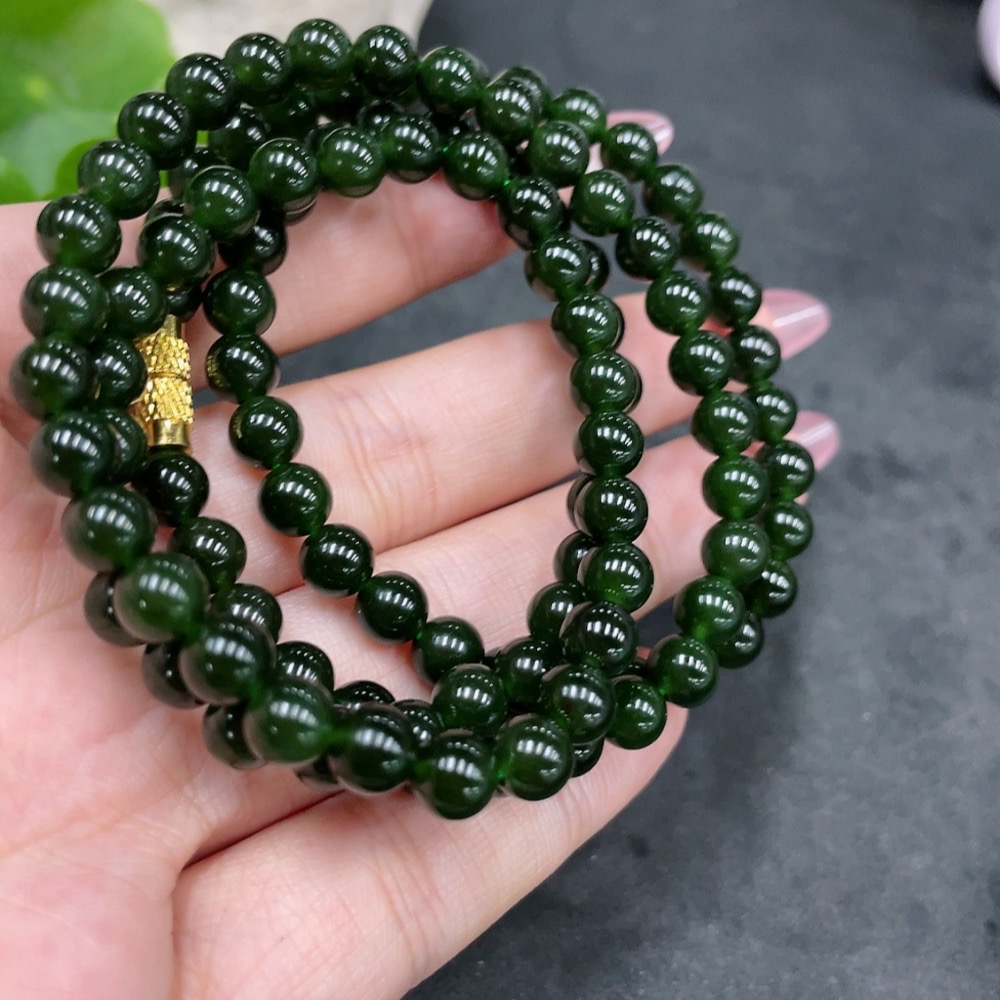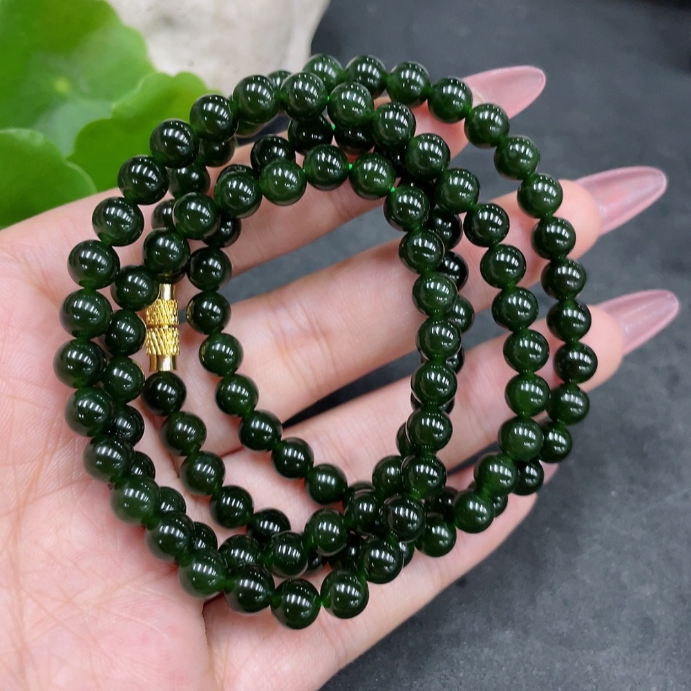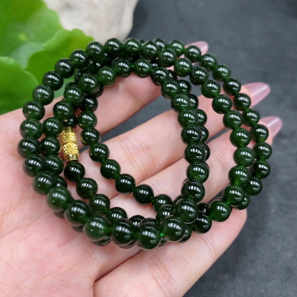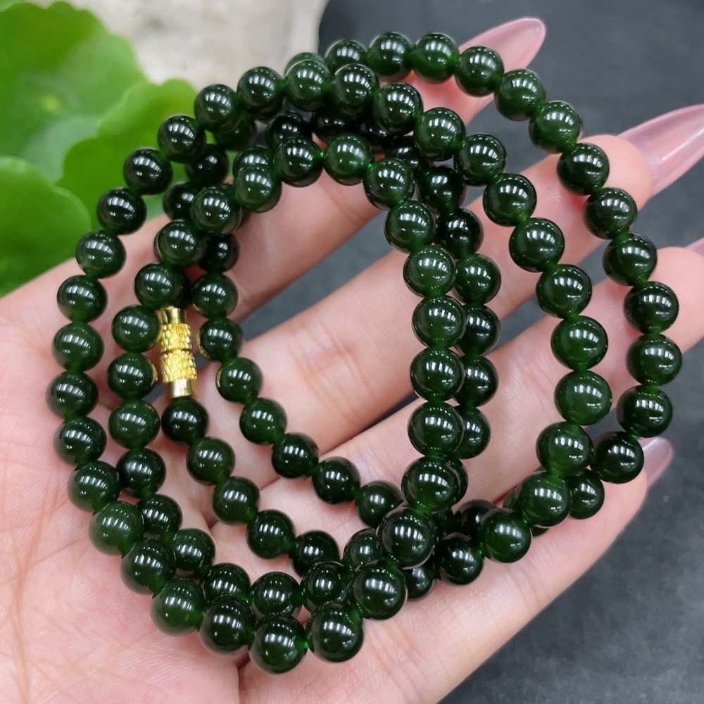 Hetian Jade Bead Necklace Approx. 5.8 mm Total Weight Approx. 37.9g Non-Gold