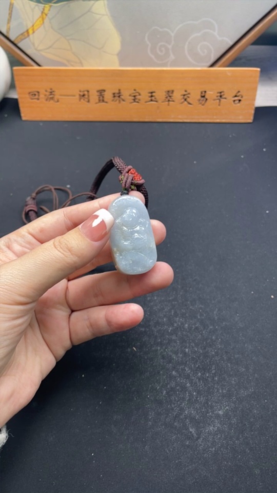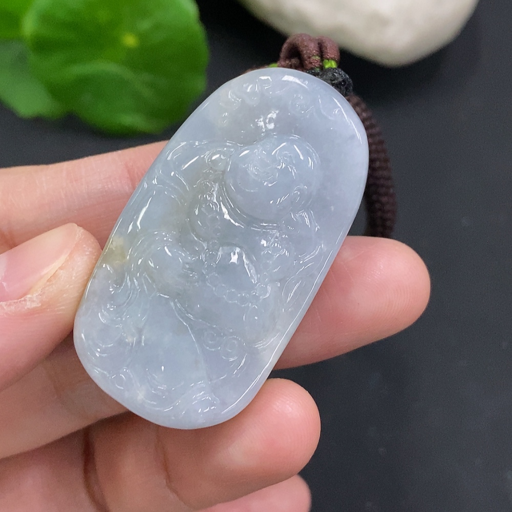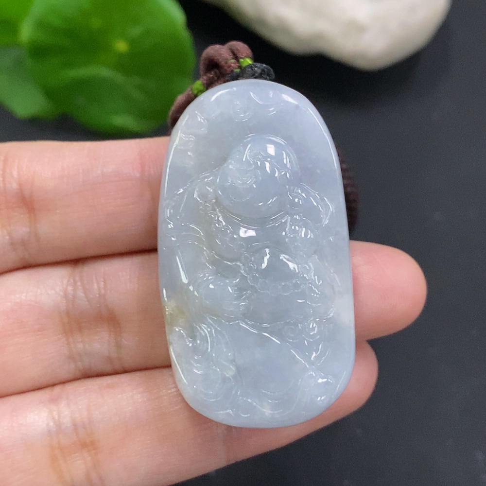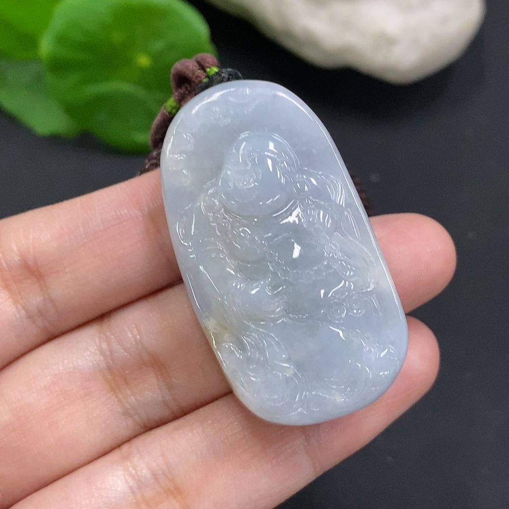 Jadeite Buddha Pendant, Total Weight Including Rope Approximately 38.3g