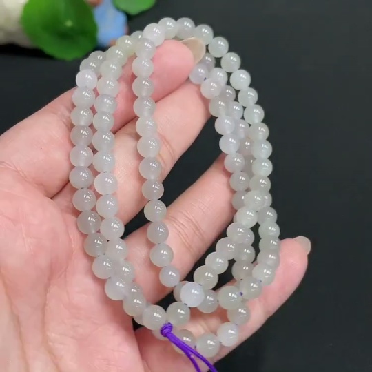 Hetian Jade Bead Necklace Approx. 5.5mm Total Weight Approx. 34g