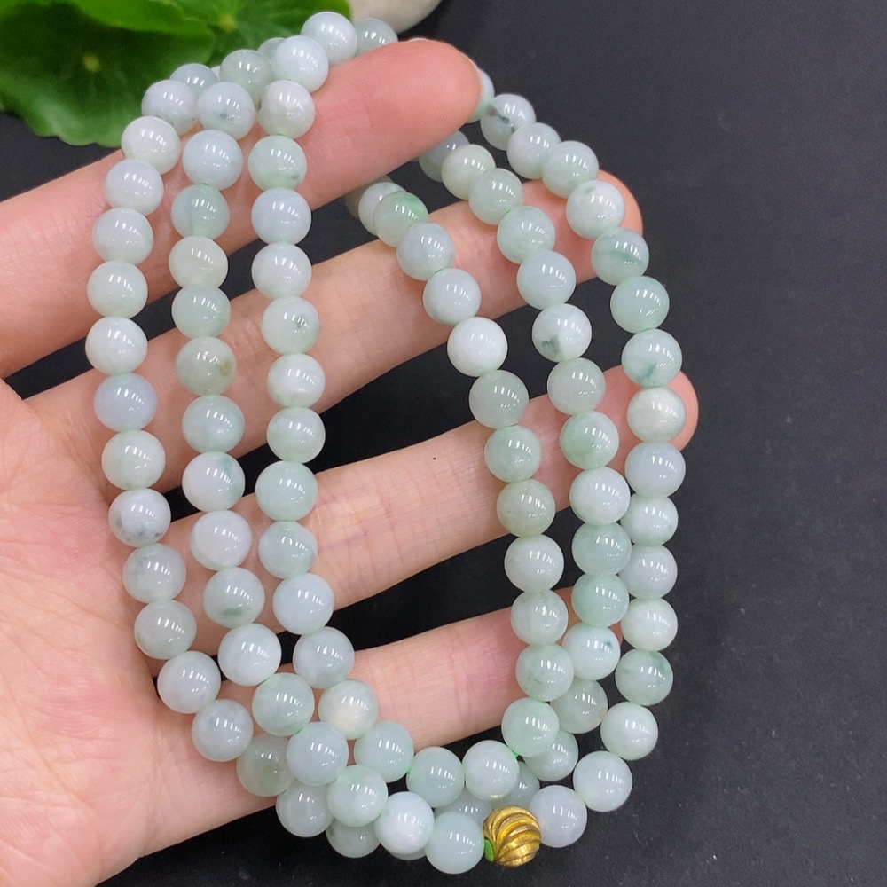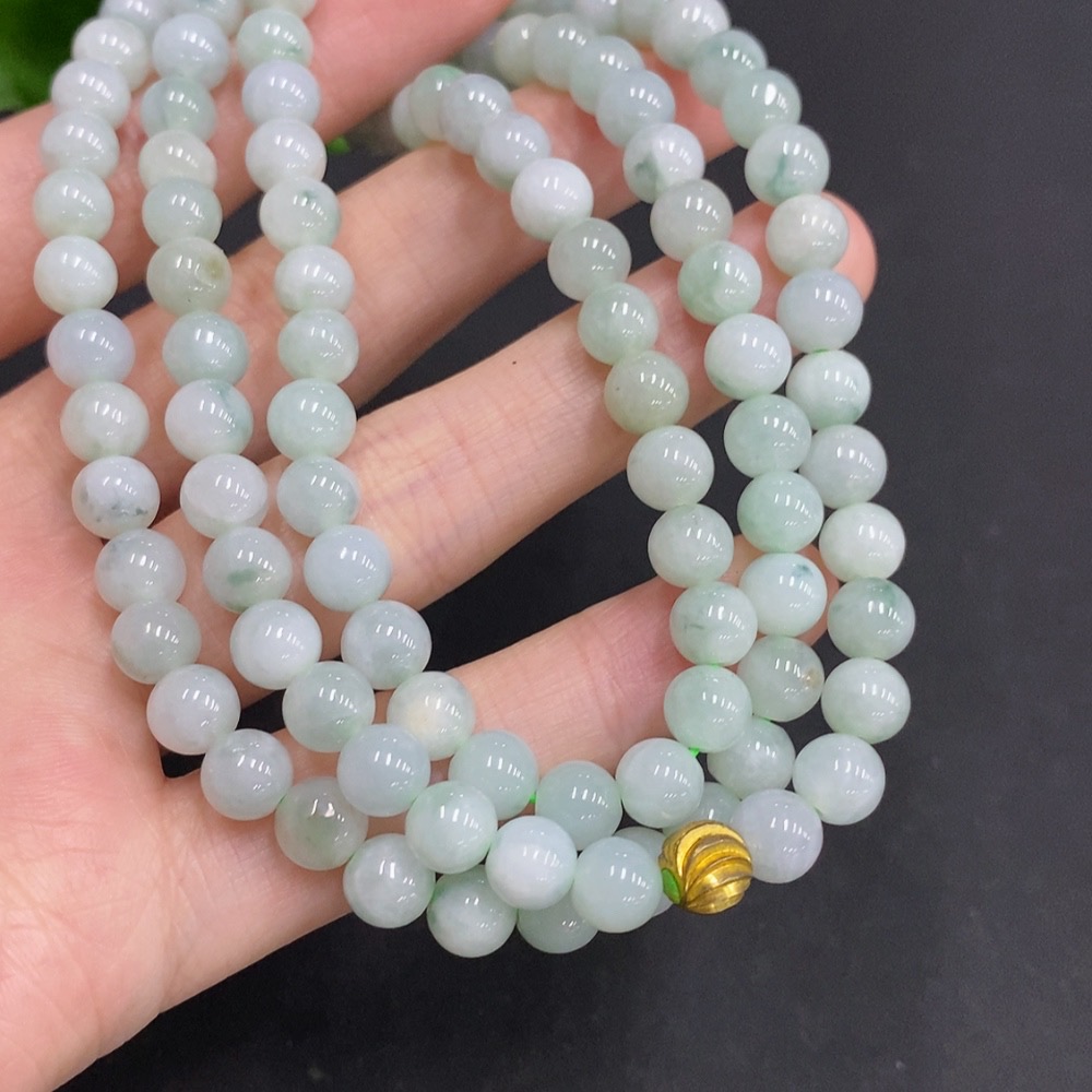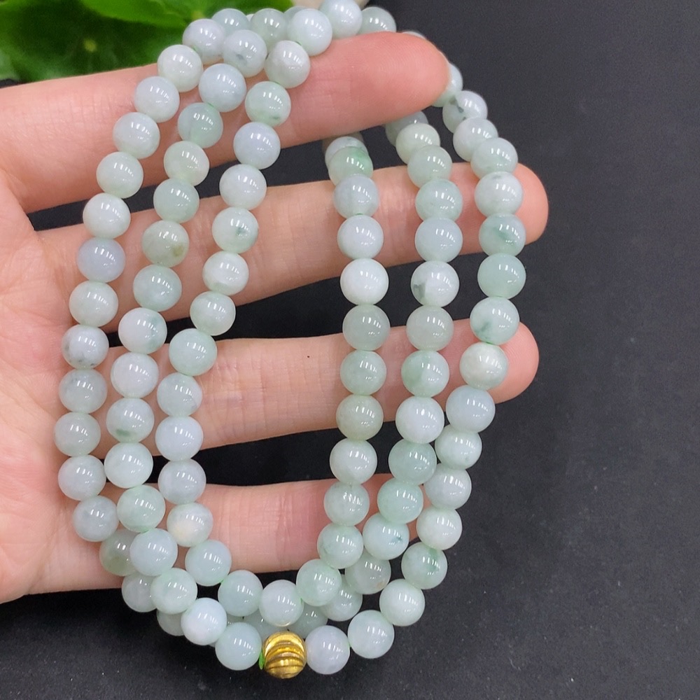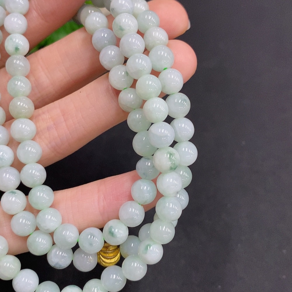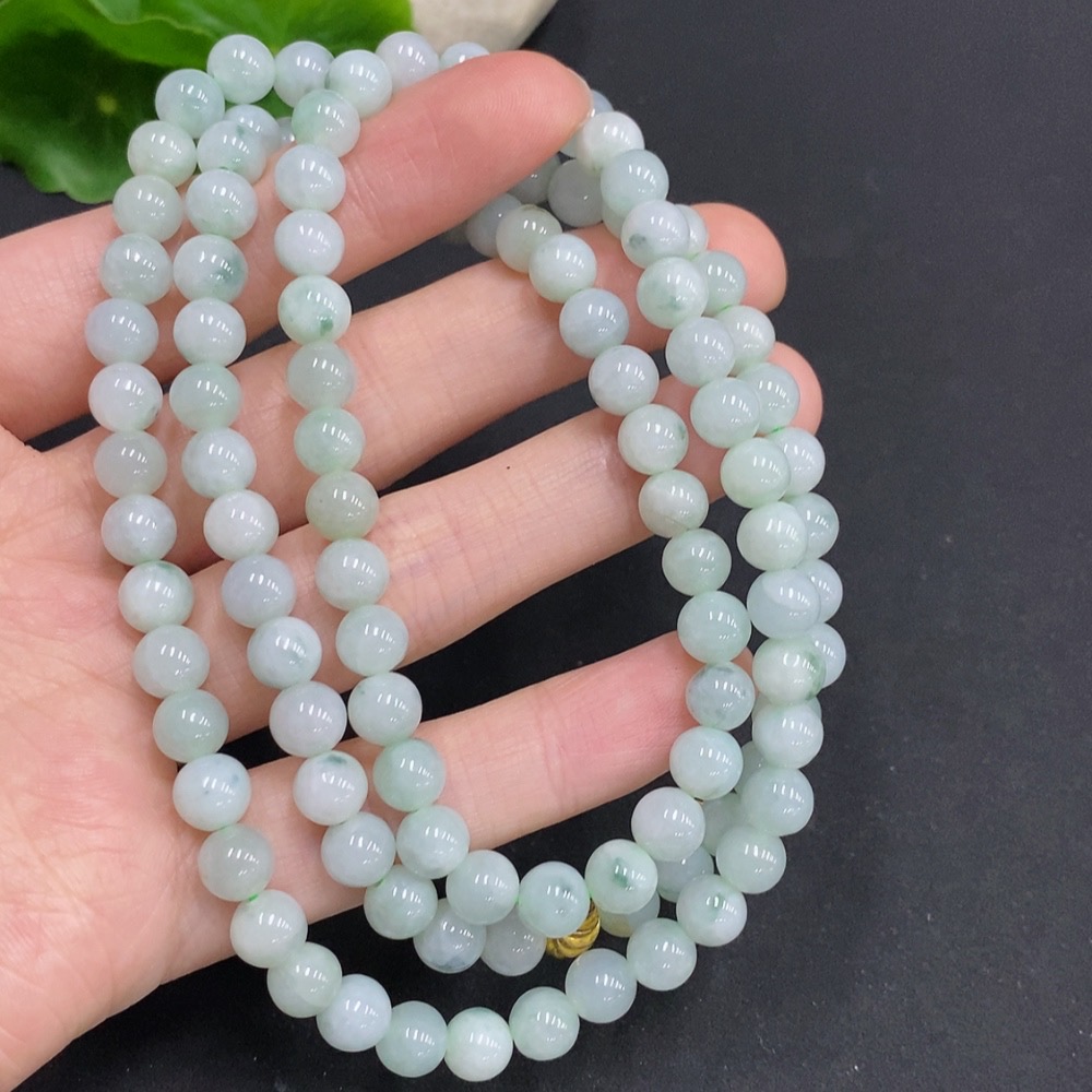 Jadeite Bead Necklace Non-Gold Inlaid Total Weight Approximately 59g Size About 6.7mm