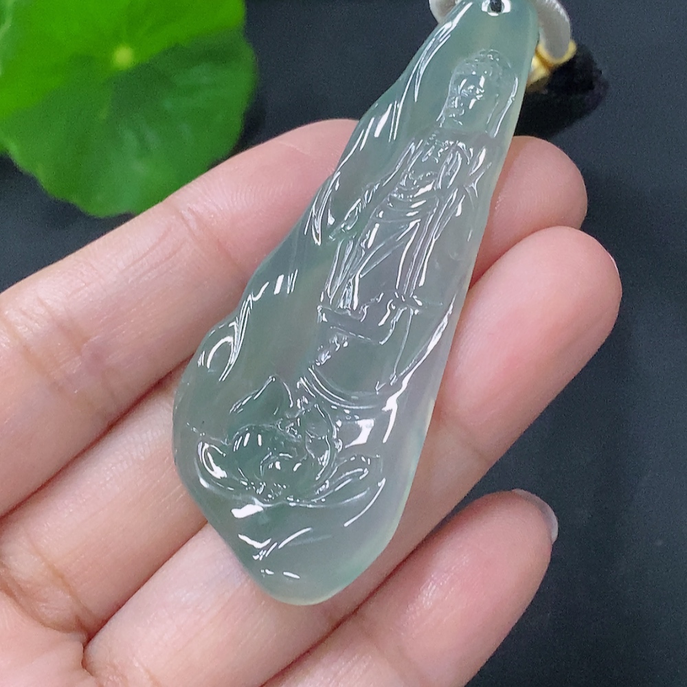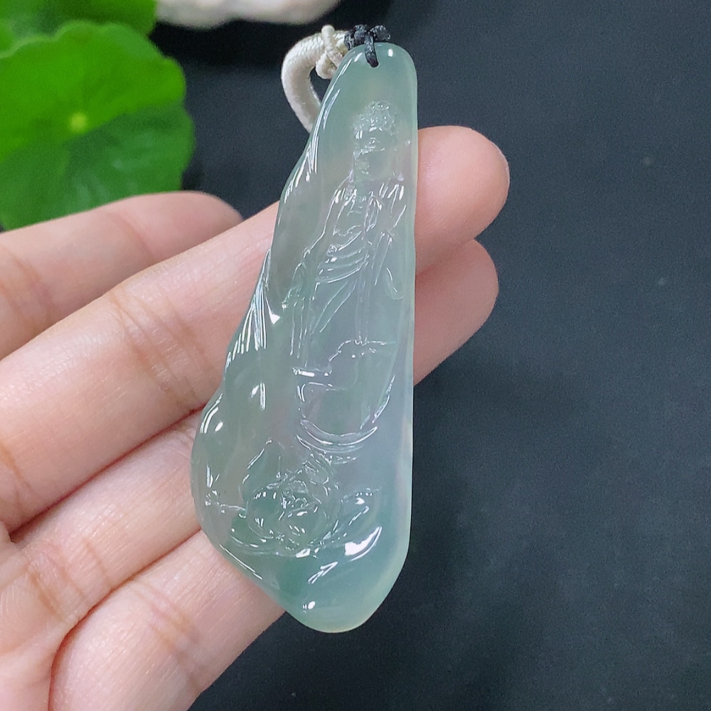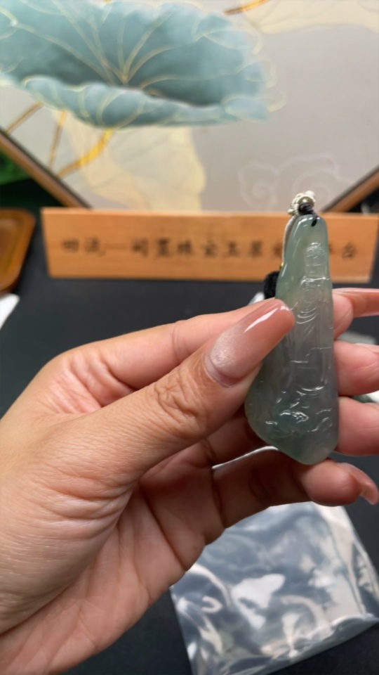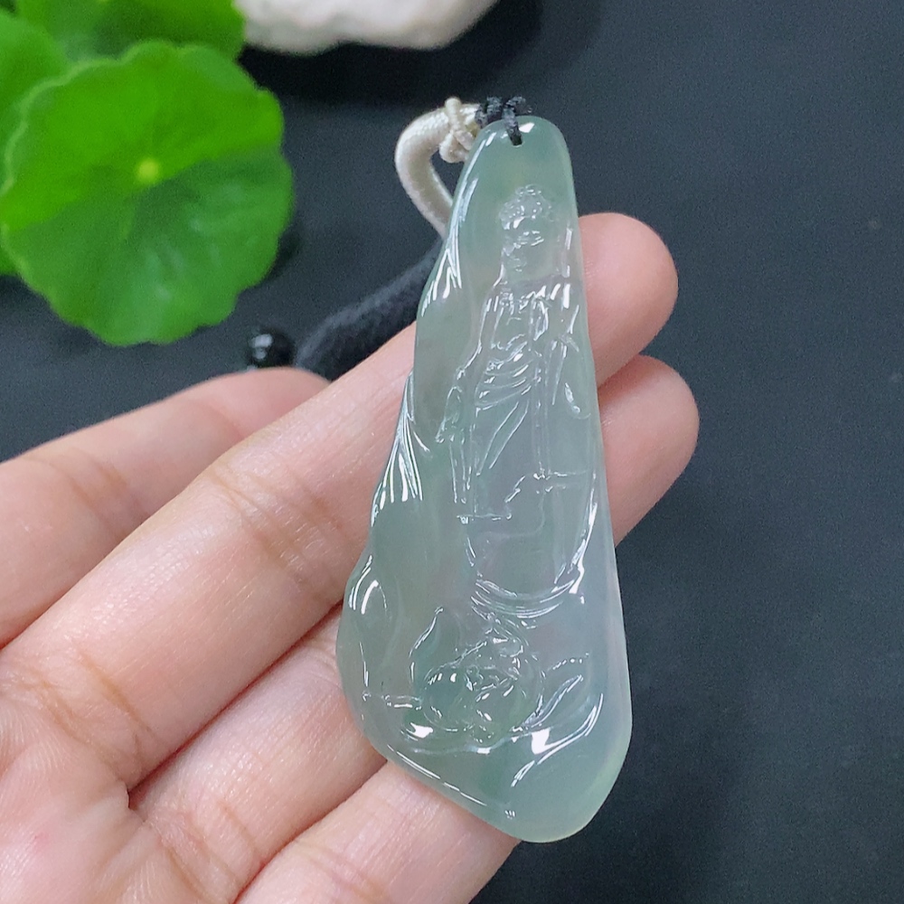 Jadeite Pendant Buddha Amulet Total Weight Approx. 14g Including Rope