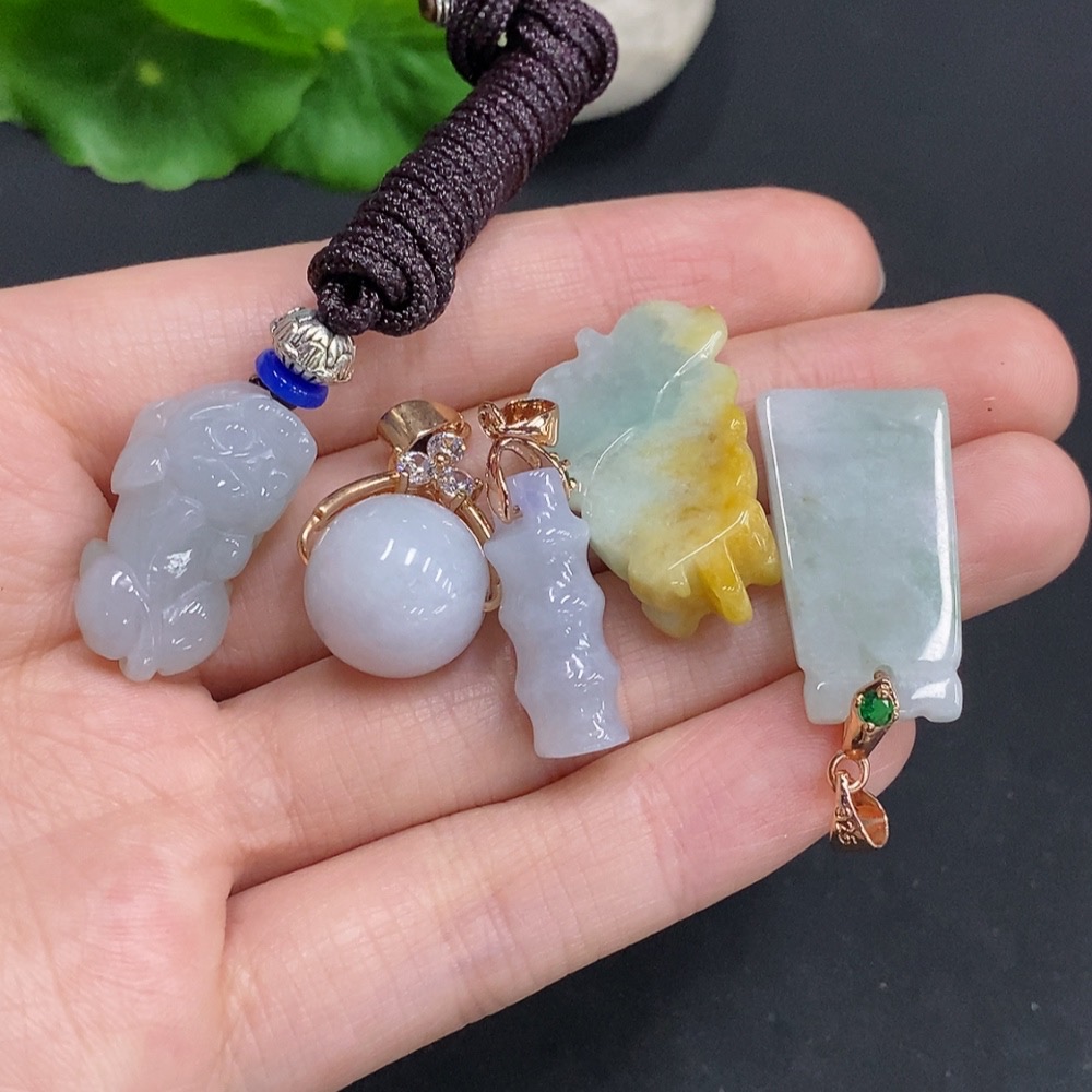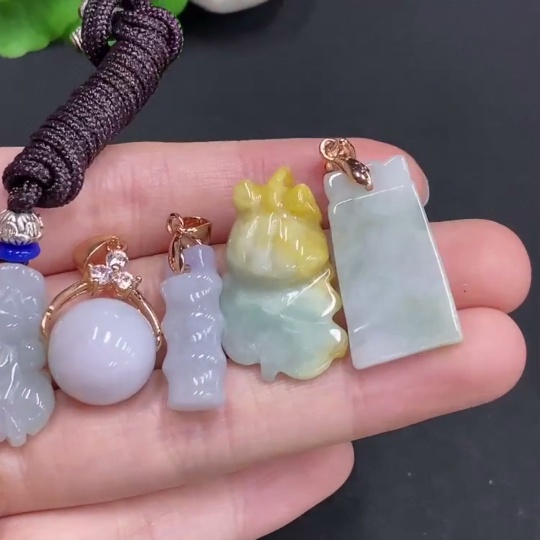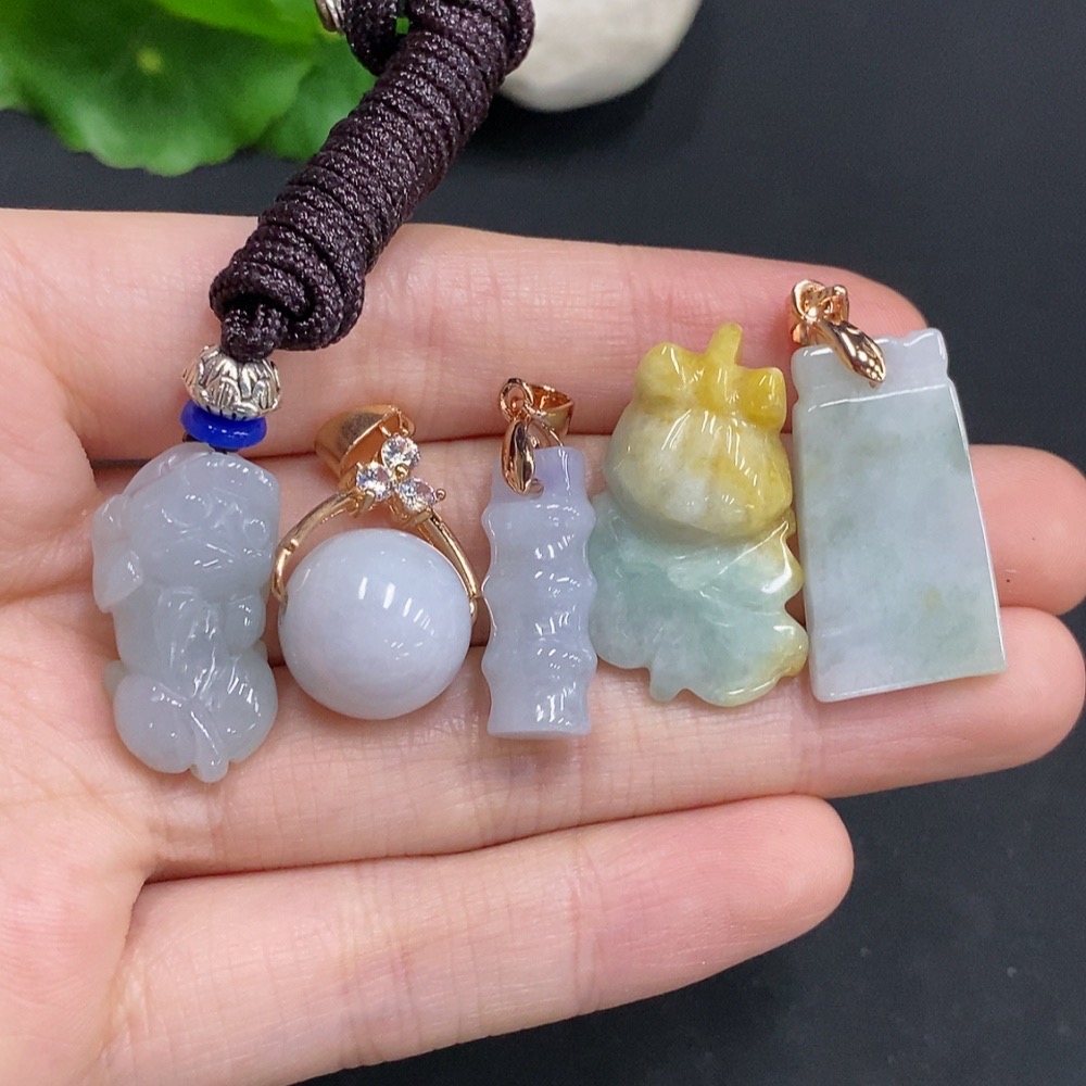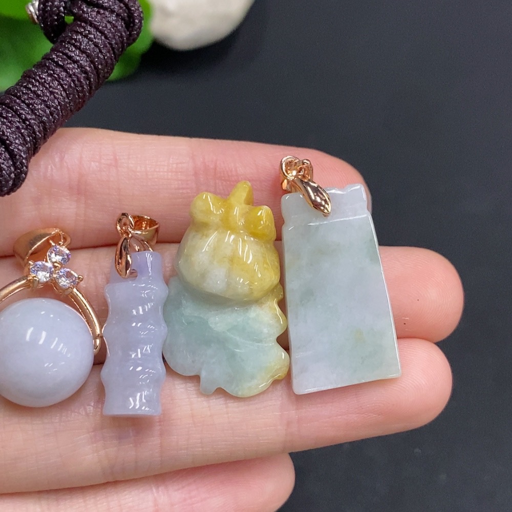 Jadeite Pendants Sell as a Lot Non-Gold Inlaid