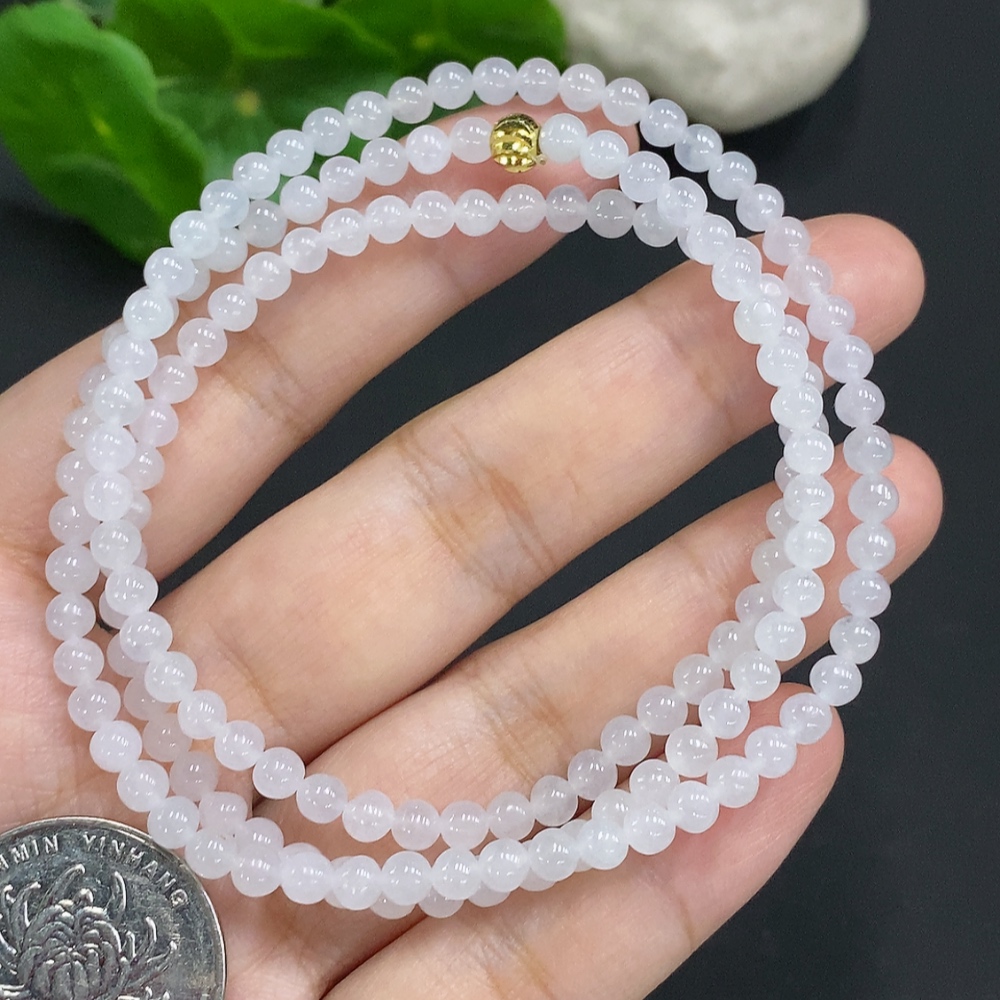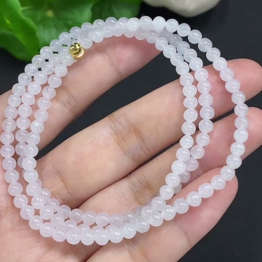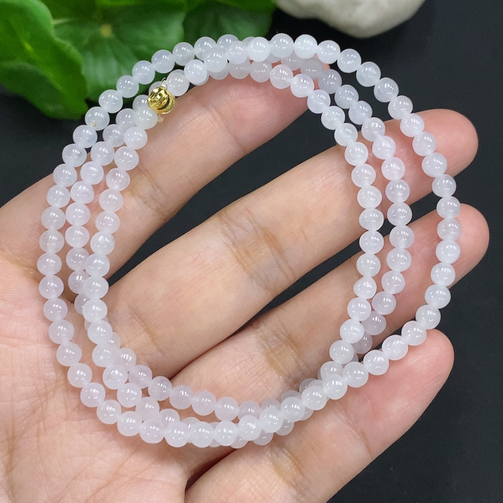 Jadeite Bead Necklace Approx. 3.8mm Non-Gold Total Weight Approx. 16.3g