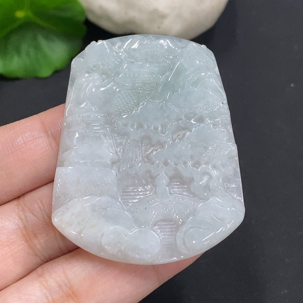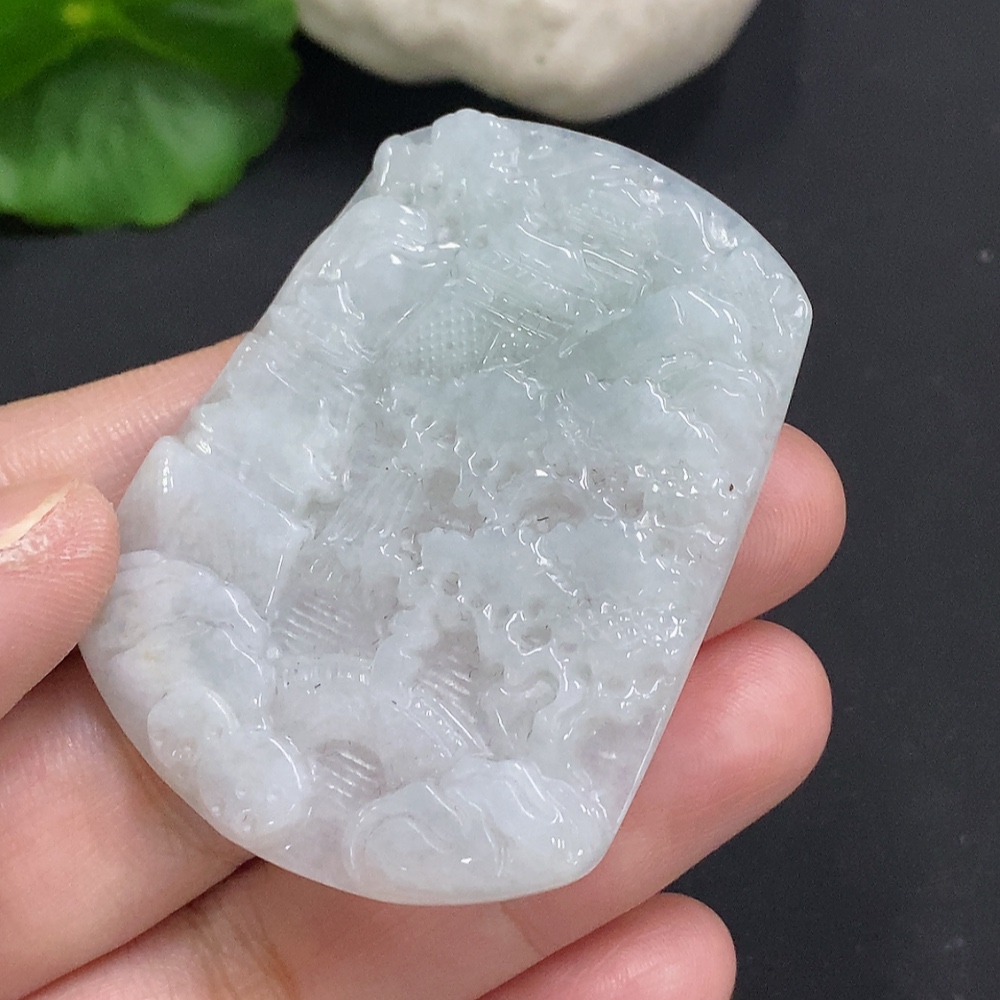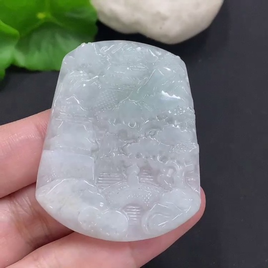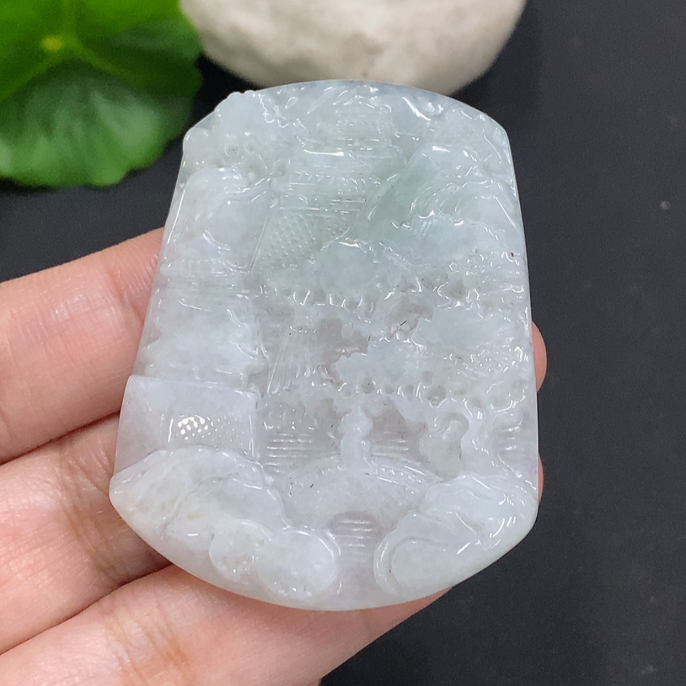 Jadeite Landscape Pendant, Total Weight Approximately 20.9g