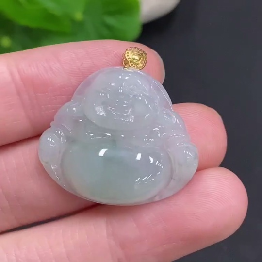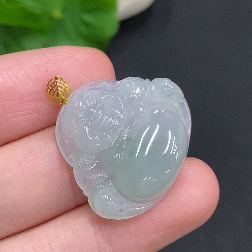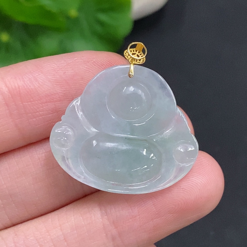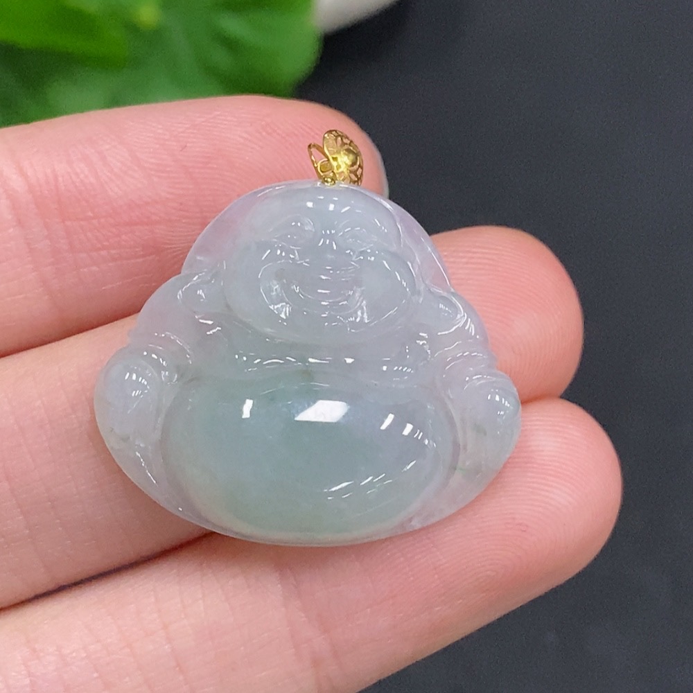 Jadeite Buddha Pendant with 18K Gold Clasp, Total Weight Approximately 5.6g