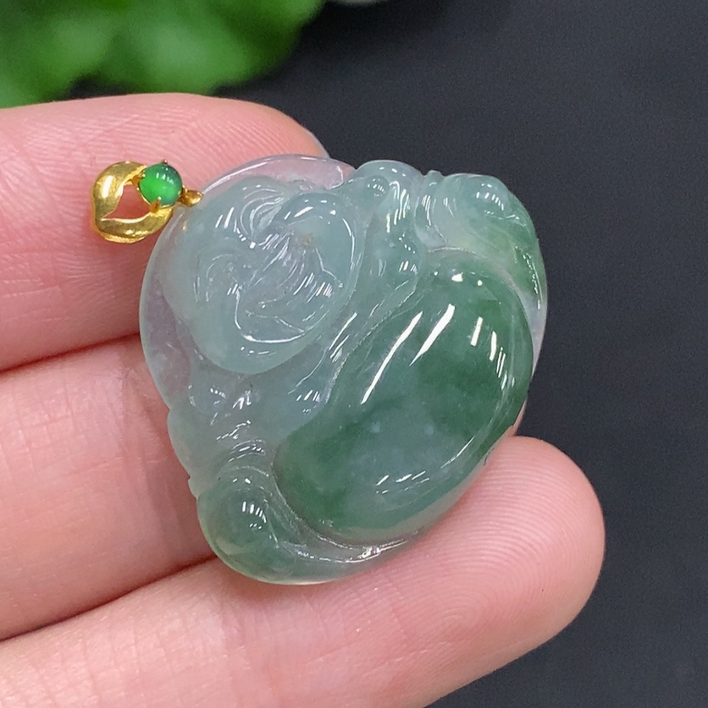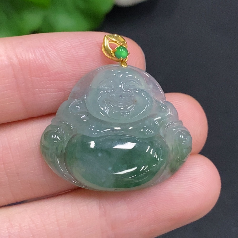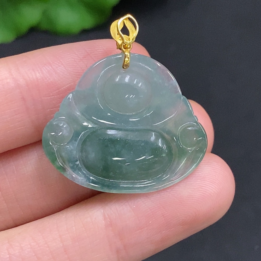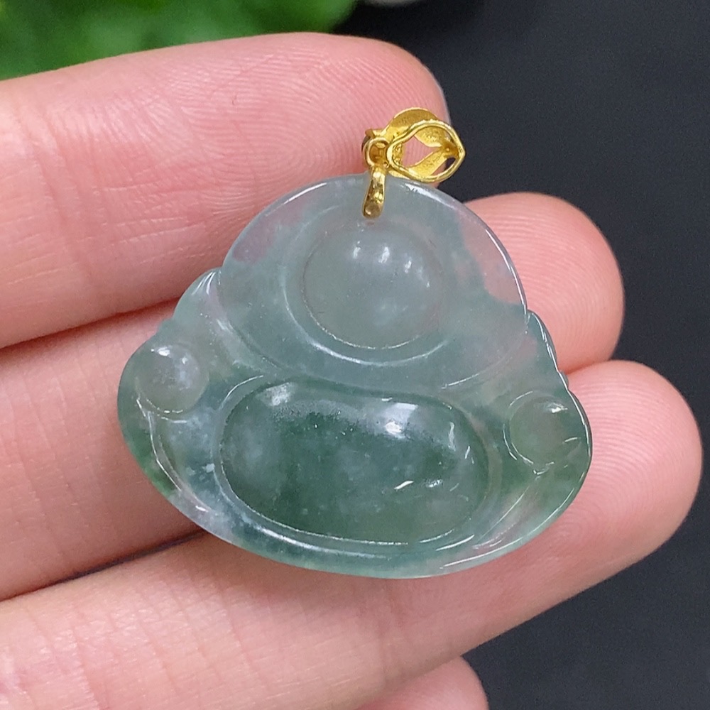 Jadeite Buddha Pendant with 18K Gold Clasp, Total Weight Approximately 5.7g