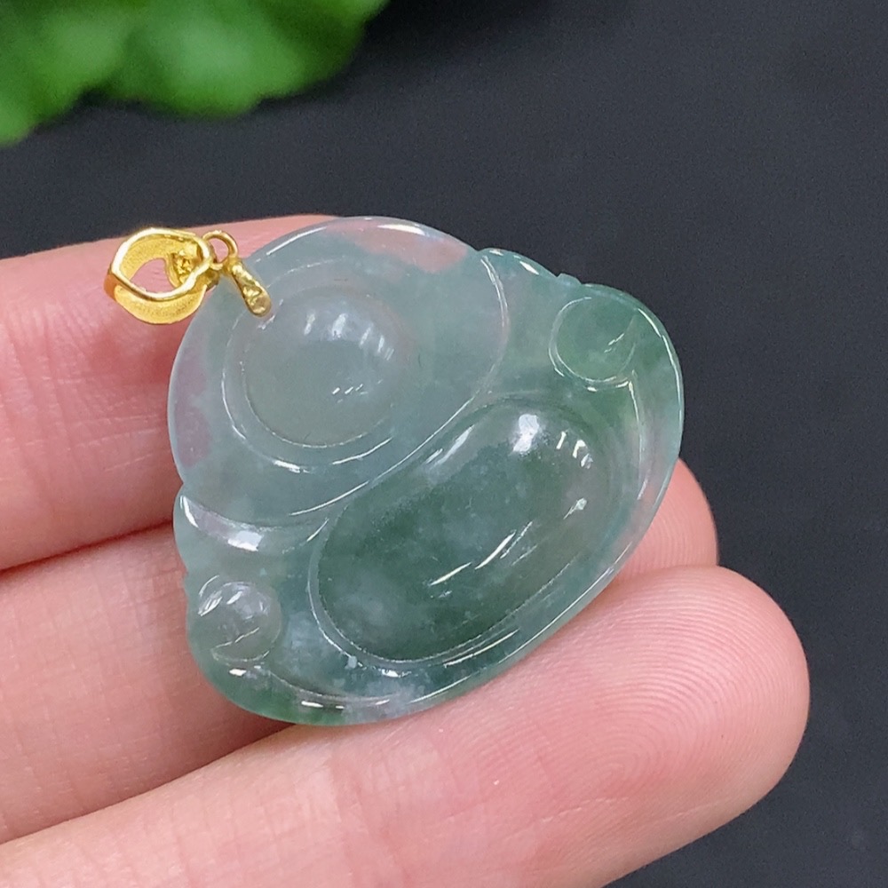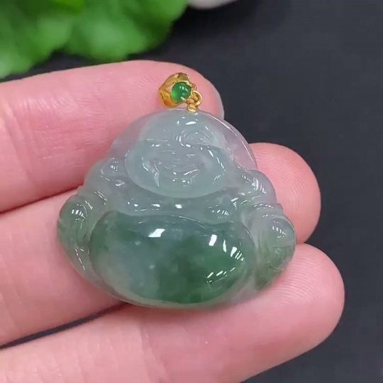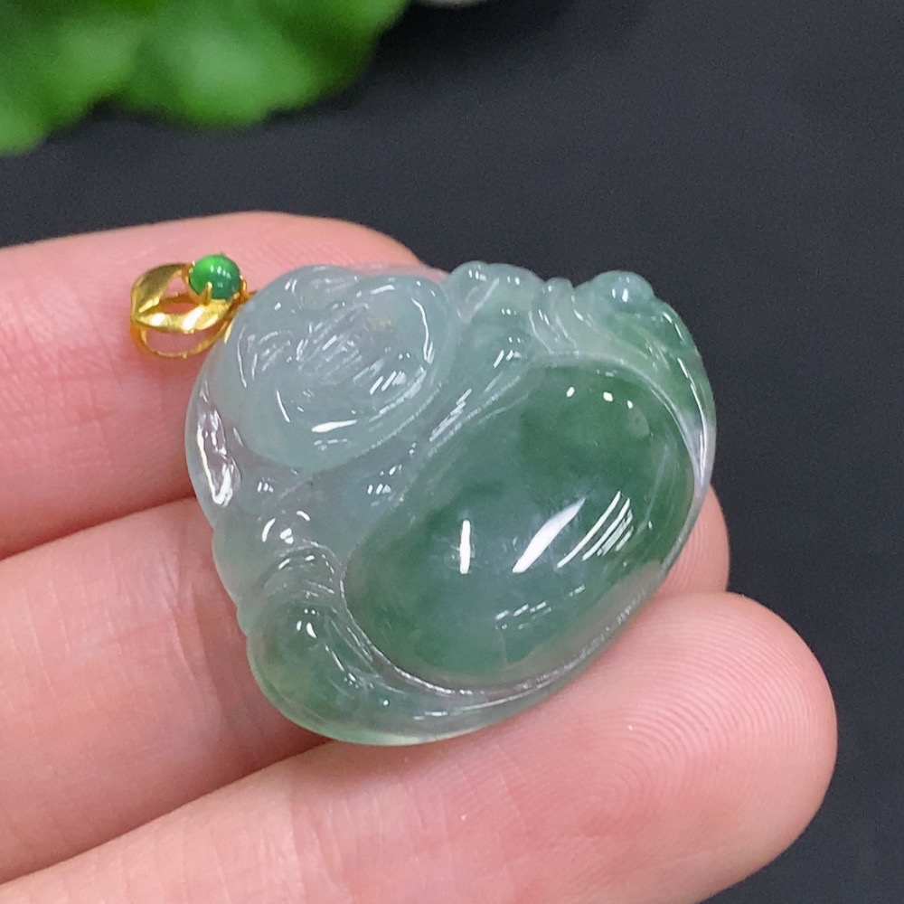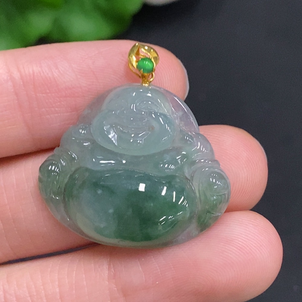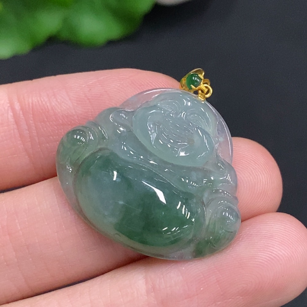 Jadeite Buddha Pendant with 18K Gold Clasp, Total Weight Approximately 5.7g