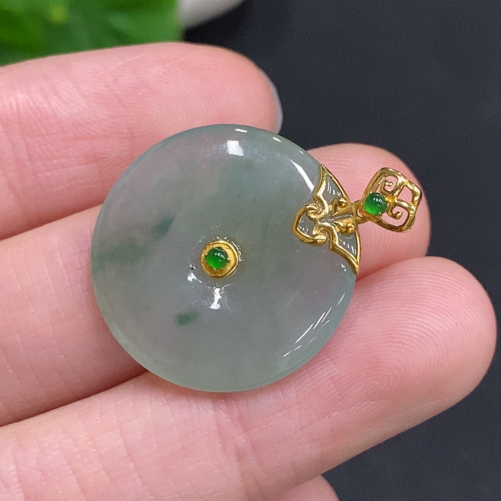 Jadeite Peace Knot with 18K Gold Clasp, Total Weight Approximately 4.2g