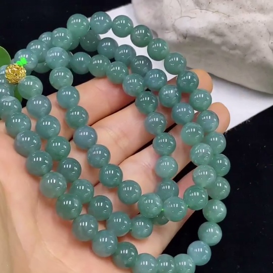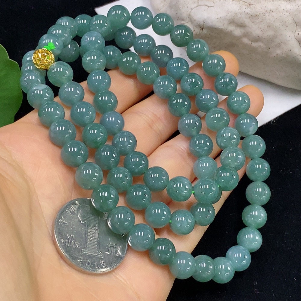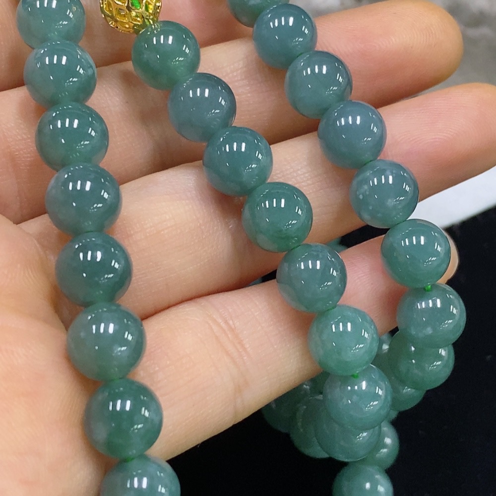 Jadeite Bead Necklace Approx. 8.6mm Non-Gold Total Weight Approx. 87.55g