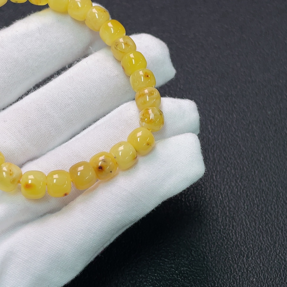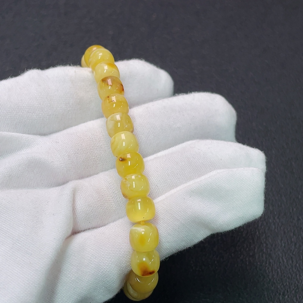 Amber and Beeswax Bracelet with Partial Repair, Total Weight Approx. 8.09g, Size About 7.8mm