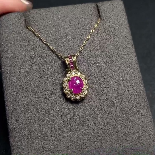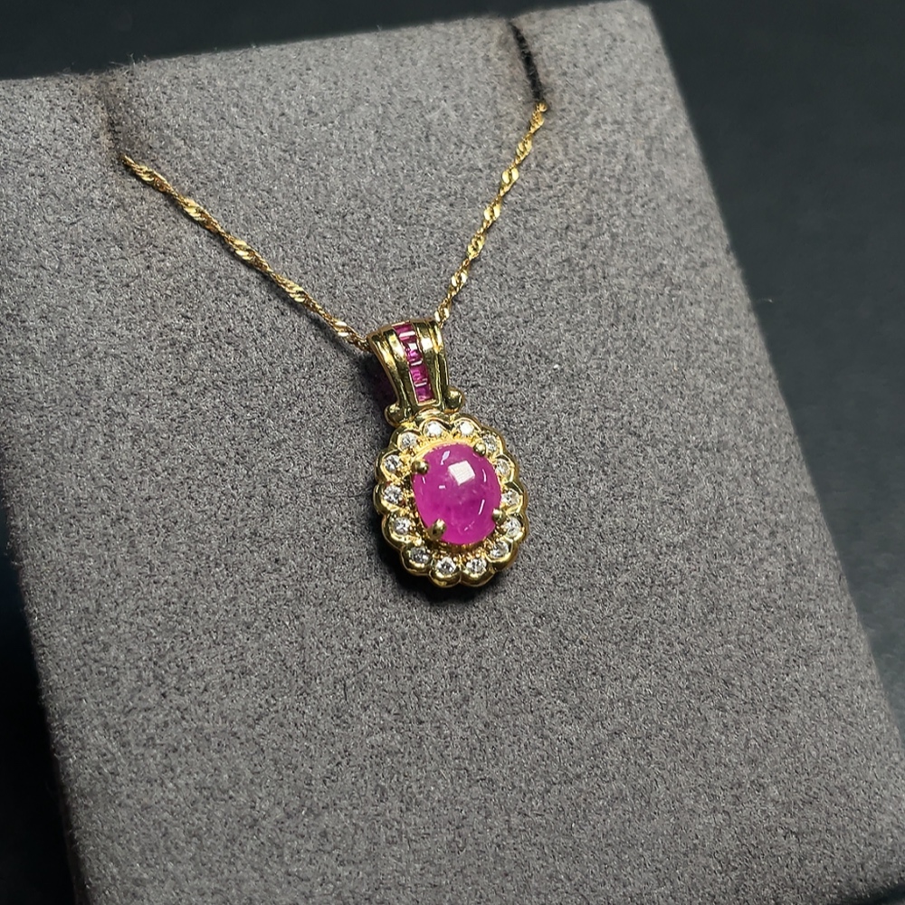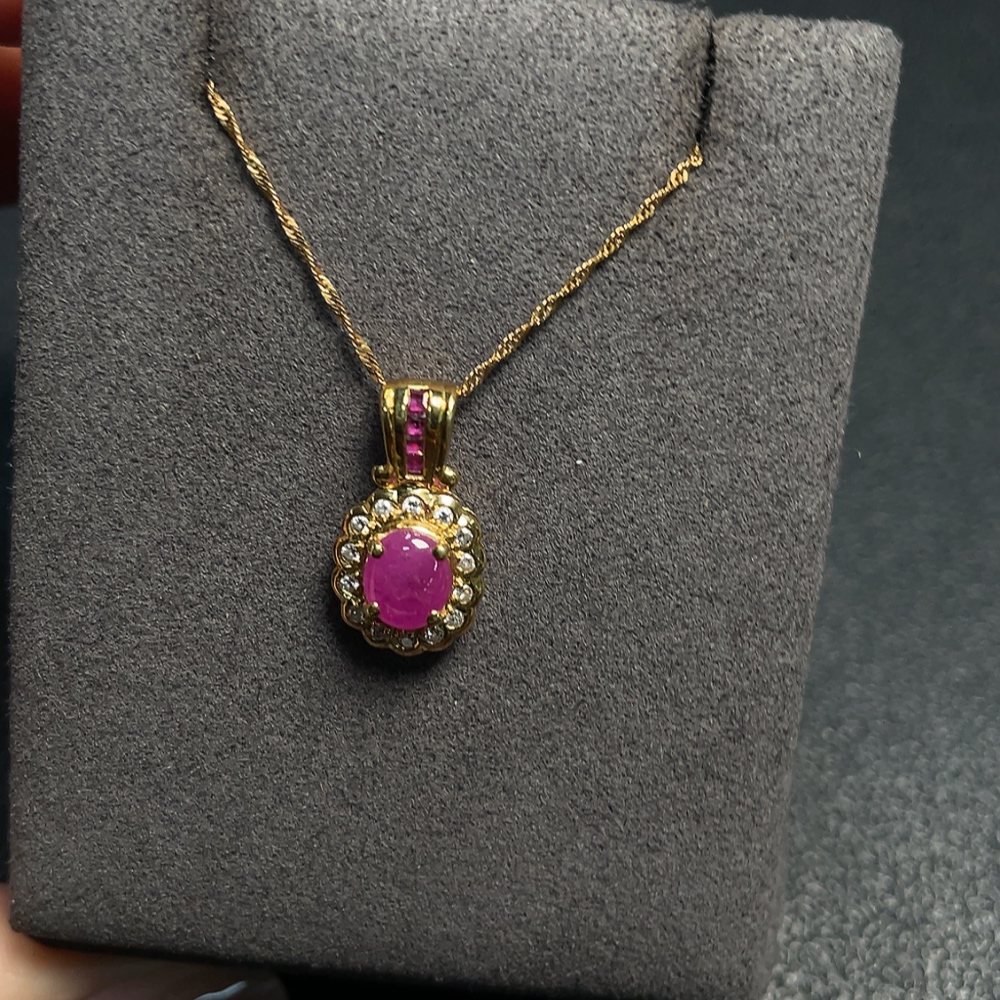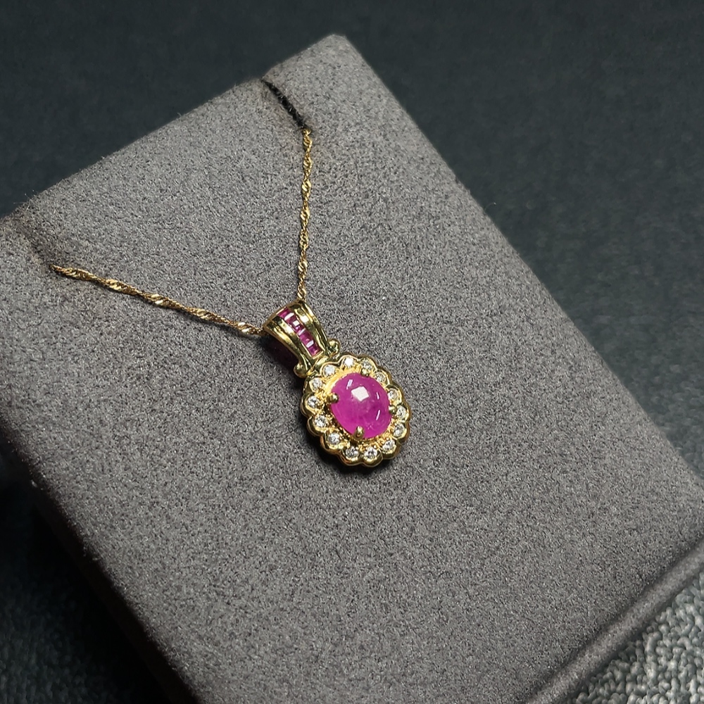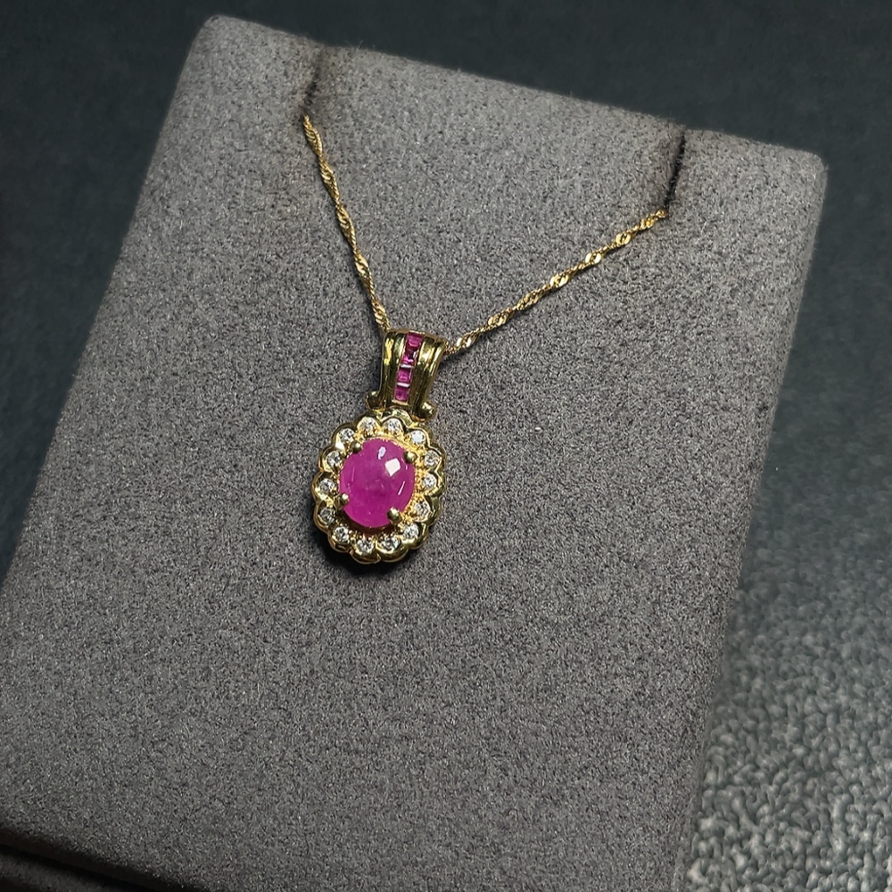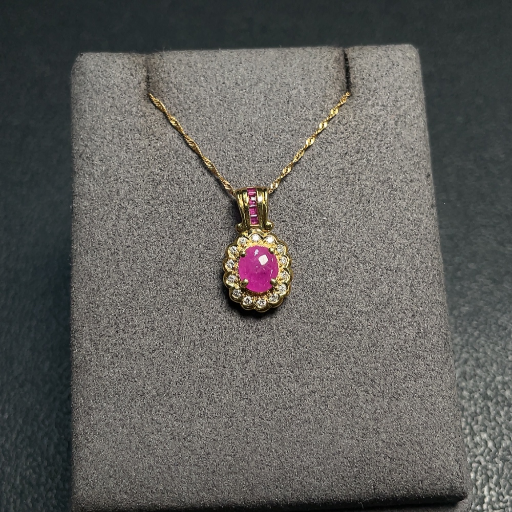 Ruby Necklace 18K Gold with Diamond Accents, Total Weight Approx. 3.05g