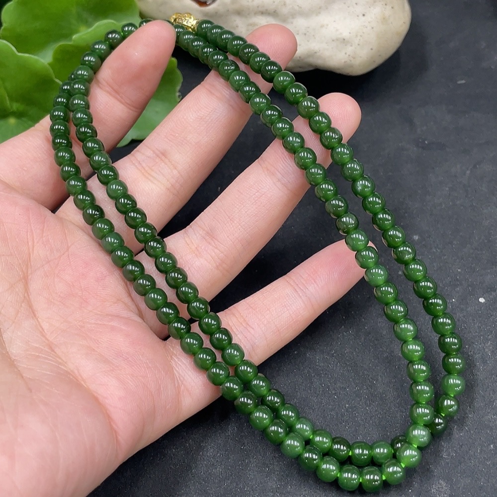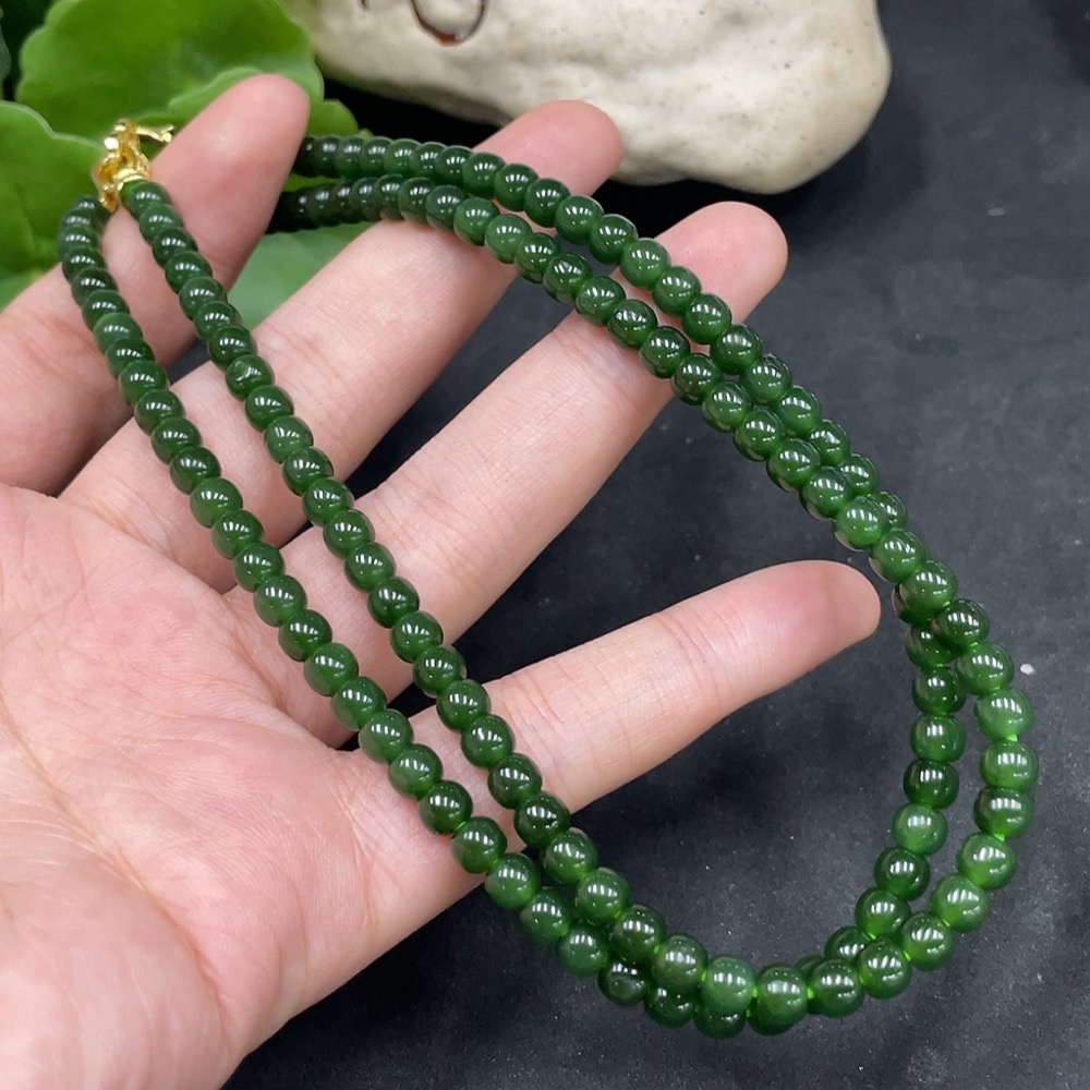 Hetian Jade Jasper Bead Necklace Non-Gold Approx. 4.8mm Total Weight Approx. 27.2g