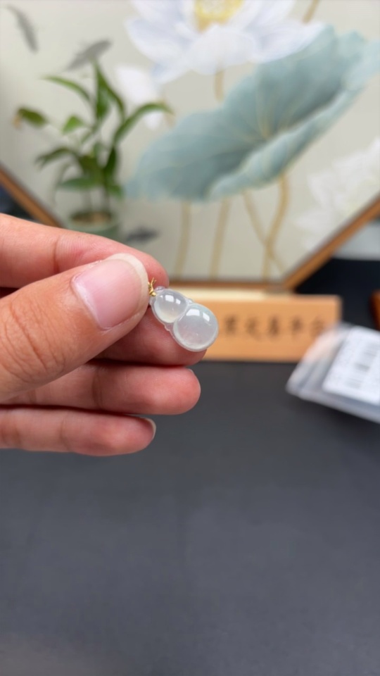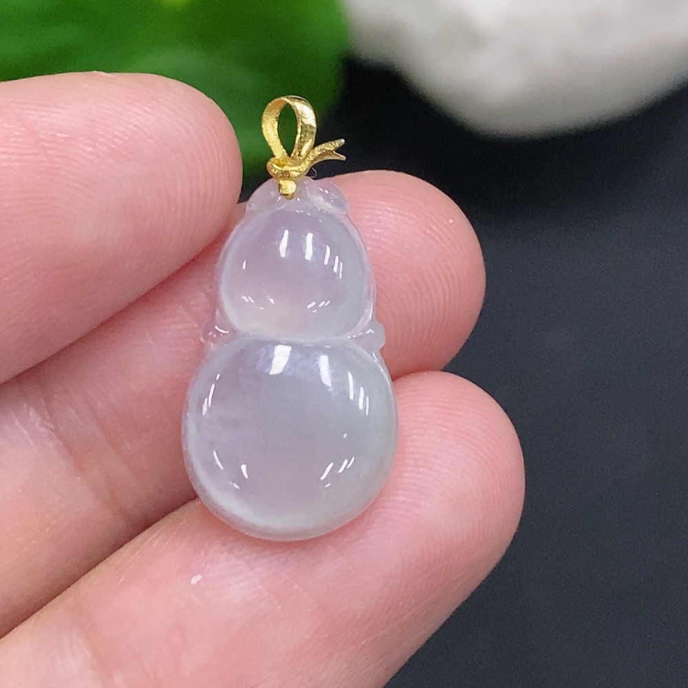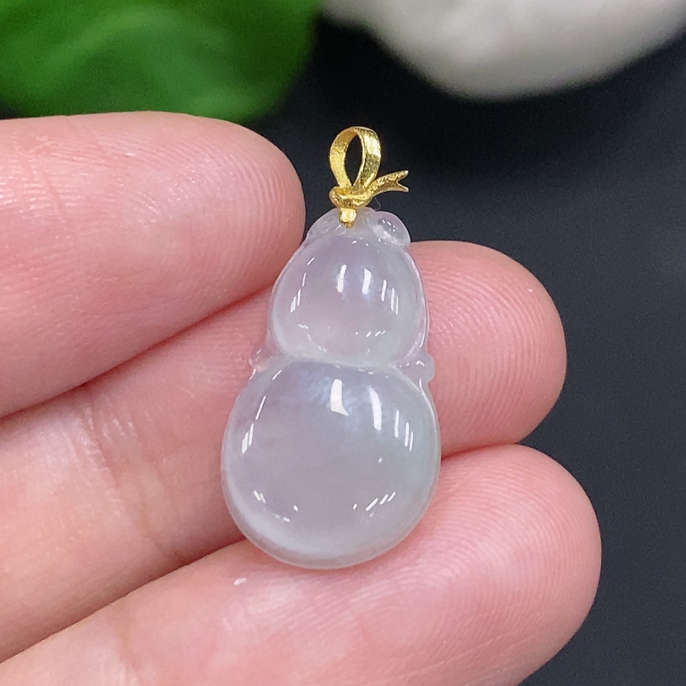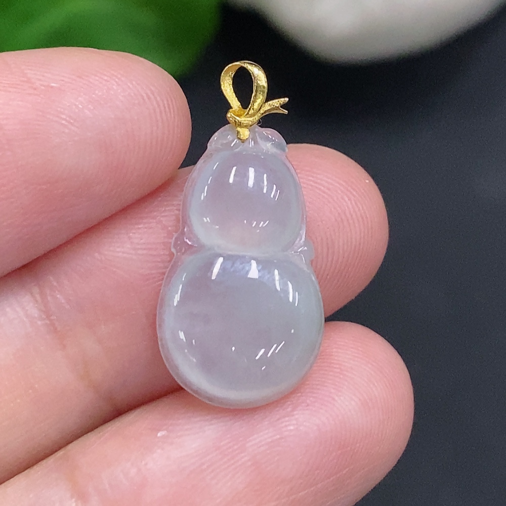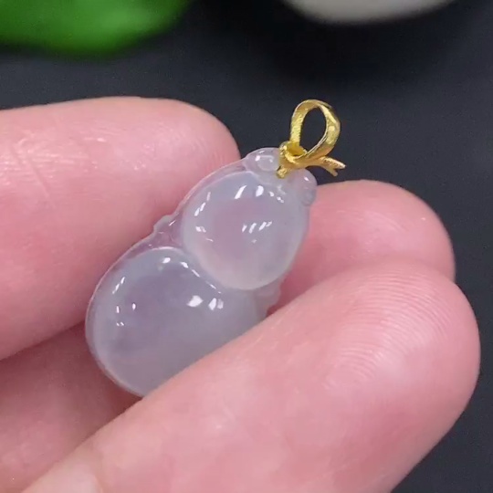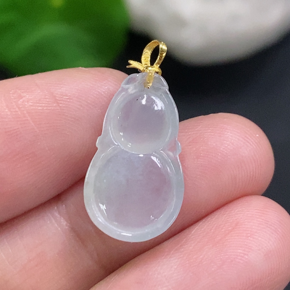 Jadeite Gourd Pendant with 18K Gold Clasp, Total Weight Approximately 1.2g