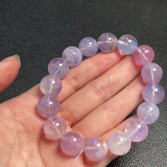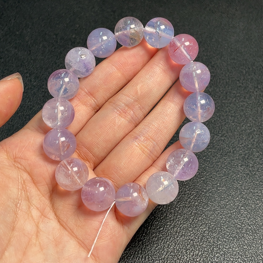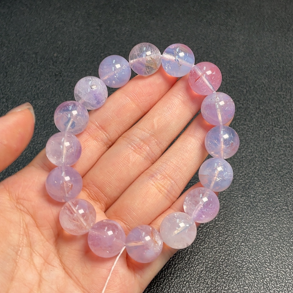 Crystal Bracelet with Undetermined Color Origin and Visible Organic Matter, Total Weight Approximately 50.64g, Size Approximately 13.2mm (Color)