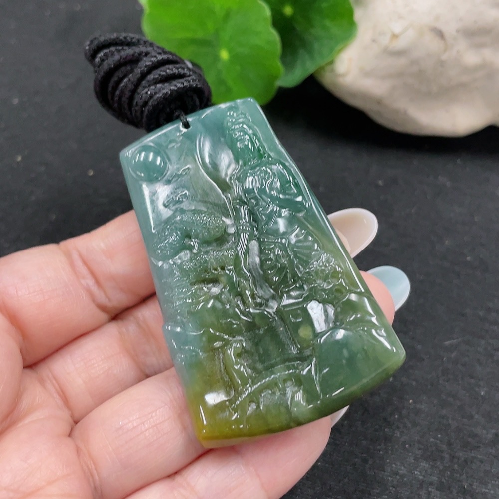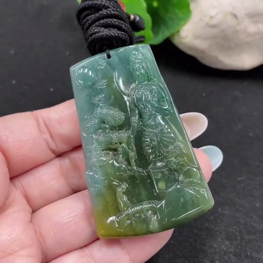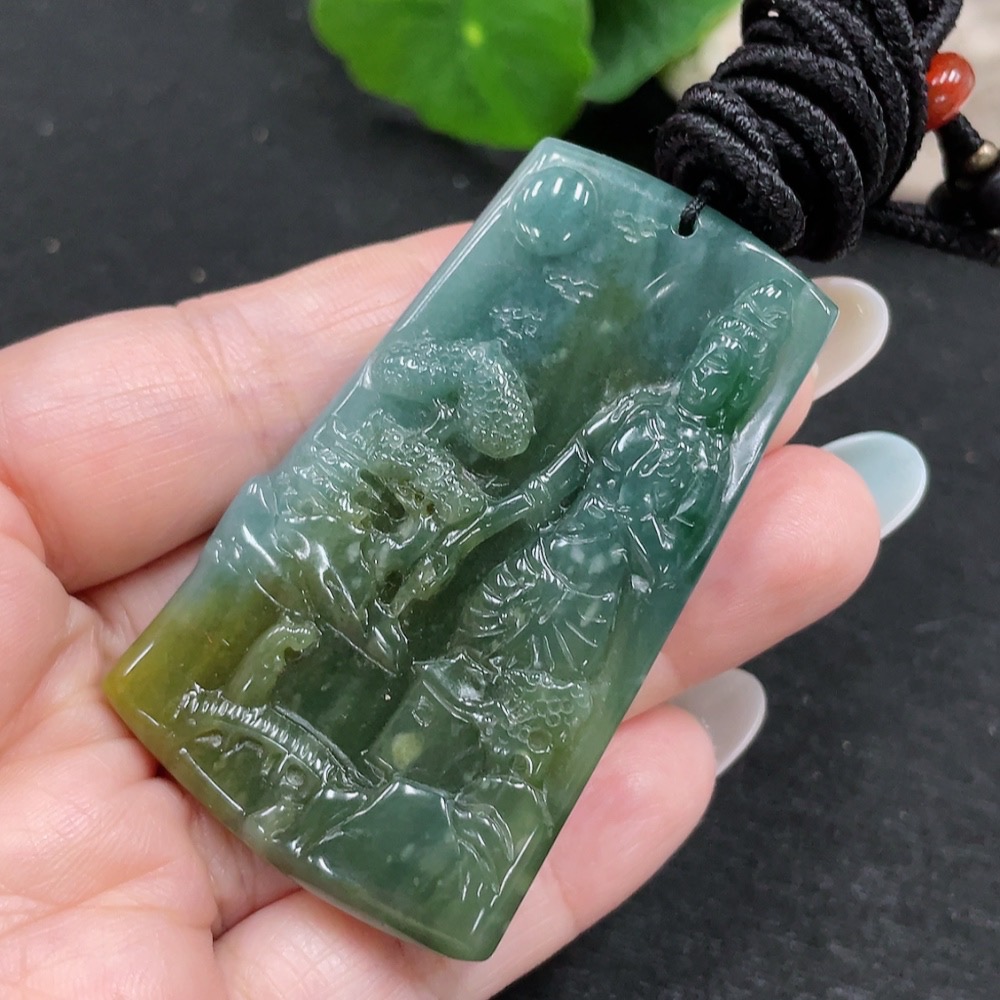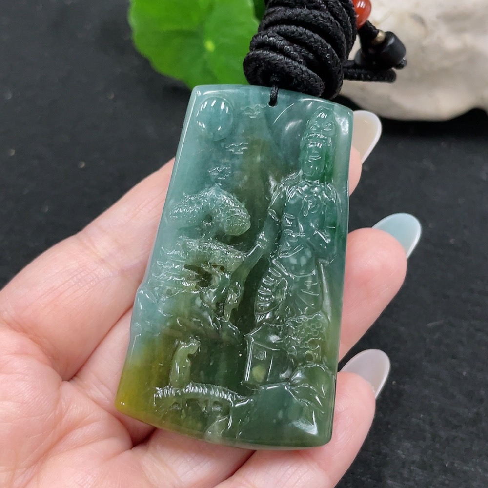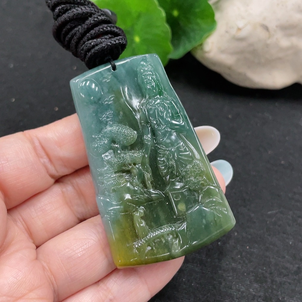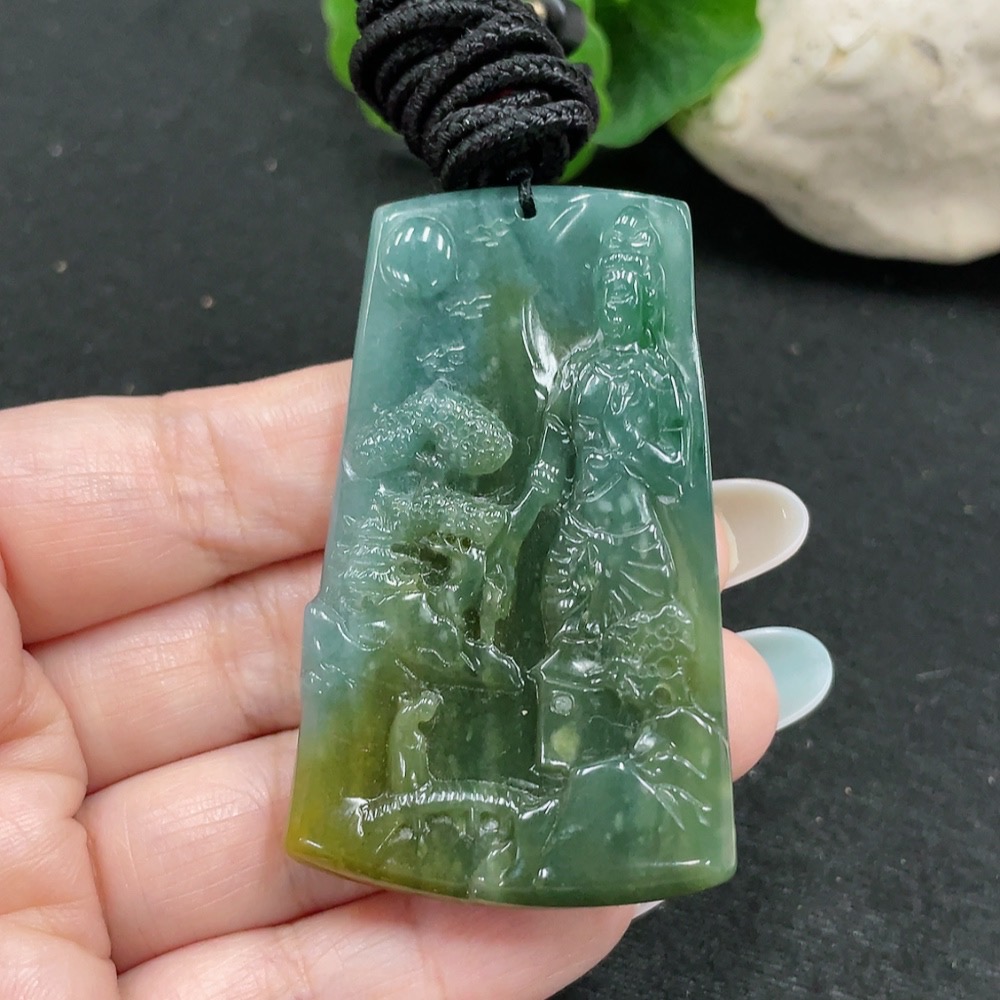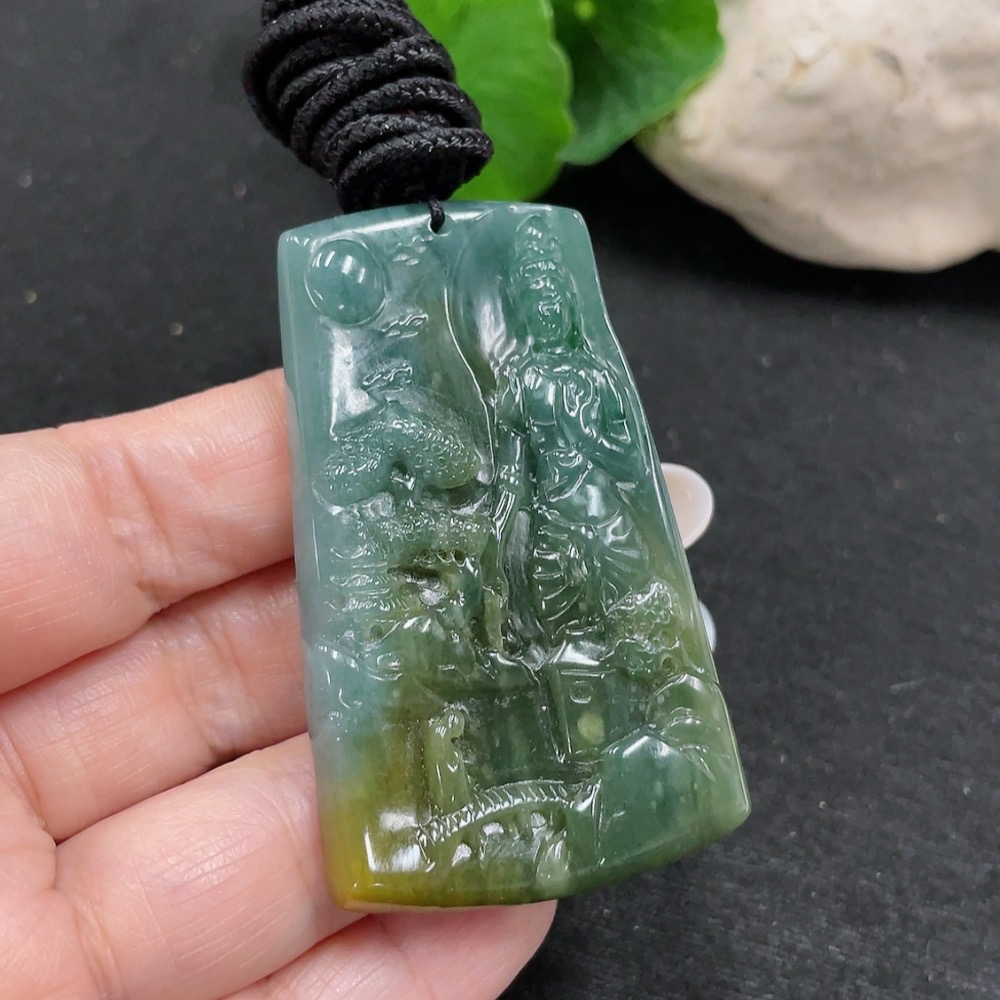 Jadeite Guanyin Pendant Total Weight Approx. 36.8g (Including Rope Weight)