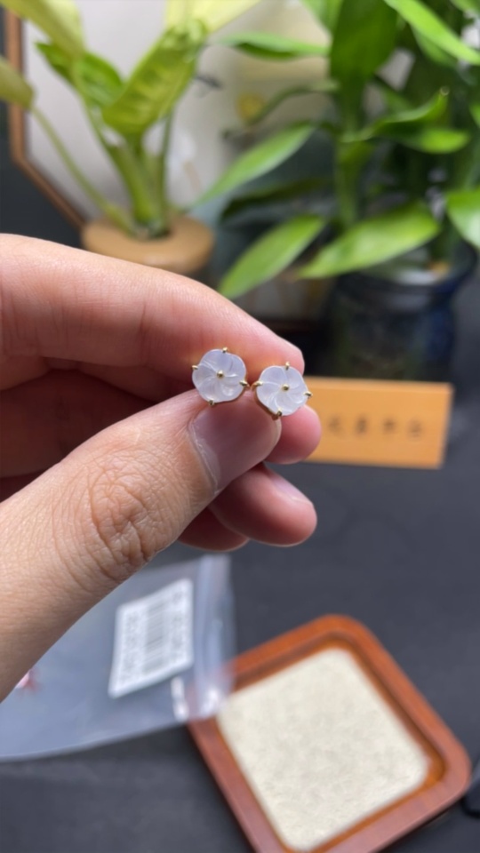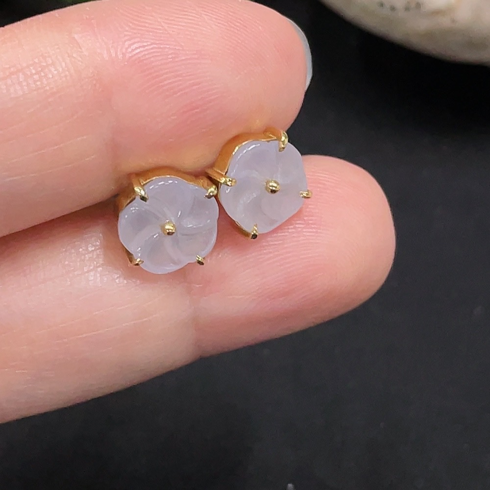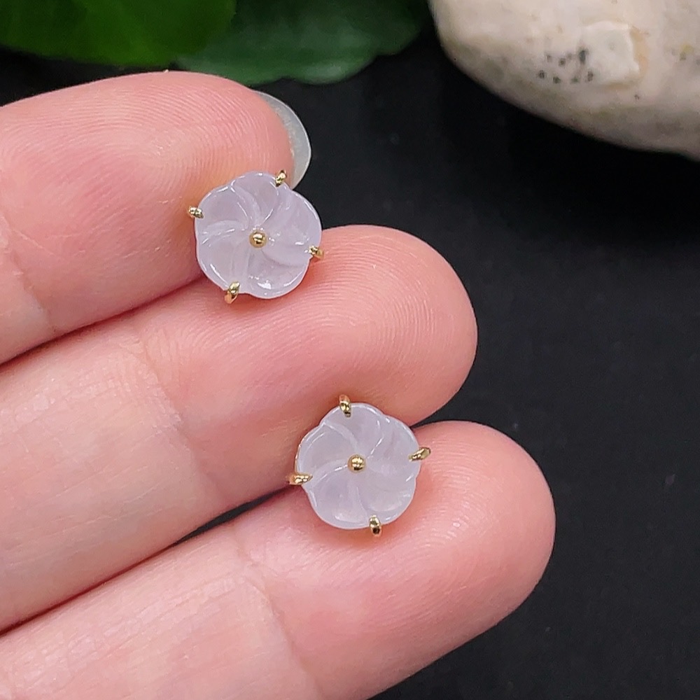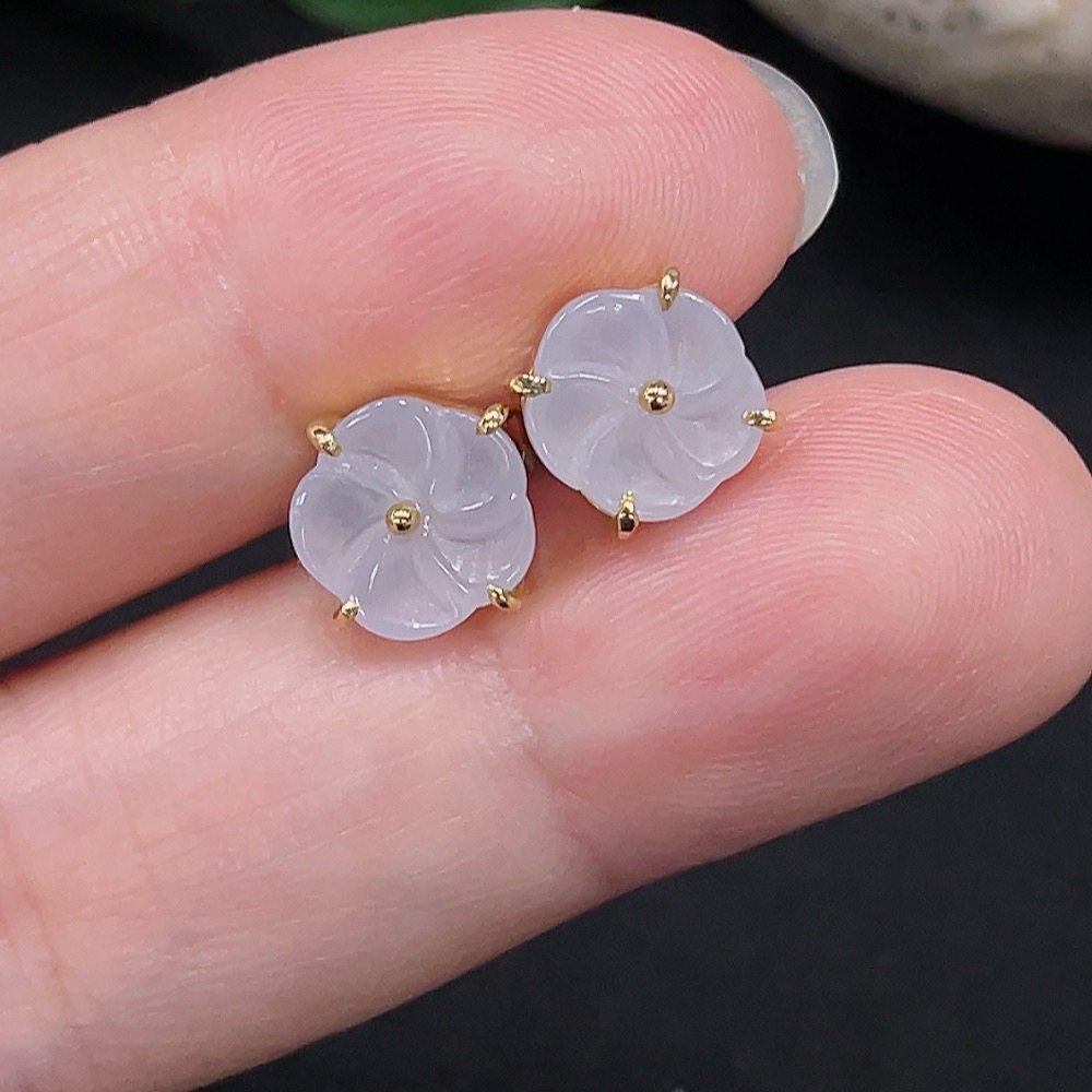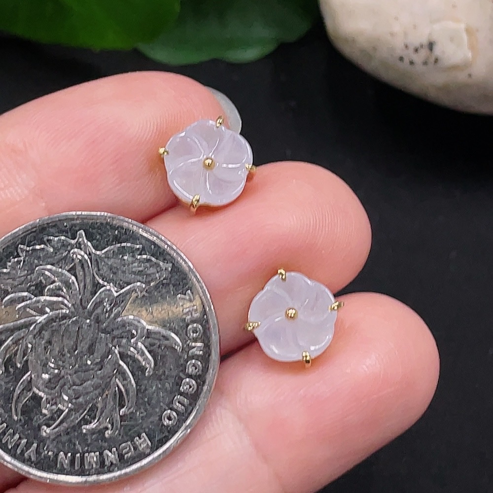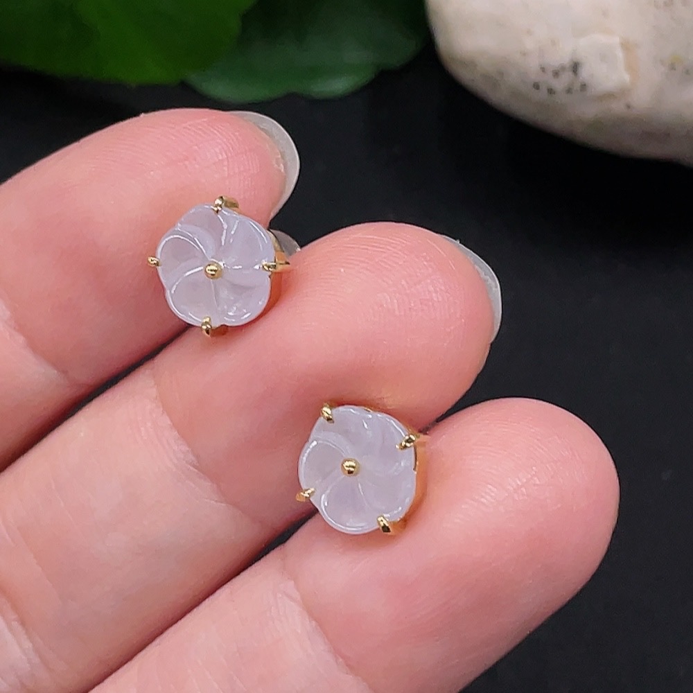 Jadeite Inlaid Earrings One Pair No Imprint, Gold Content 18K, Total Weight Approx. 2g (Including Ear Studs)