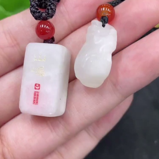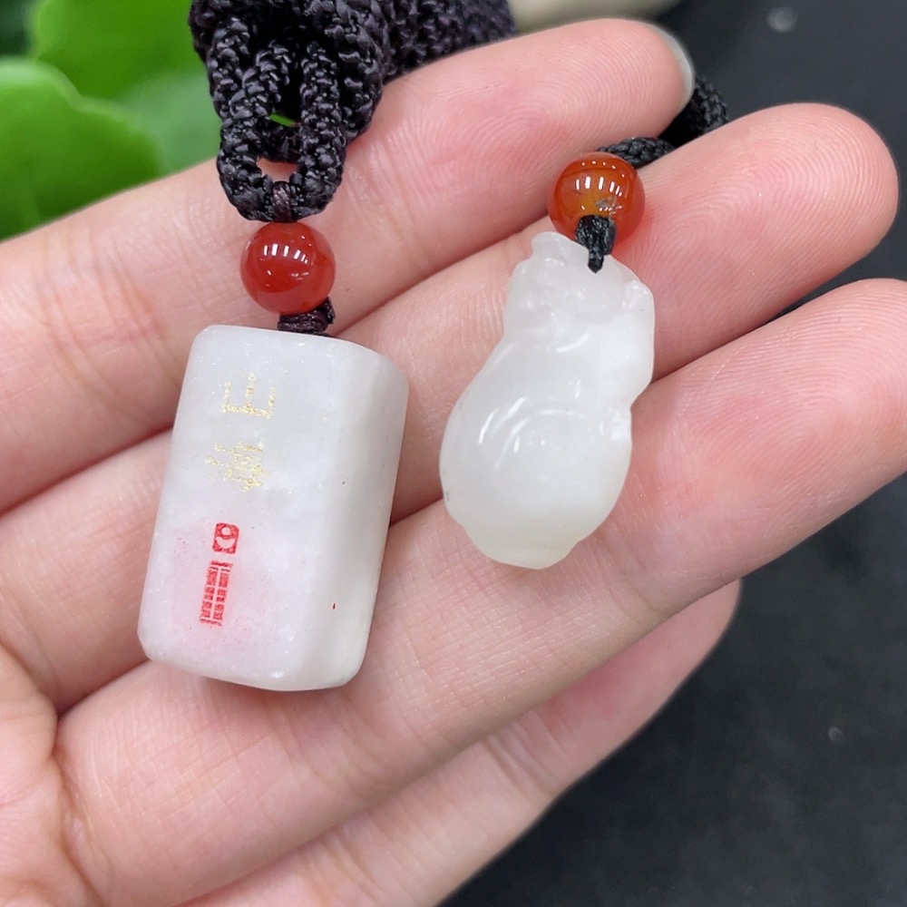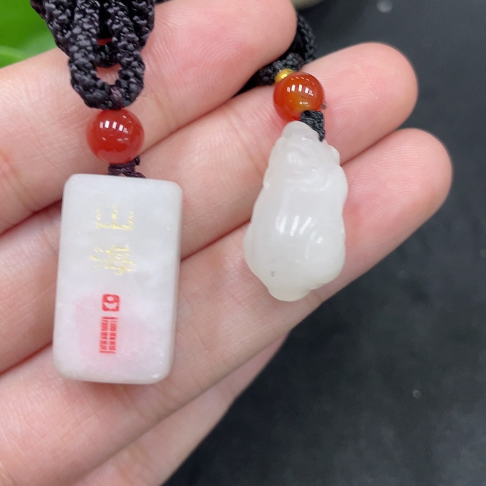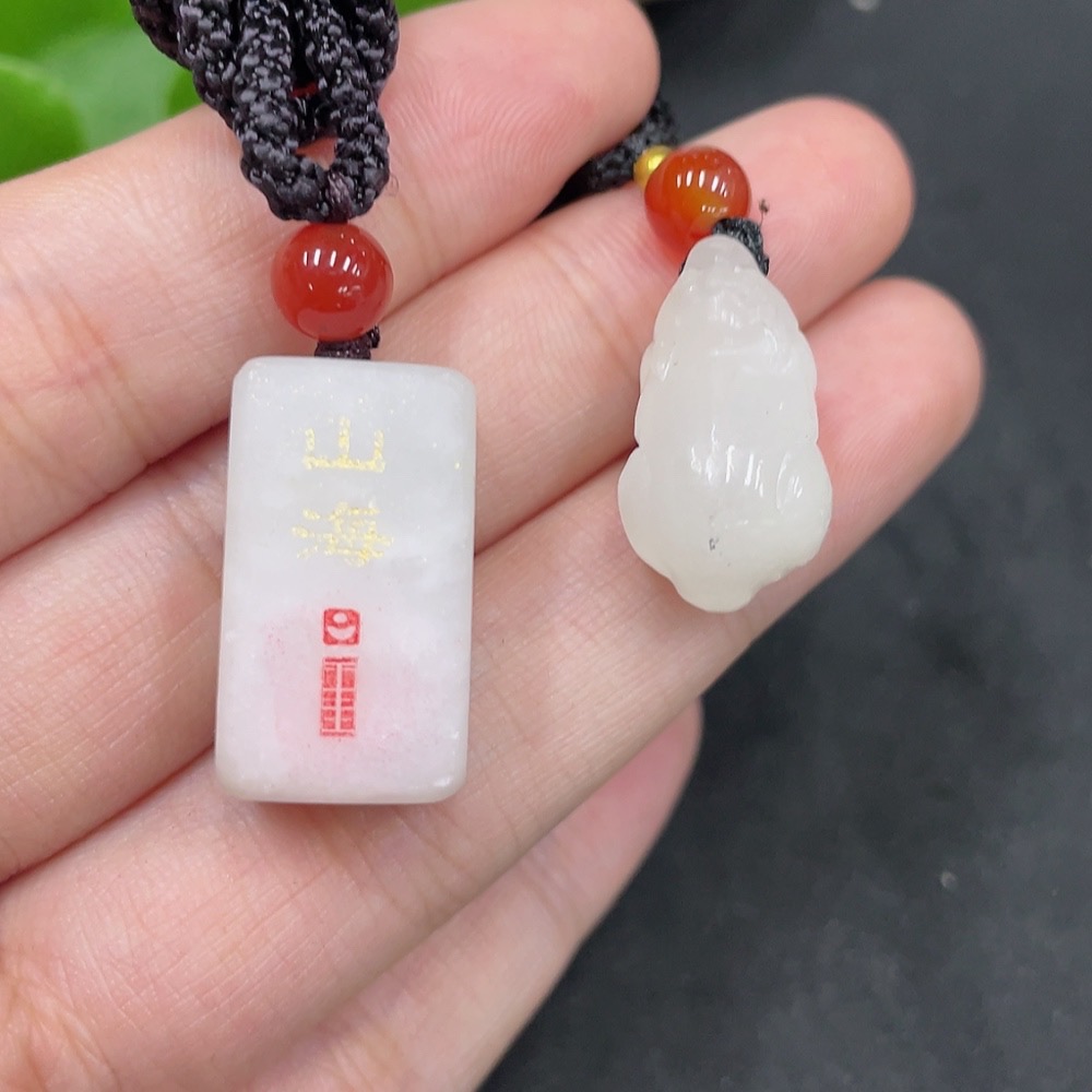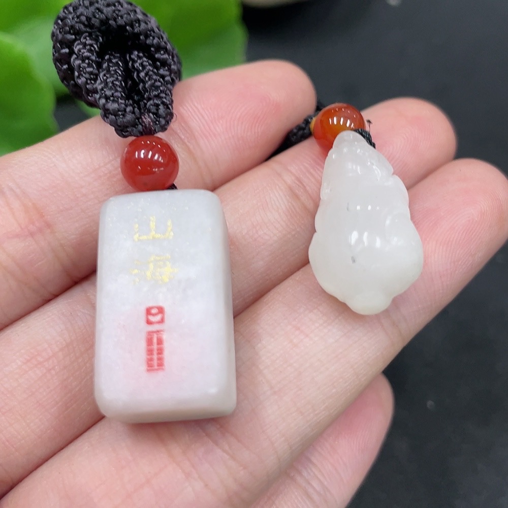 Trezaar - Hetian Jade Pendant with Other Mineral Components, Non-Hetian Jade Beads, Antique Plaque + Pixiu, Total Weight (Including Rope) Approx. 15.8g