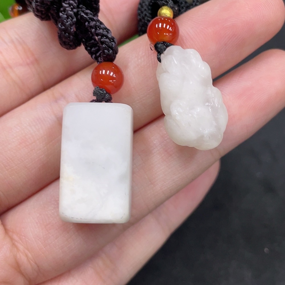 Hetian Jade Pendant with Other Mineral Components, Non-Hetian Jade Beads, Antique Plaque + Pixiu, Total Weight (Including Rope) Approx. 15.8g