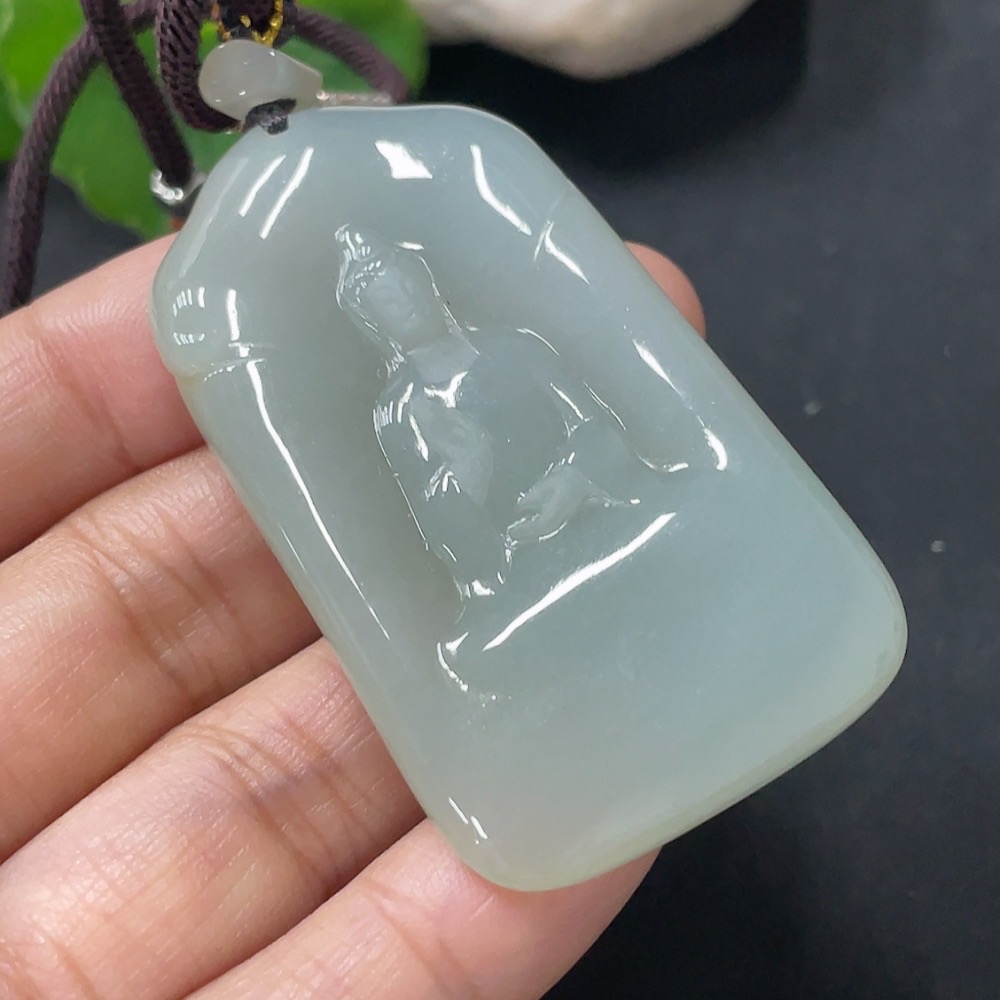 Jadeite Pendant Guanyin Total Weight Including Rope 30.7g
