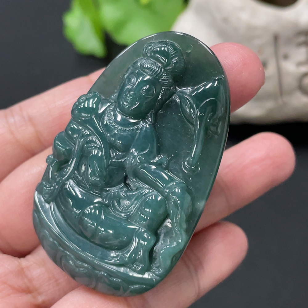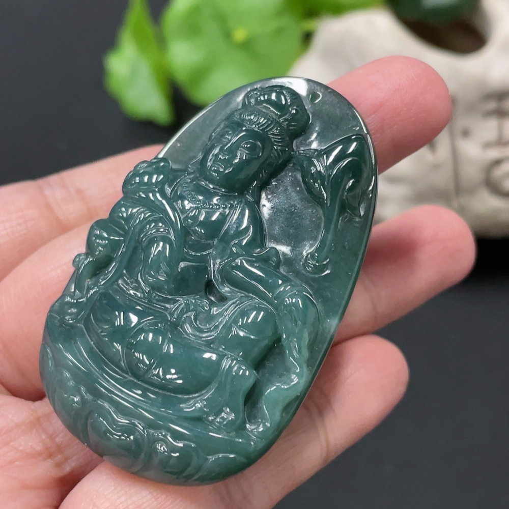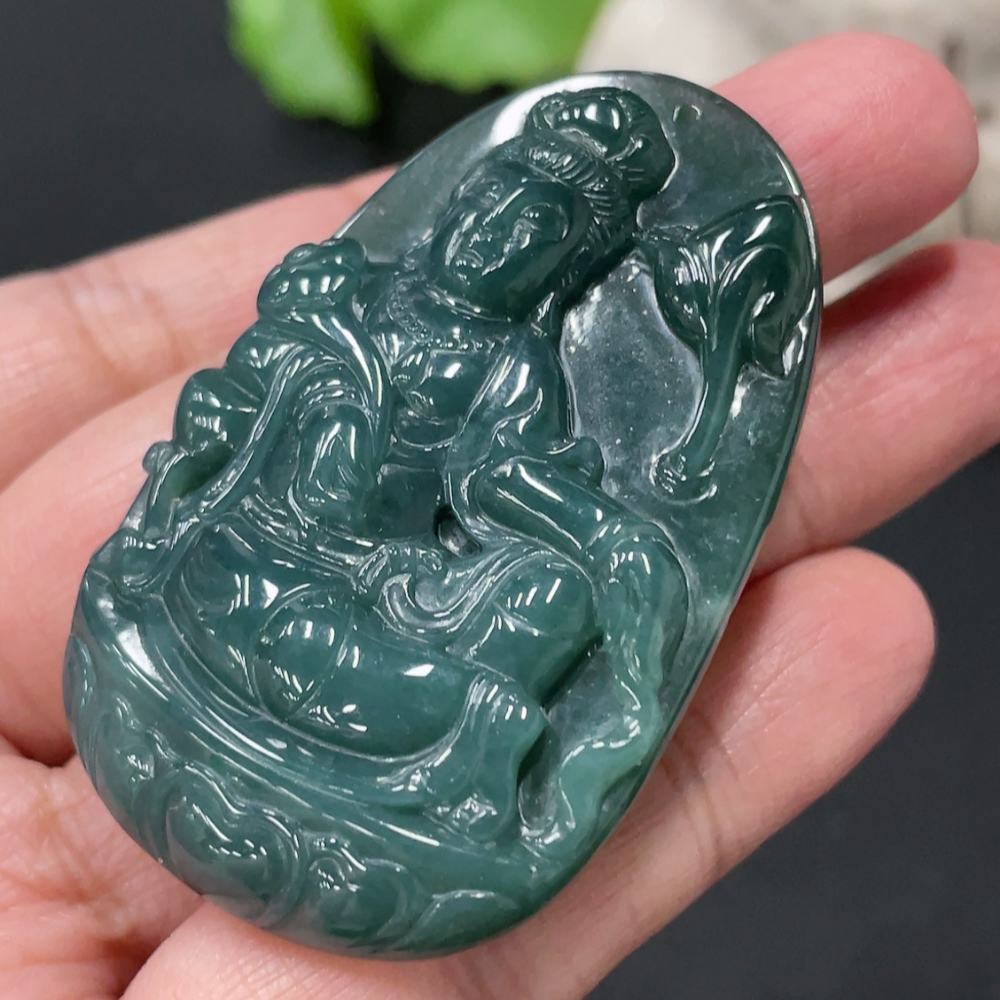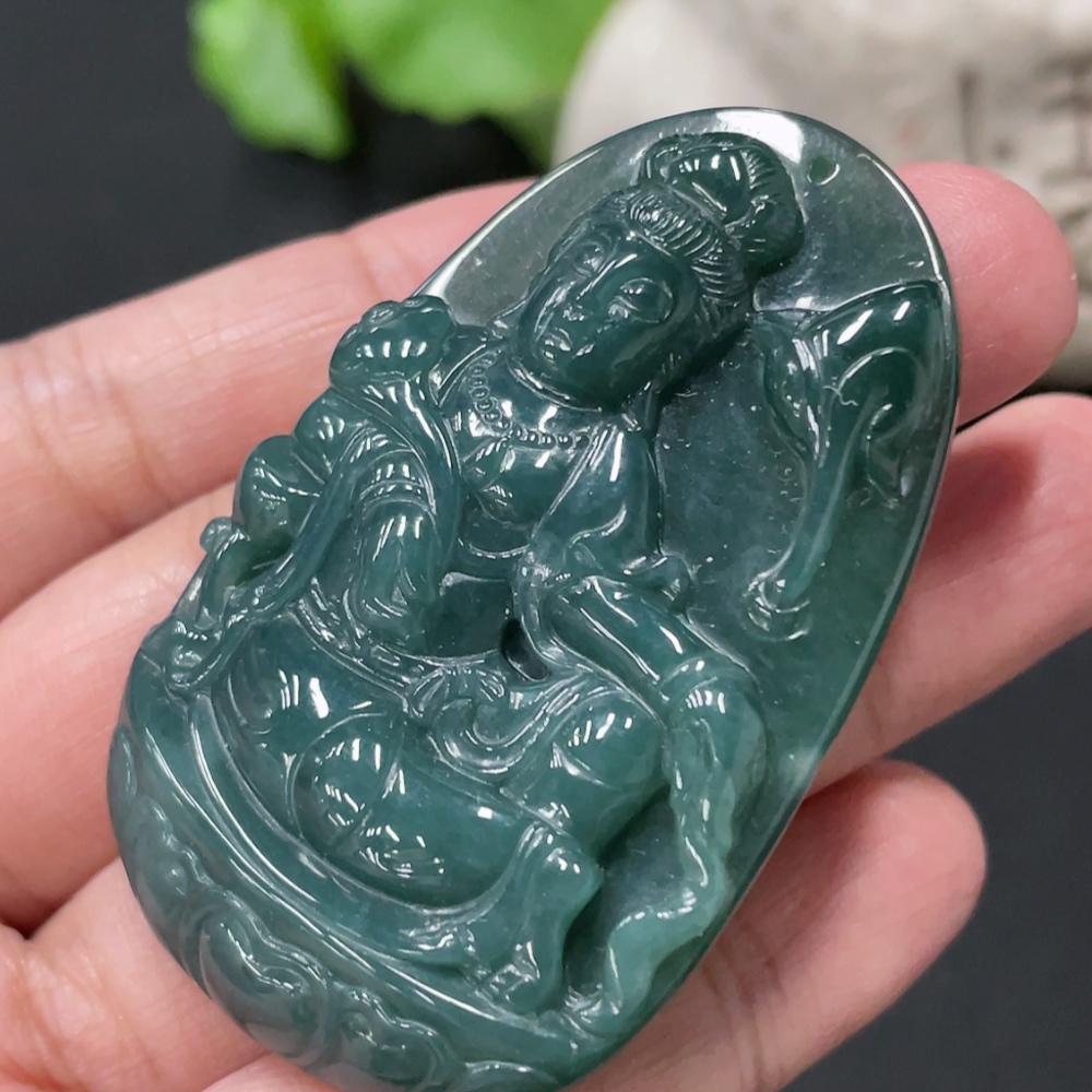 Jadeite Guanyin Pendant, Total Weight Approx. 24.9g