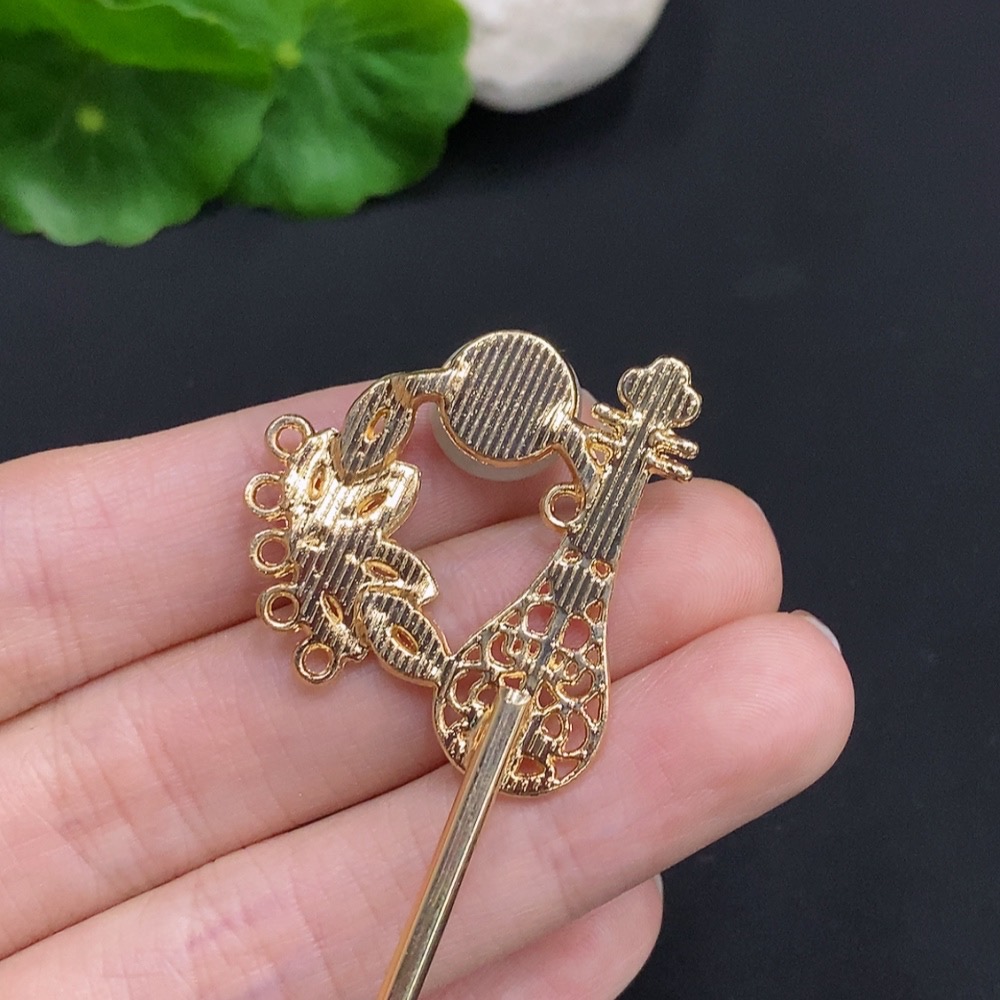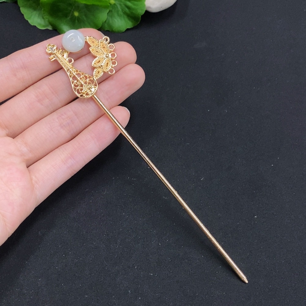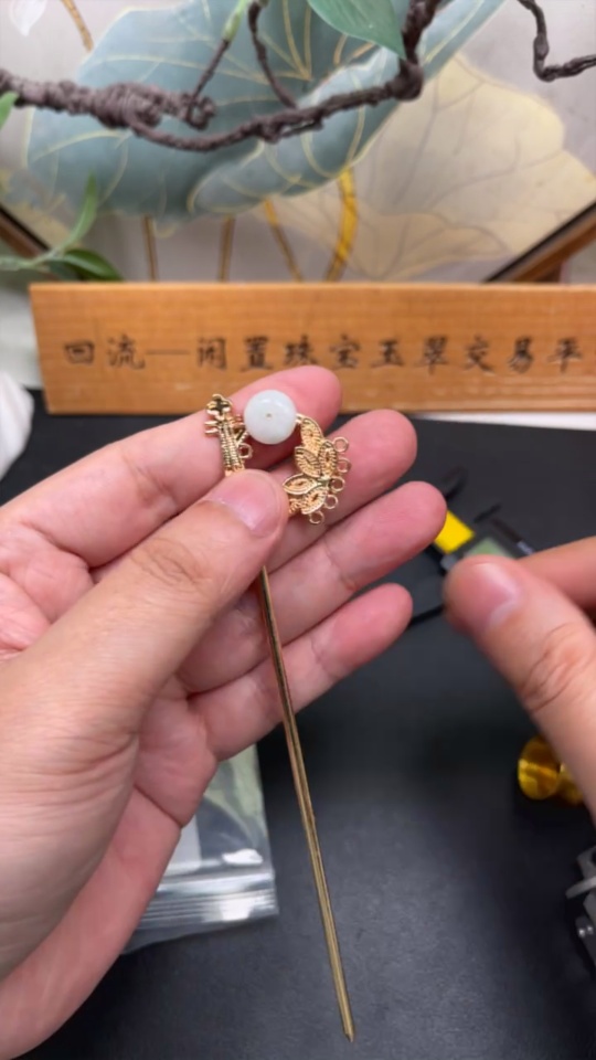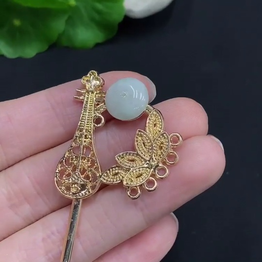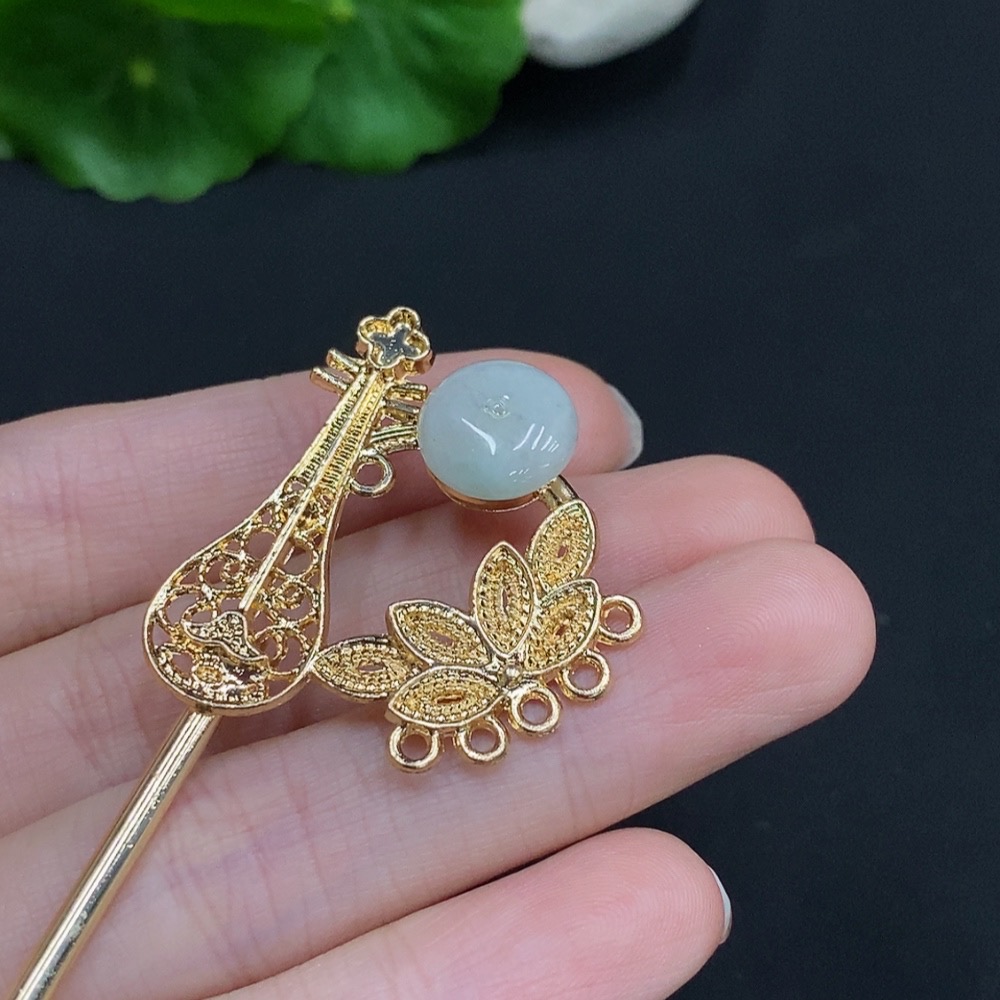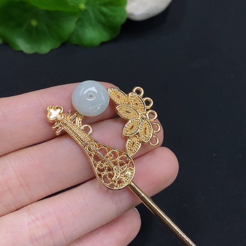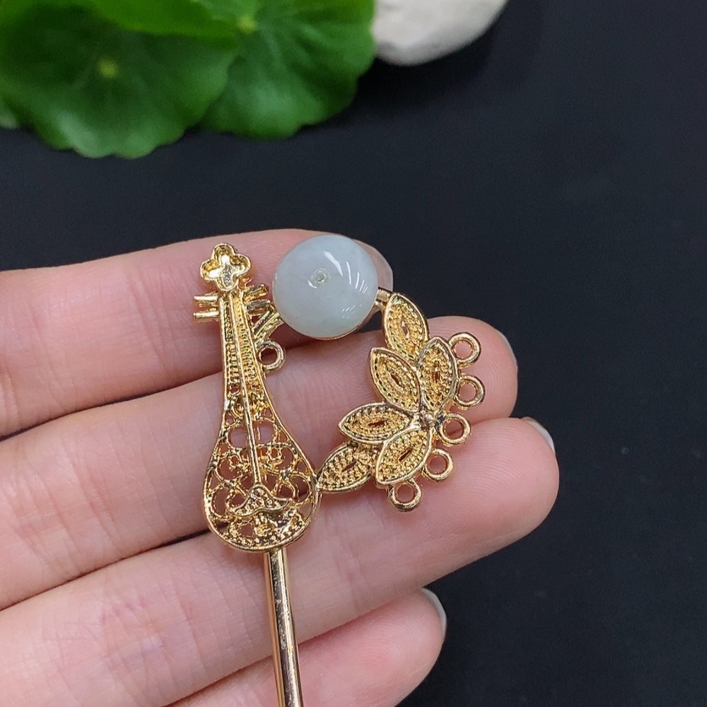 Jadeite Bead Inlaid Hairpin Non-Gold Inlaid Total Weight Approximately 9.2g
