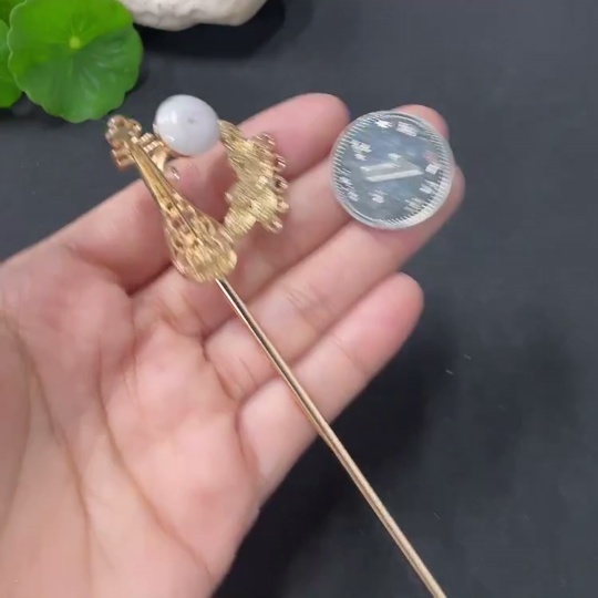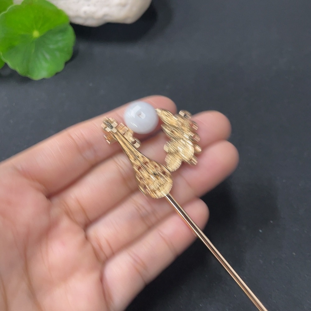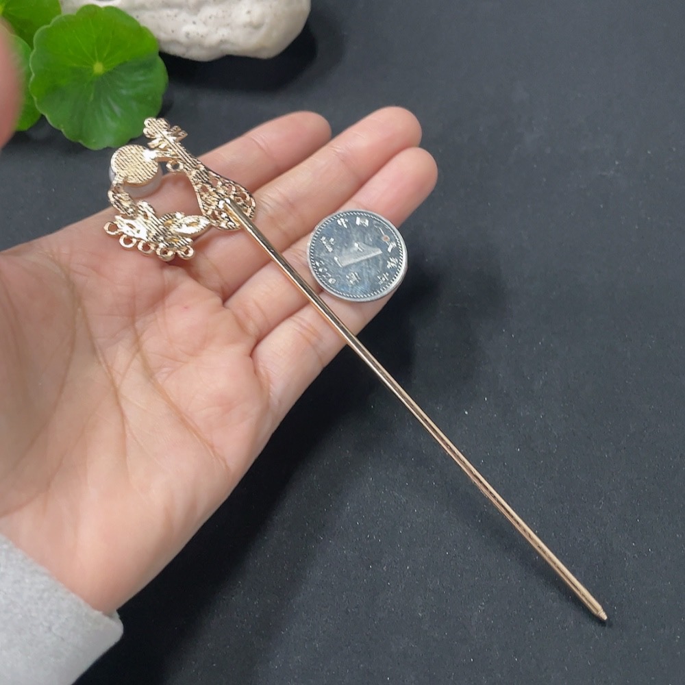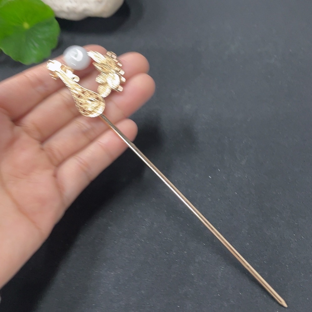Jadeite Inlaid Hairpin Non-Gold Total Weight Approx. 9.7g