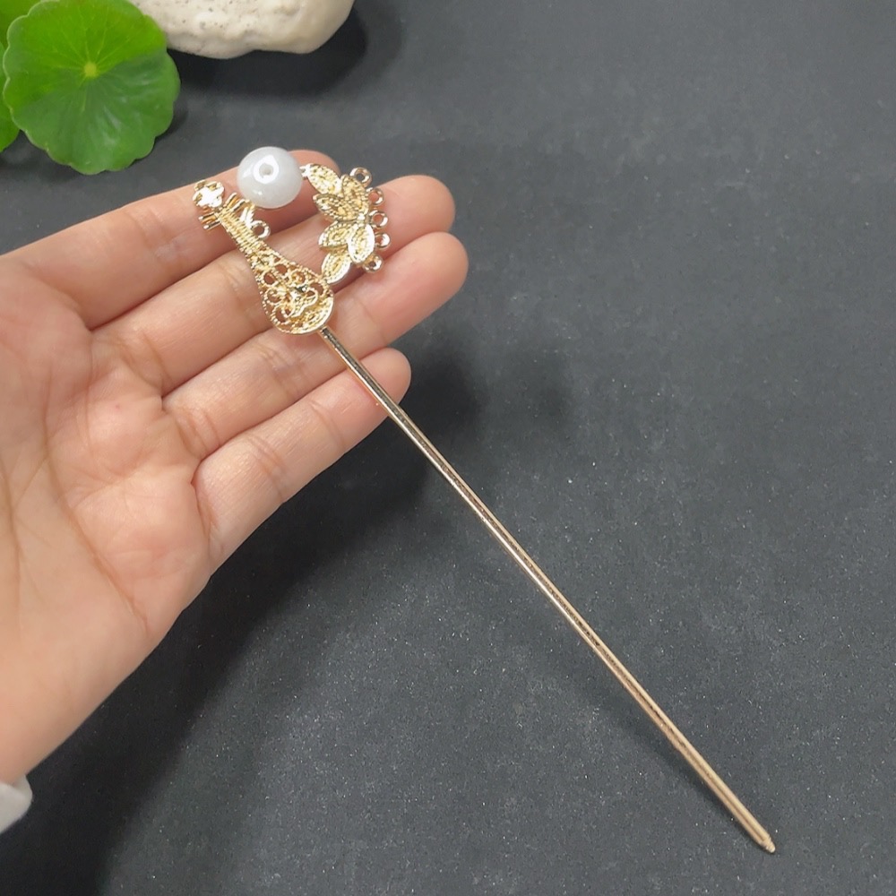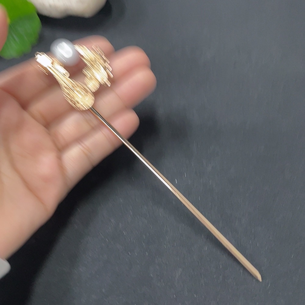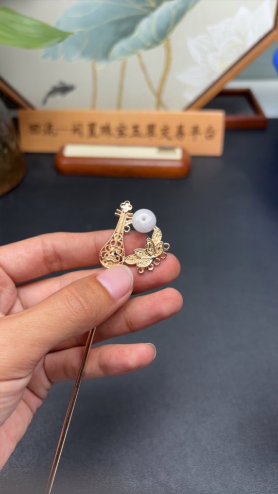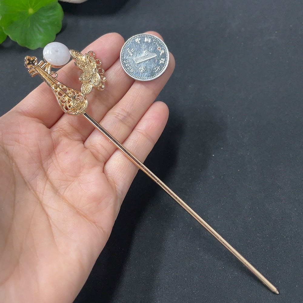 Jadeite Inlaid Hairpin Non-Gold Total Weight Approx. 9.7g