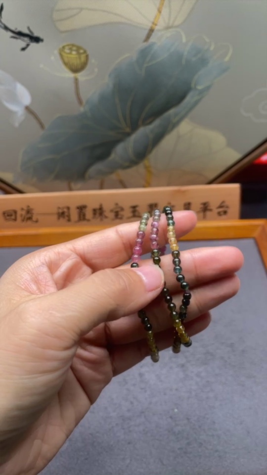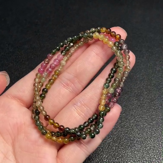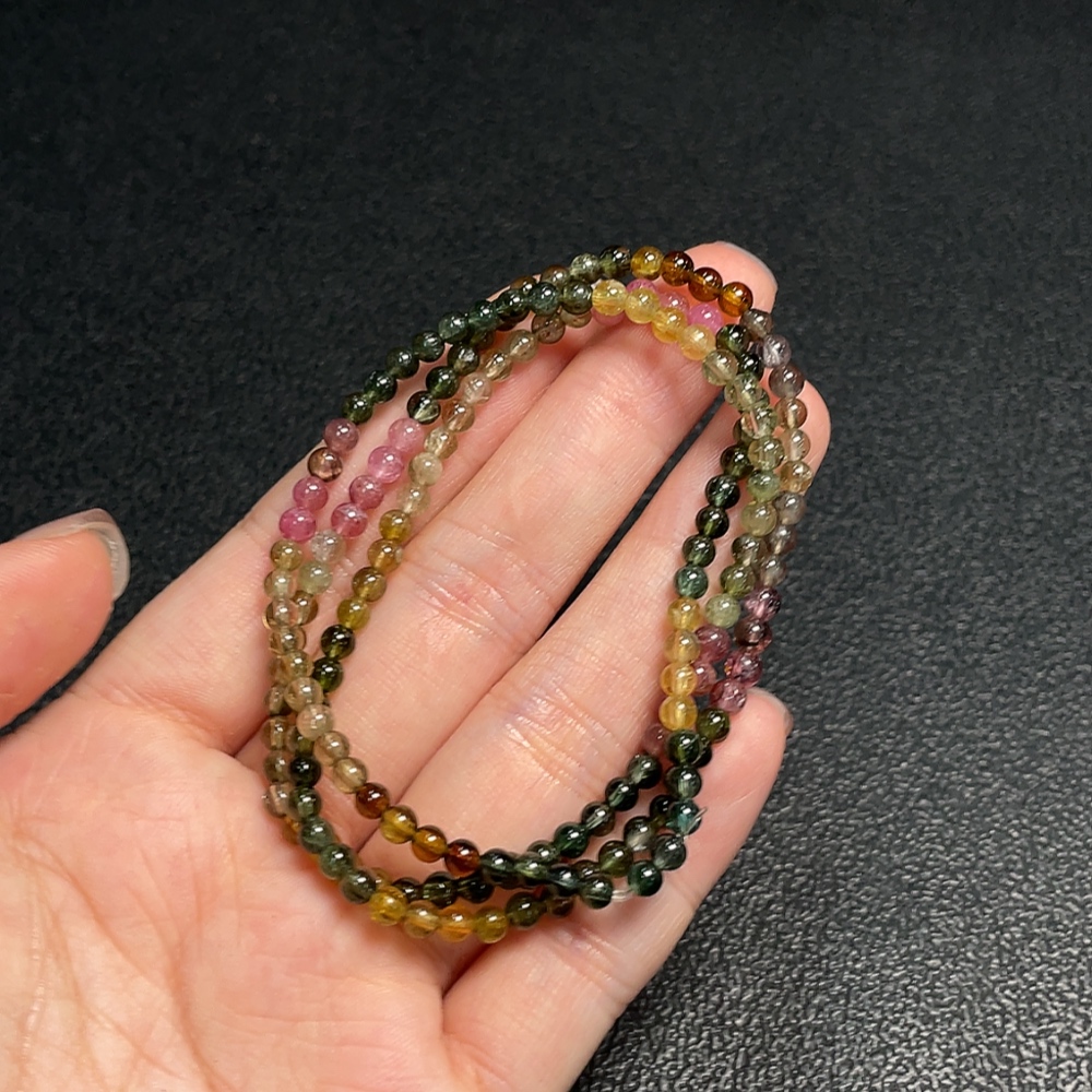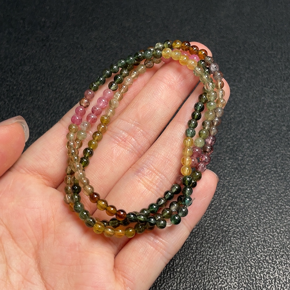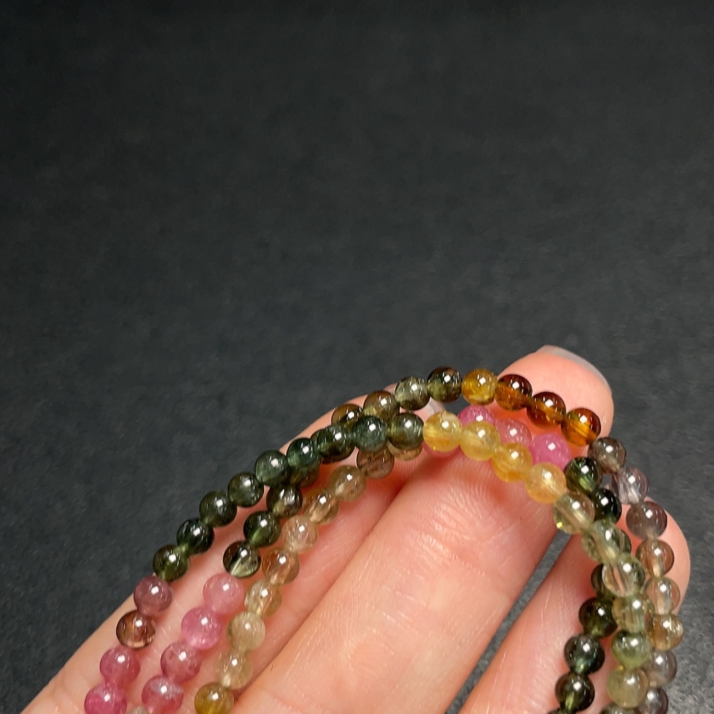 Tourmaline bead necklace with visible organic matter, total weight approx. 10.83g, bead size approx. 3.4mm