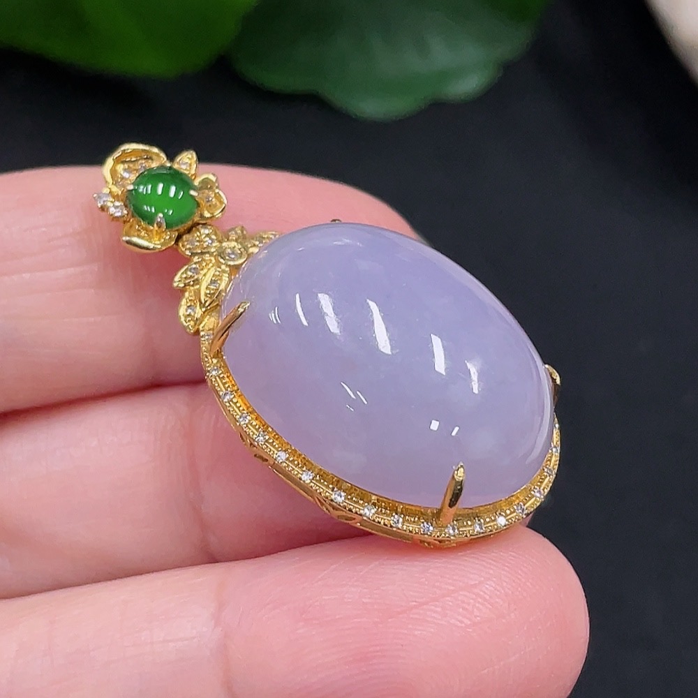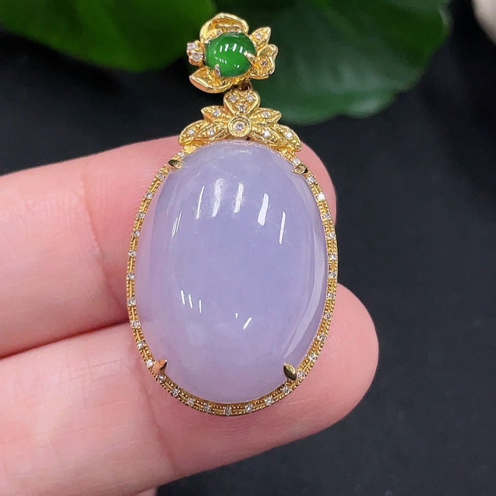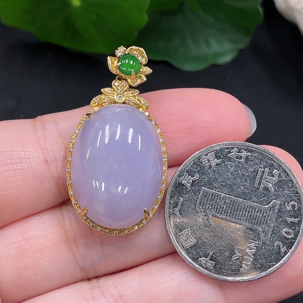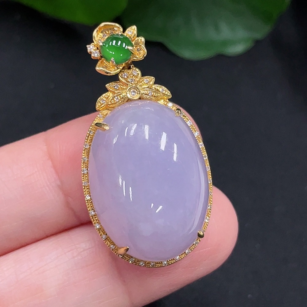 Jadeite Inlaid Pendant 18K Gold Total Weight Approx. 8.6g (With Diamond Accents)