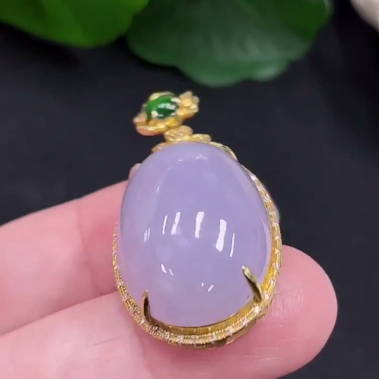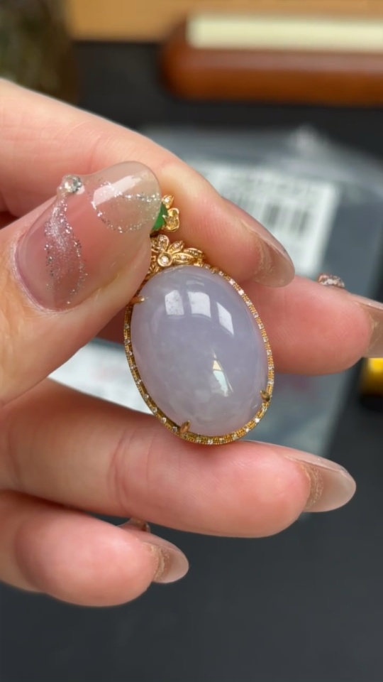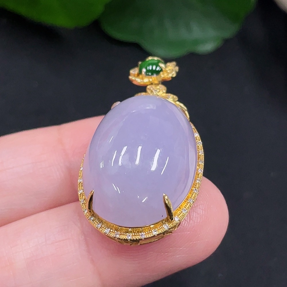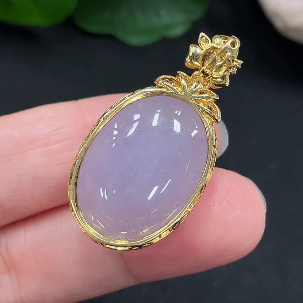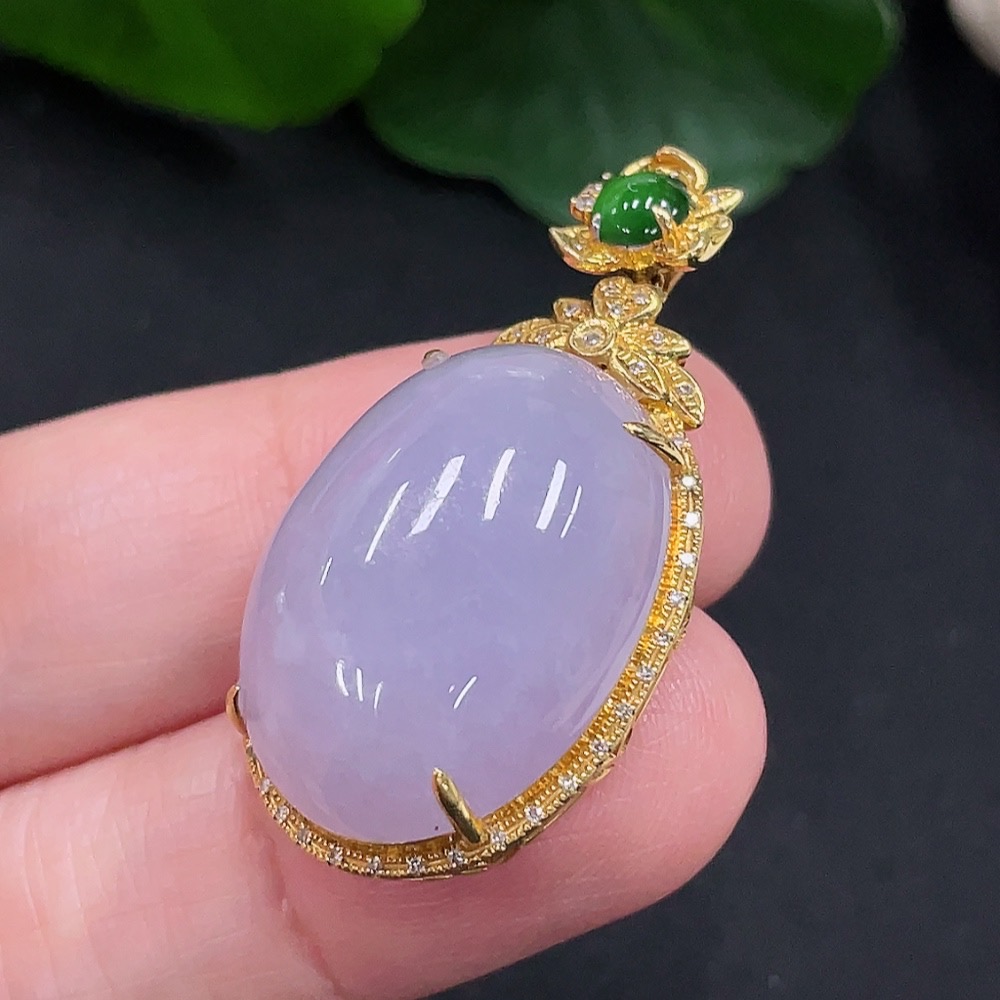 Jadeite Inlaid Pendant 18K Gold Total Weight Approx. 8.6g (With Diamond Accents)