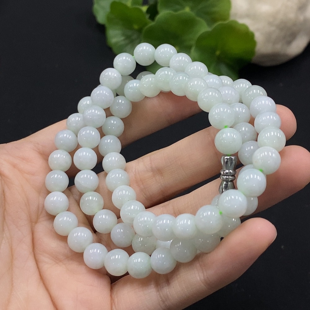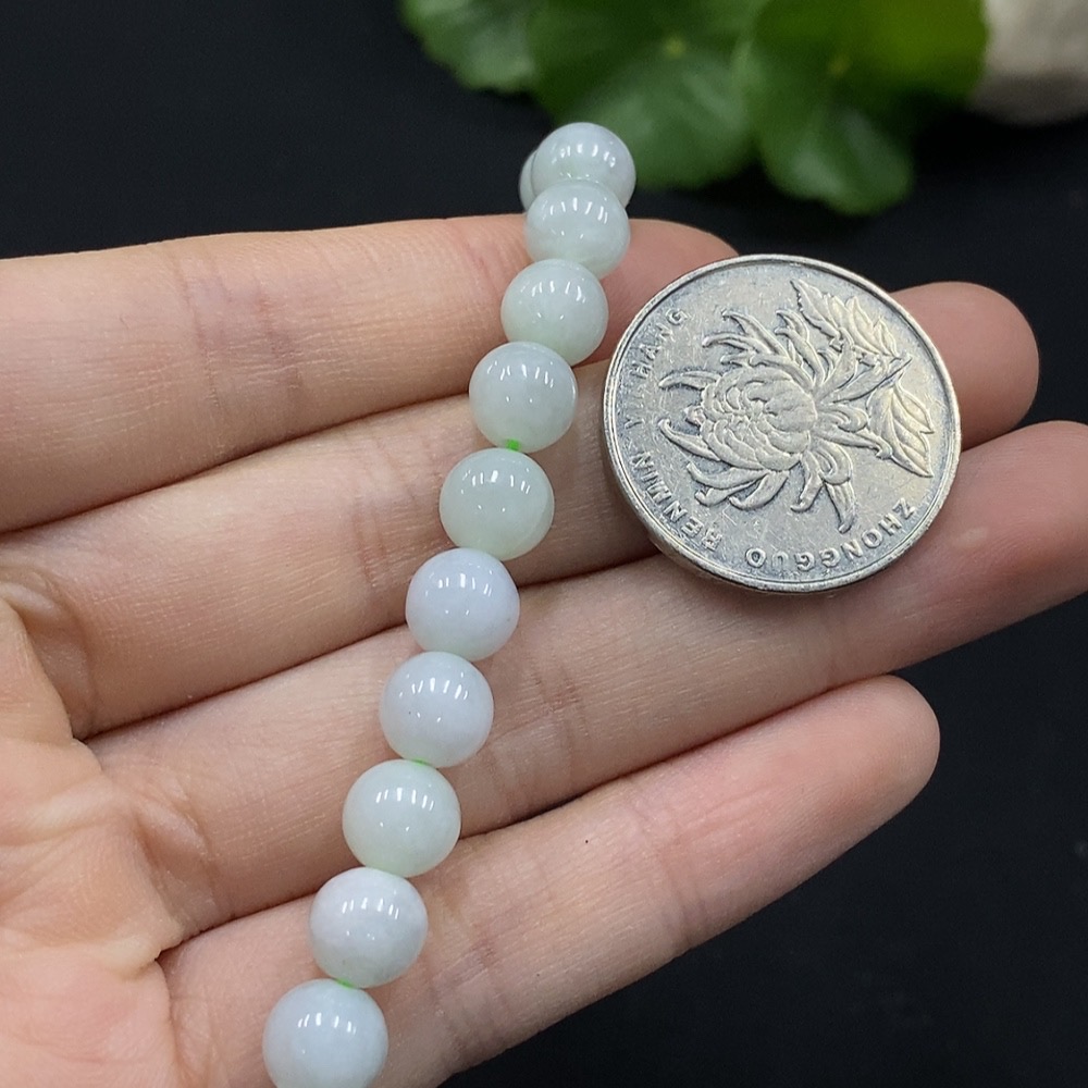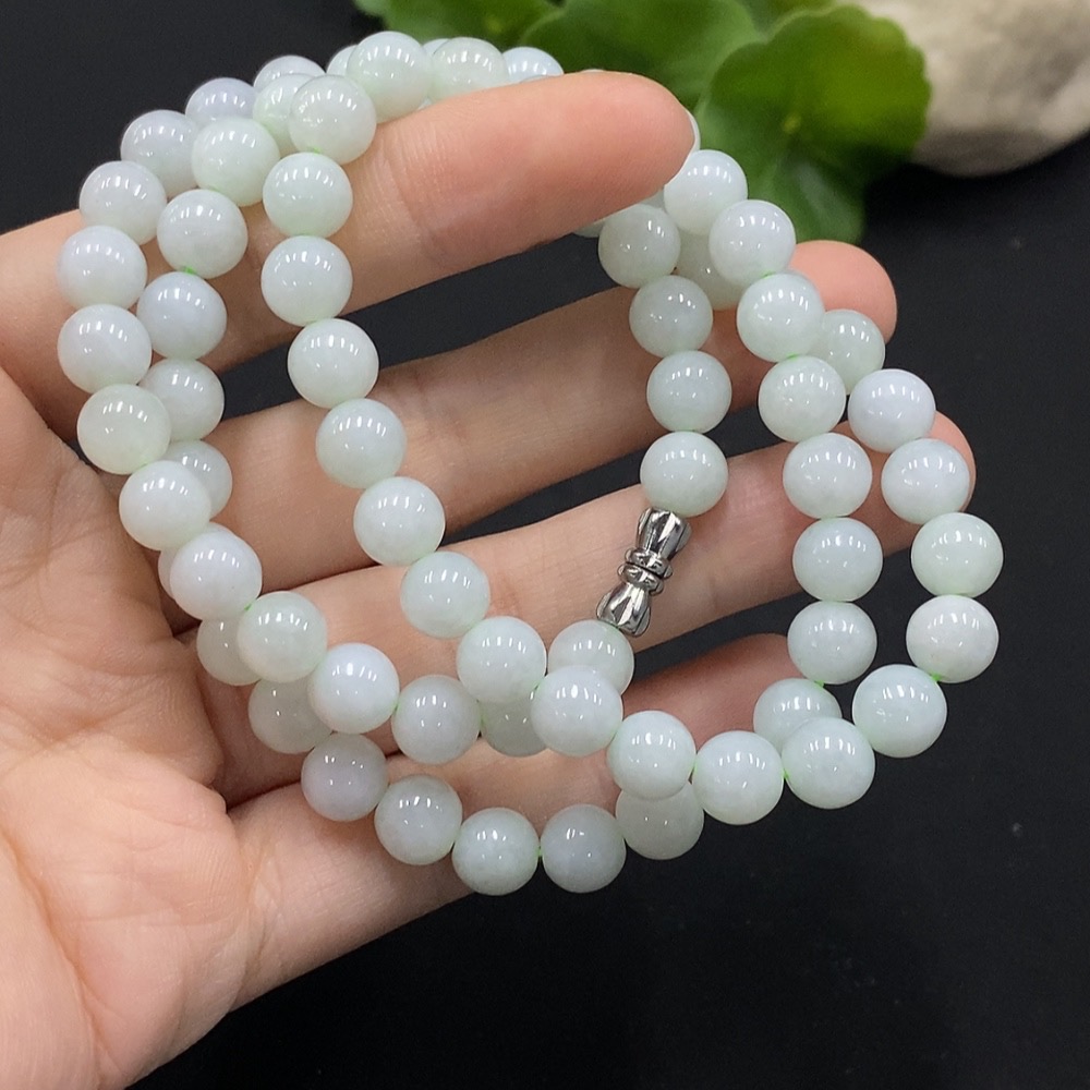 Jadeite Bead Necklace Approx. 7.6mm Non-Gold Setting Total Weight Approx. 55.4g