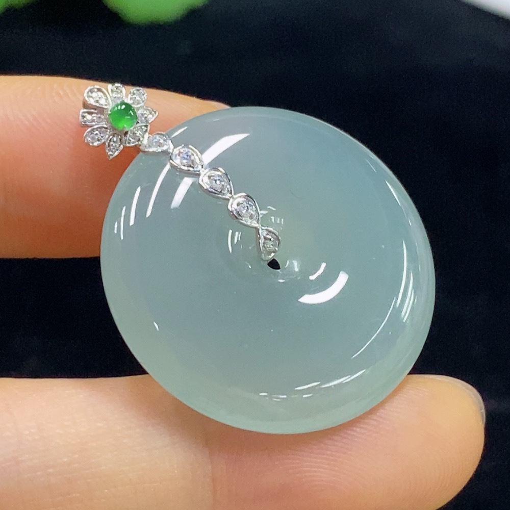 Jadeite Safety Pendant with 18K Gold and Diamond Accent (Only on the Bail) Total Weight Approx. 9.8g