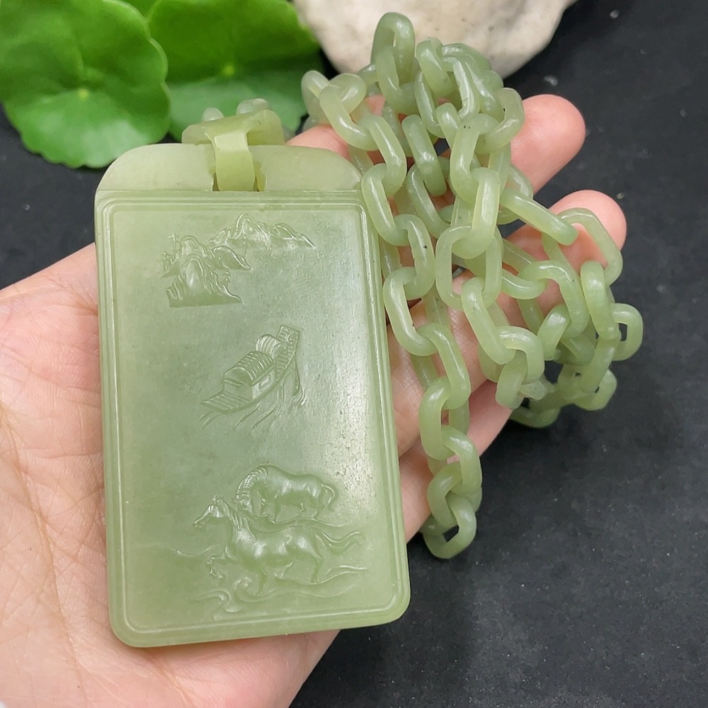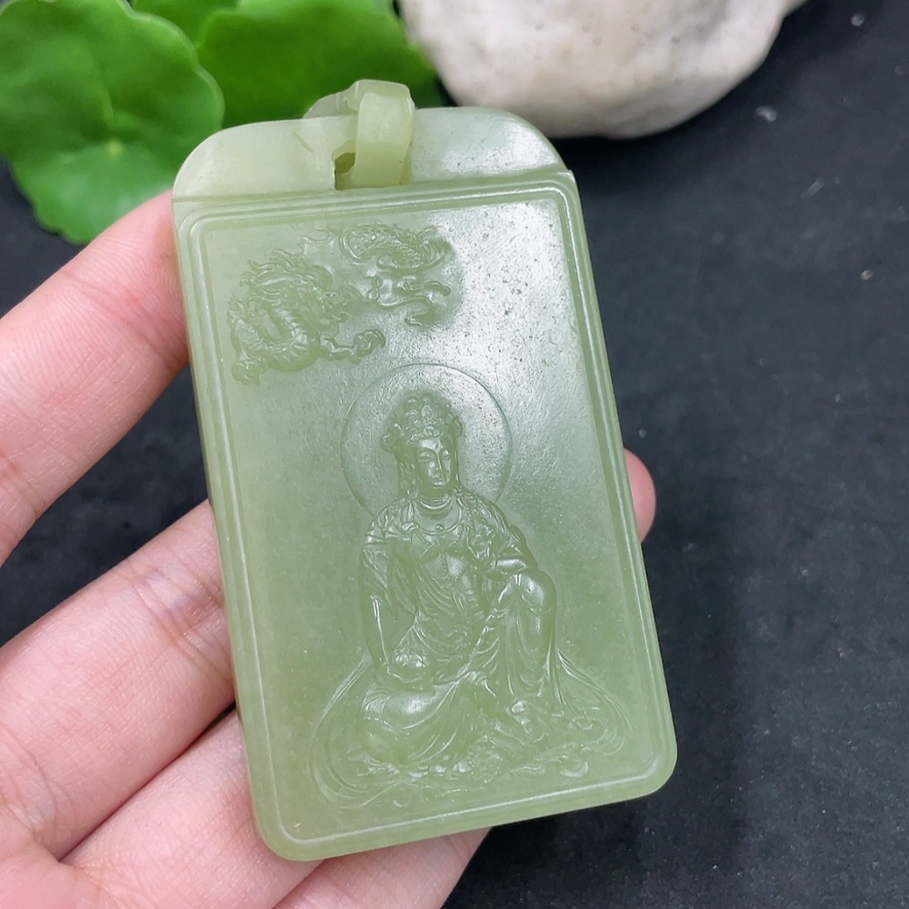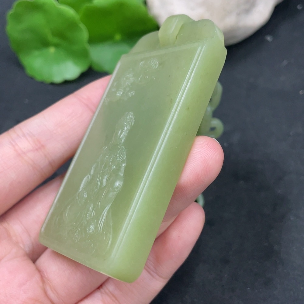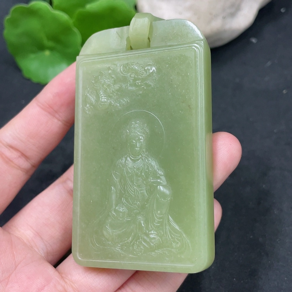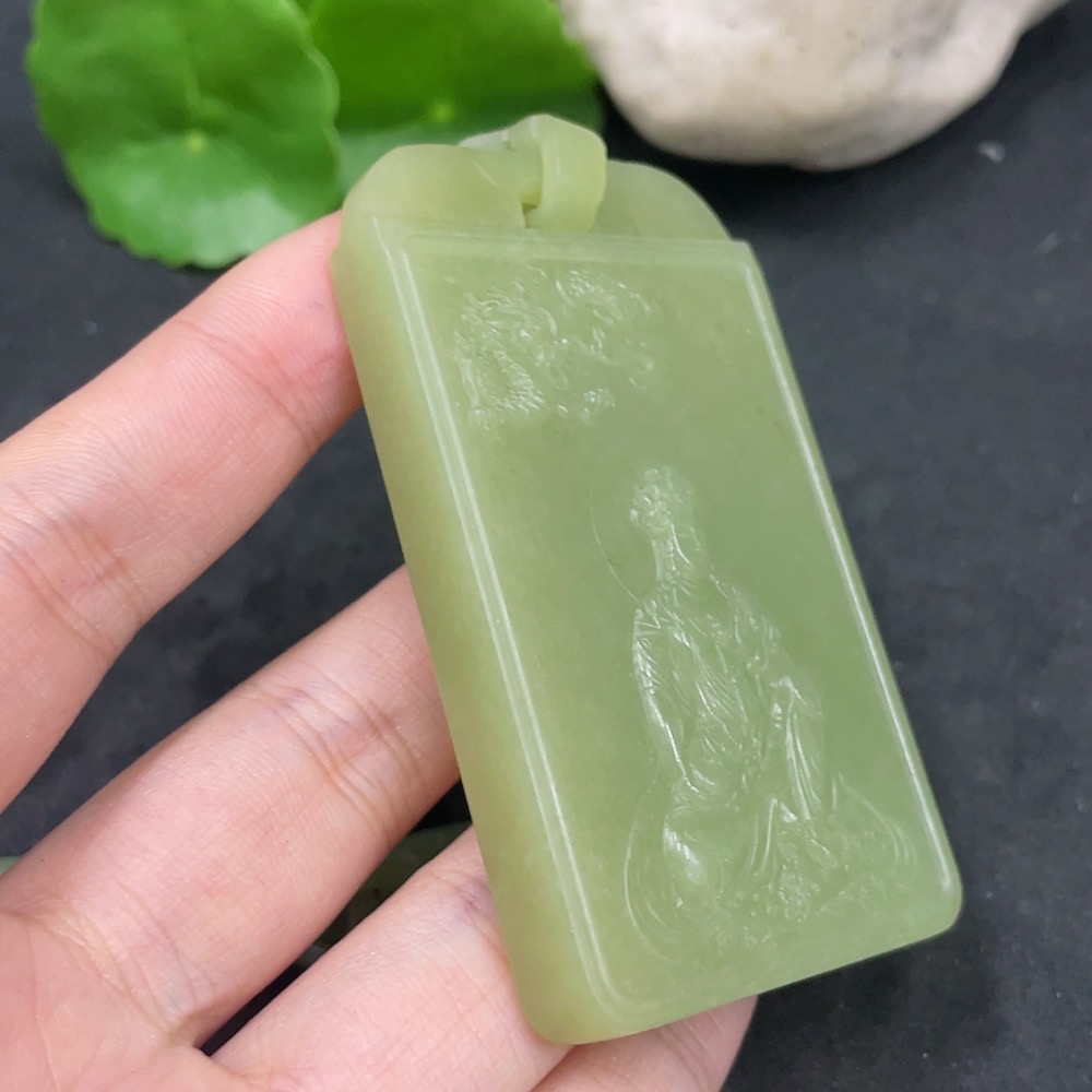 Hetian Jade Pendant Guanyin Craft Repair Total Weight Approx. (Including Chain) 109.4g