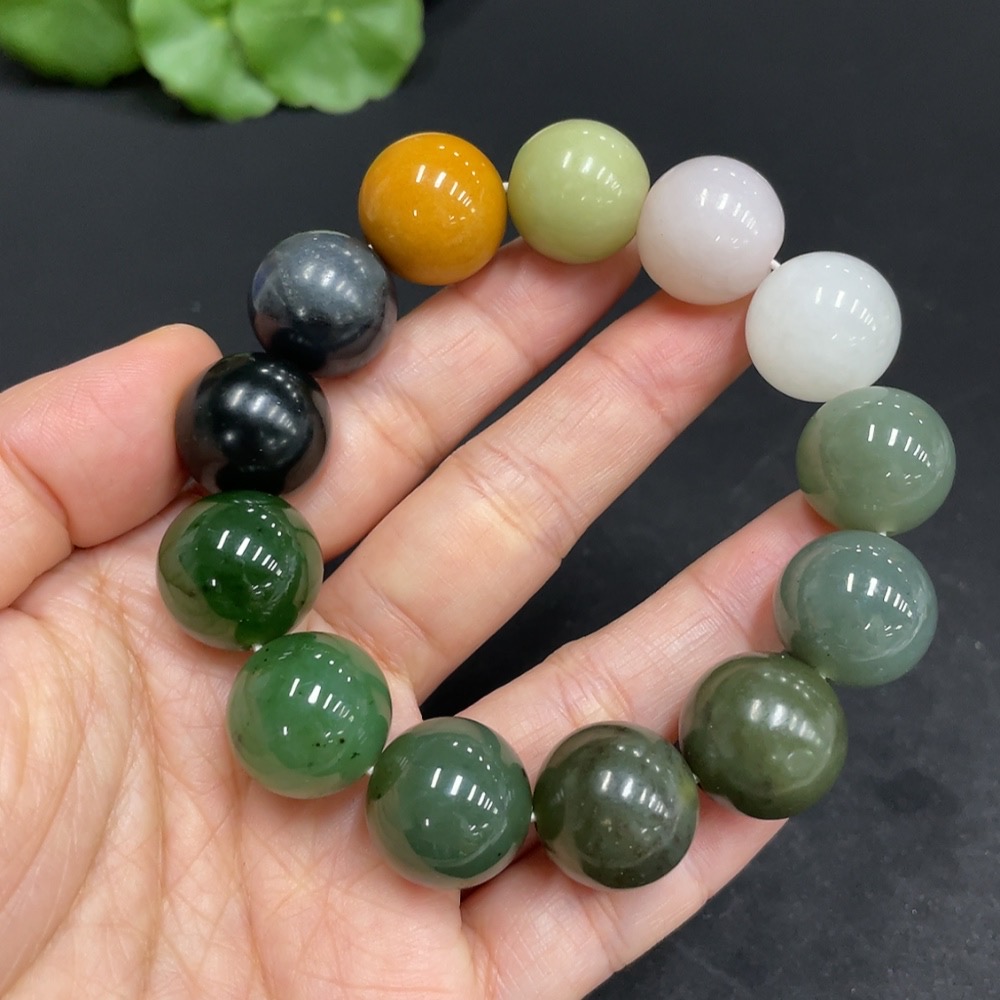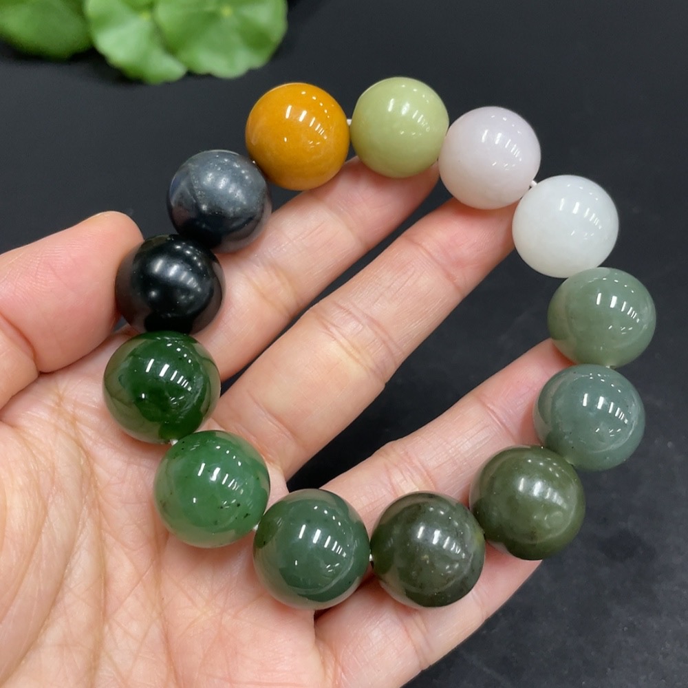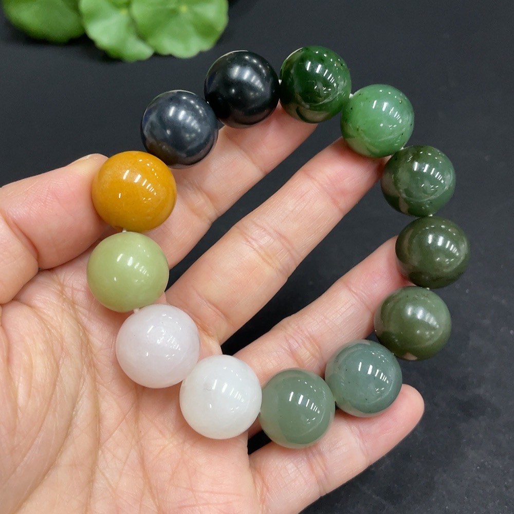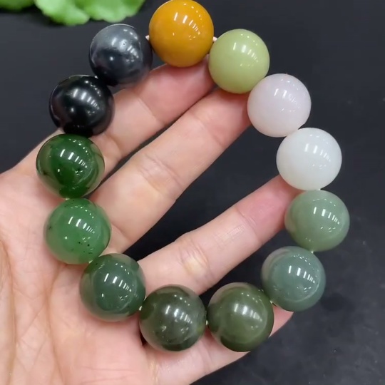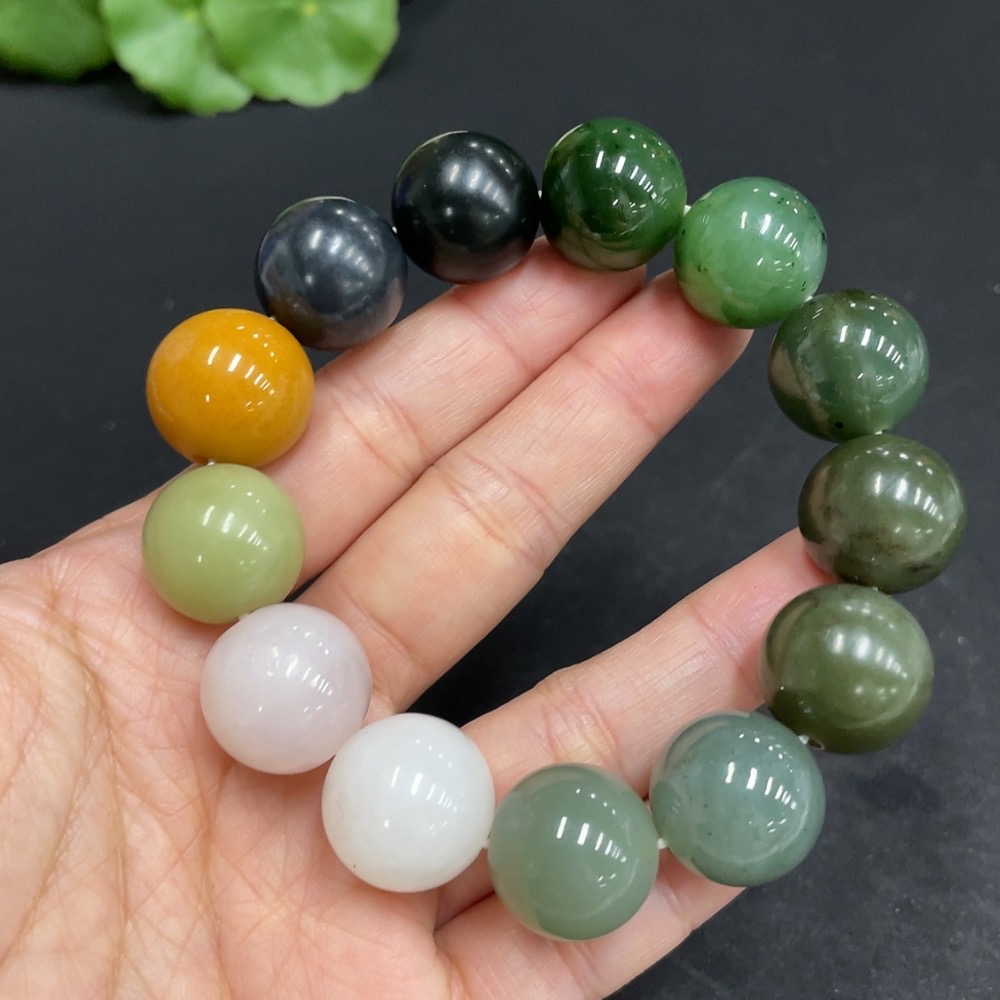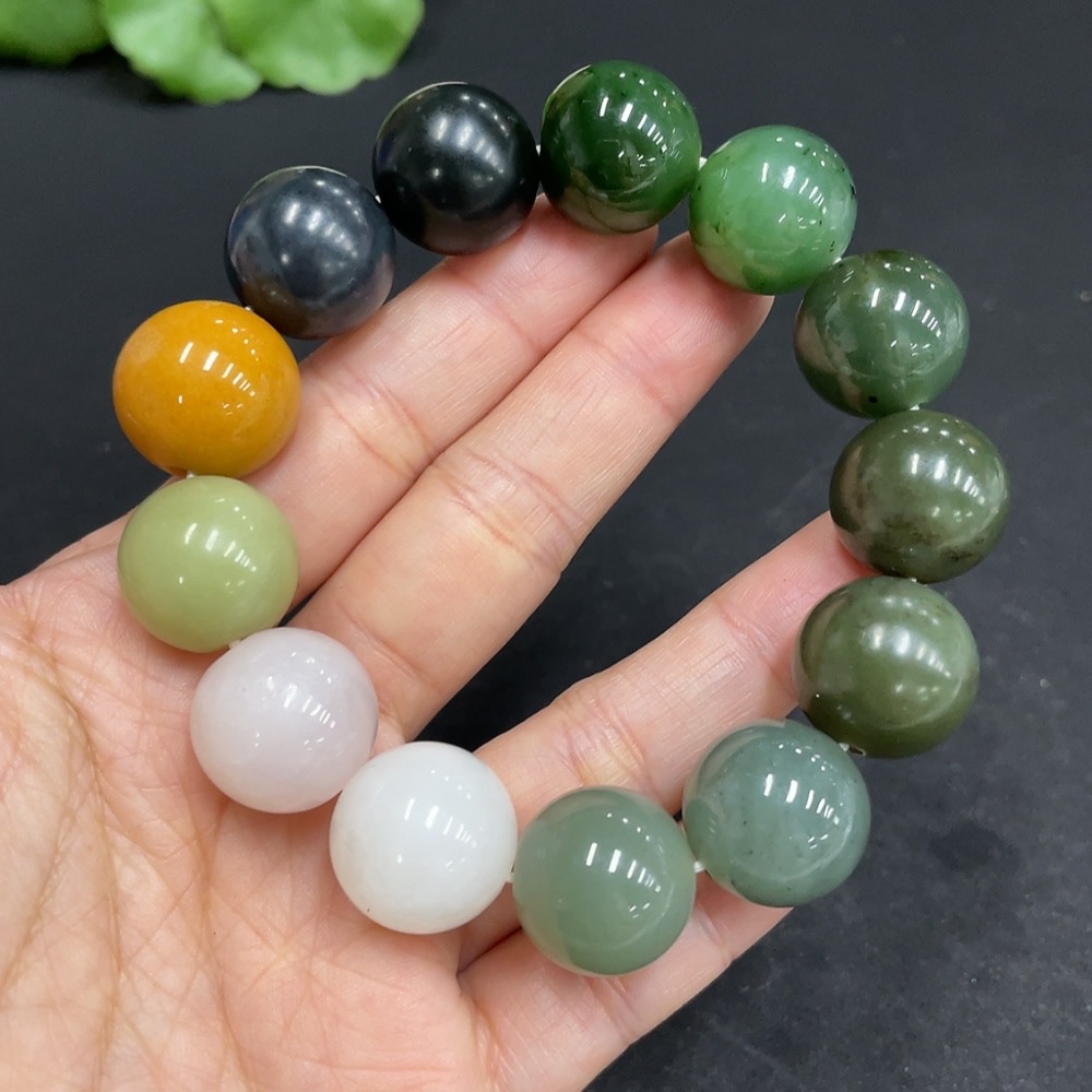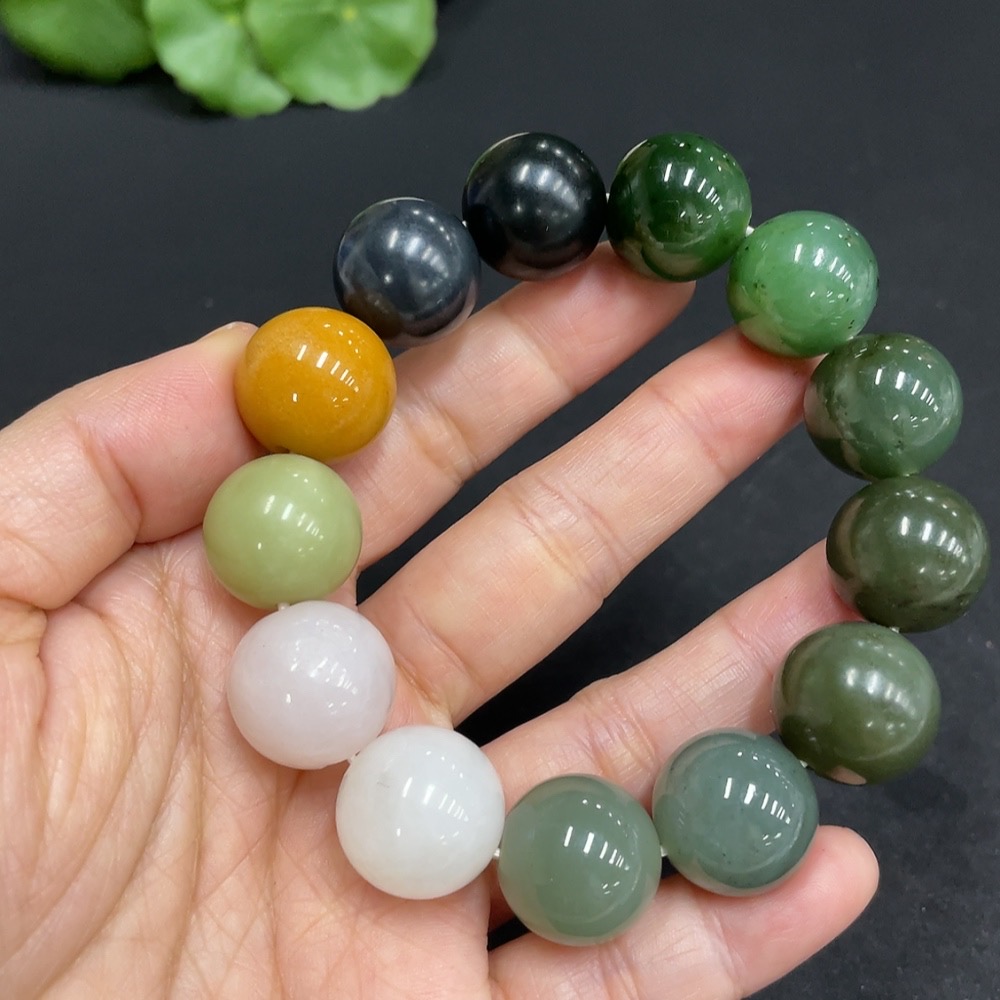 Hetian Jade Bracelet, Approx. 15.7mm, Total Weight Approx. 81.8g, Contains Other Mineral Components, White and Yellow Beads Not Hetian Jade