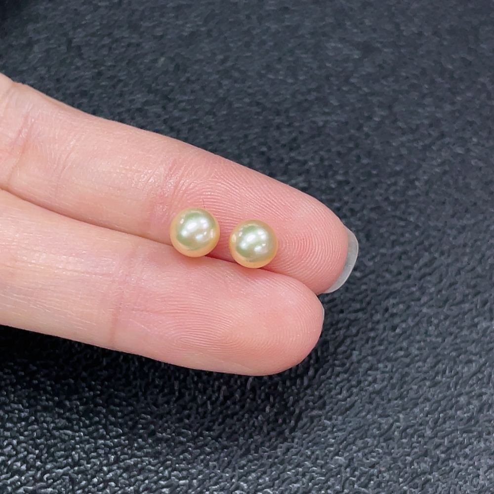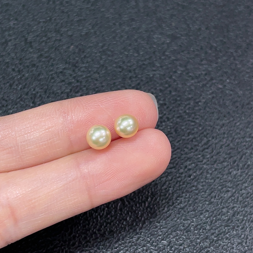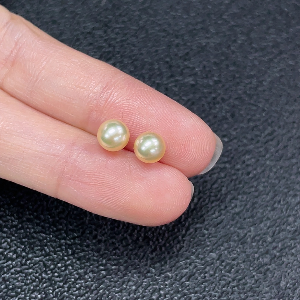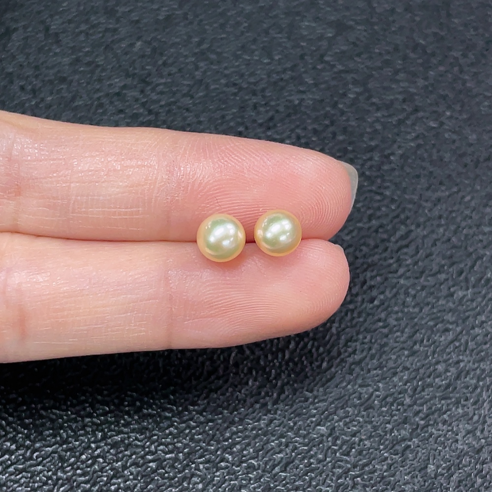 Seawater pearl earrings, color origin undetermined, no imprint, tested gold content 18k gold, total weight approximately 0.67g, size about 5.3mm