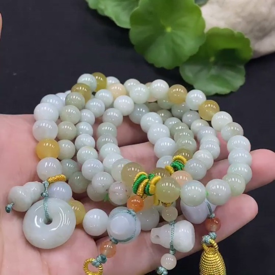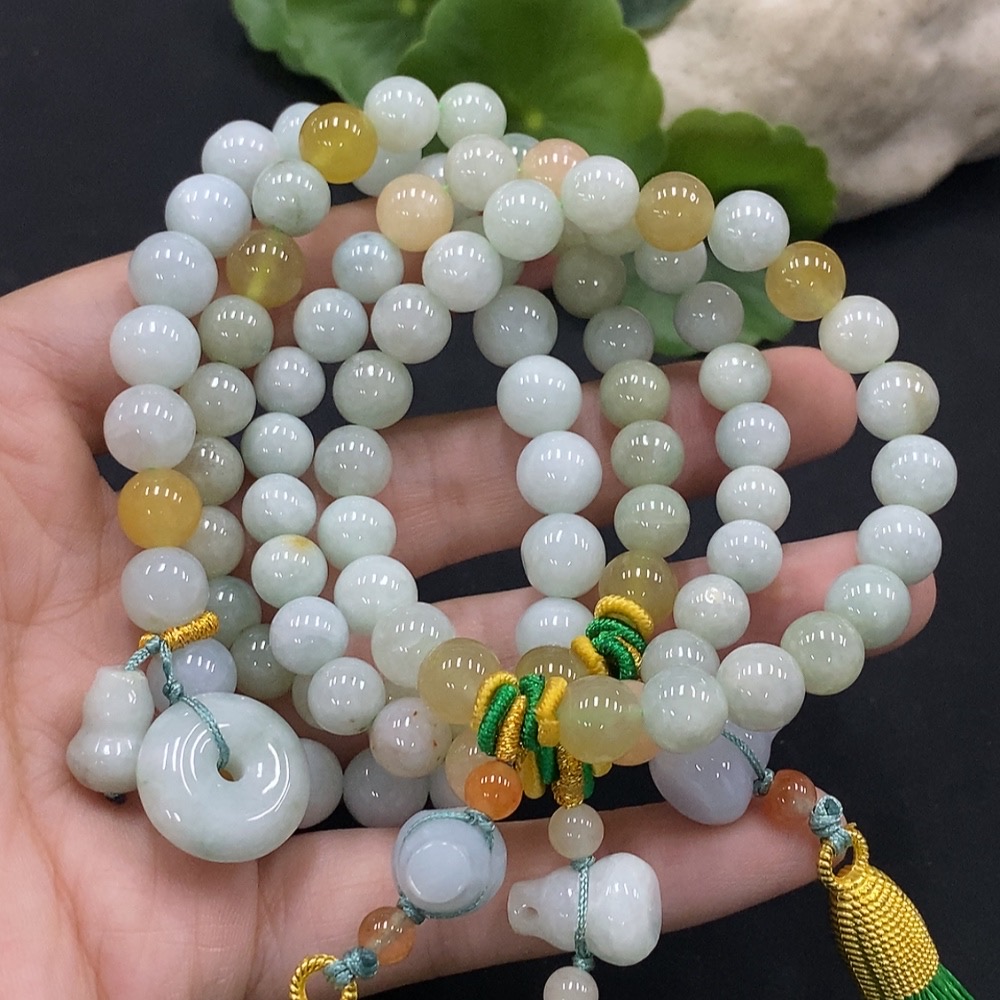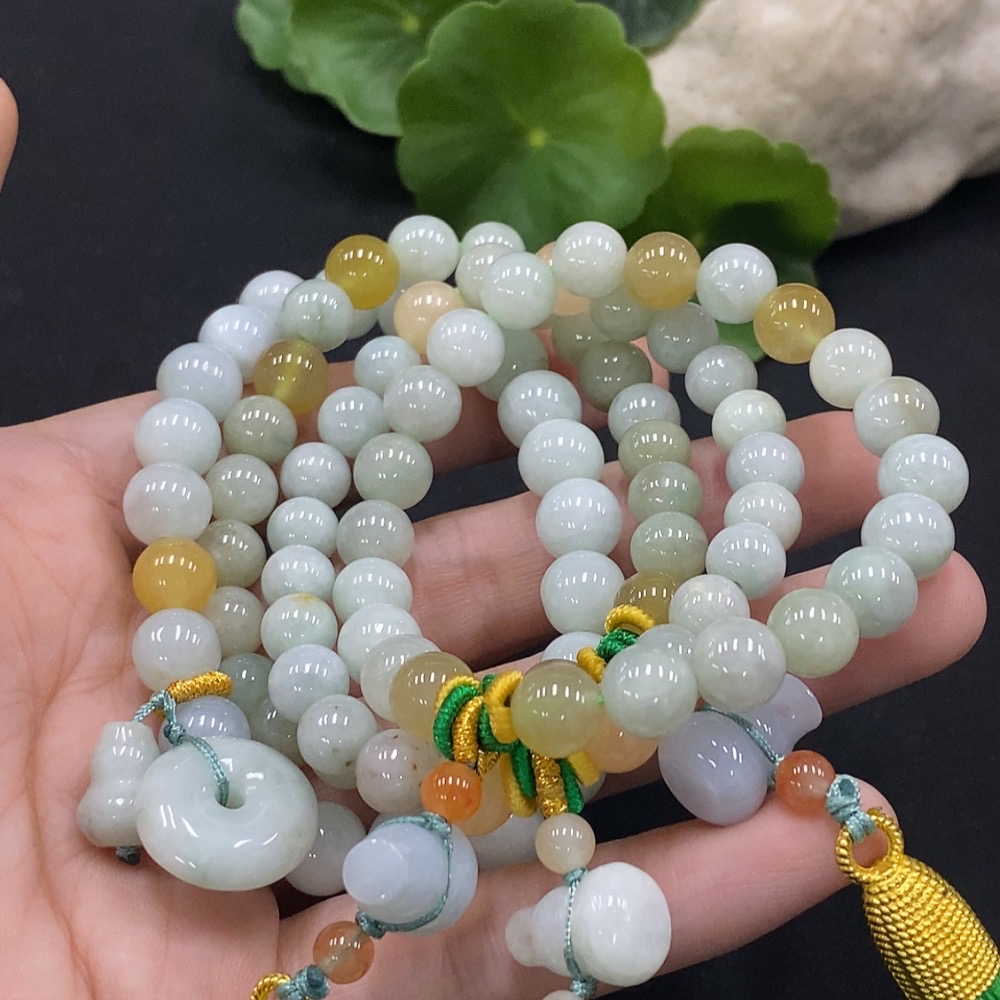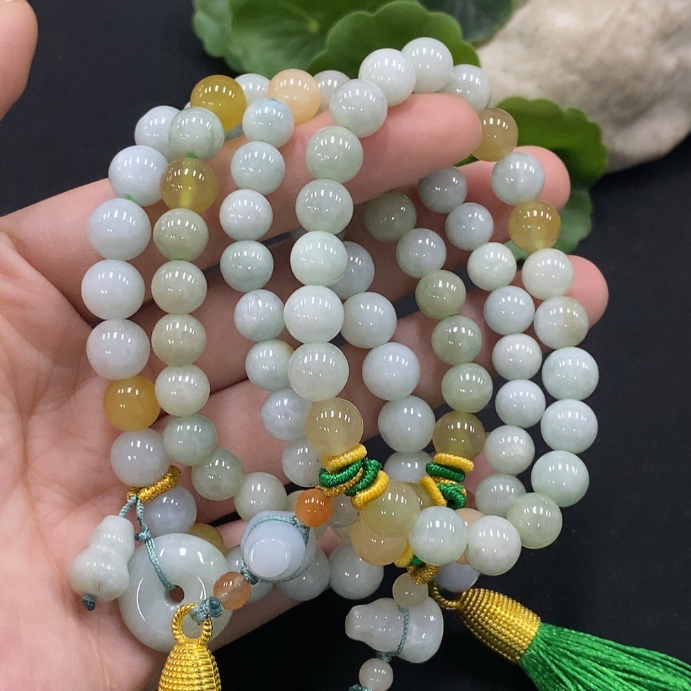 Jadeite Bracelet Sell as a Lot Total Weight Approx. 91.25g Yellow Beads Non-Grade A Non-Gold Inlaid