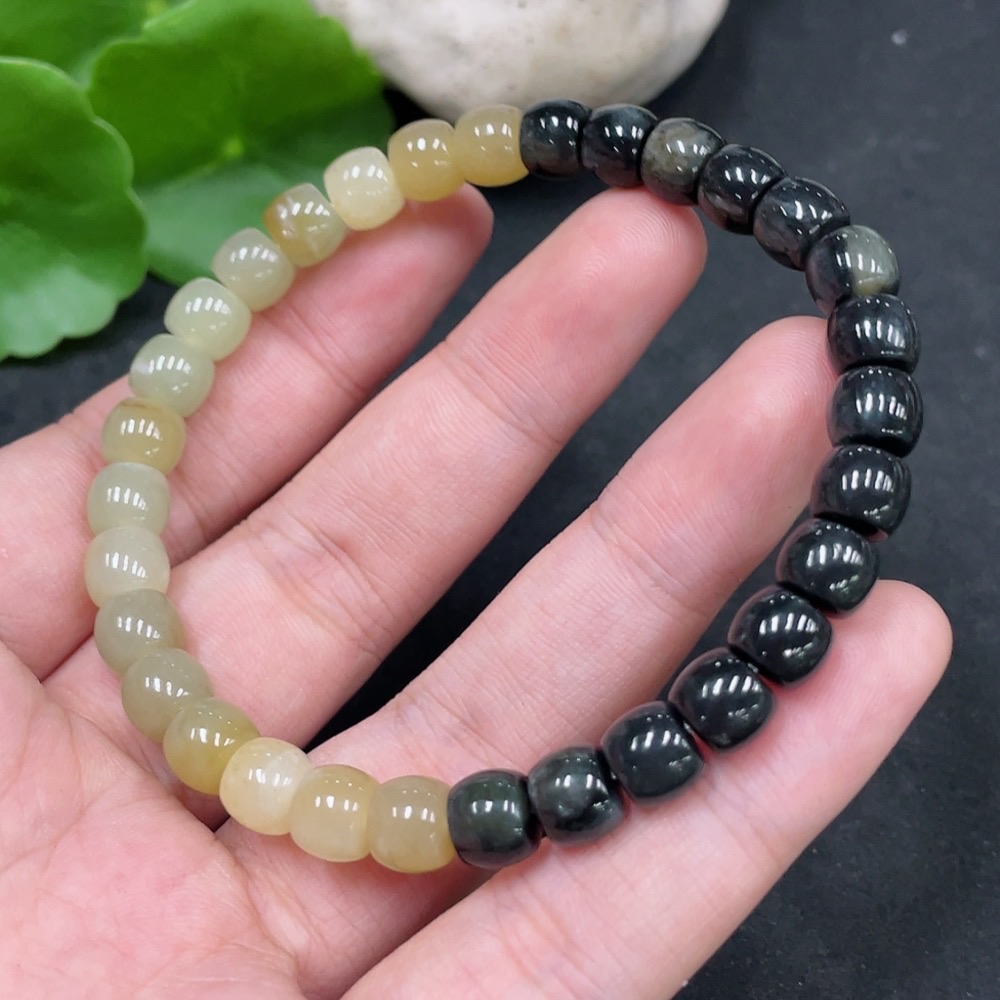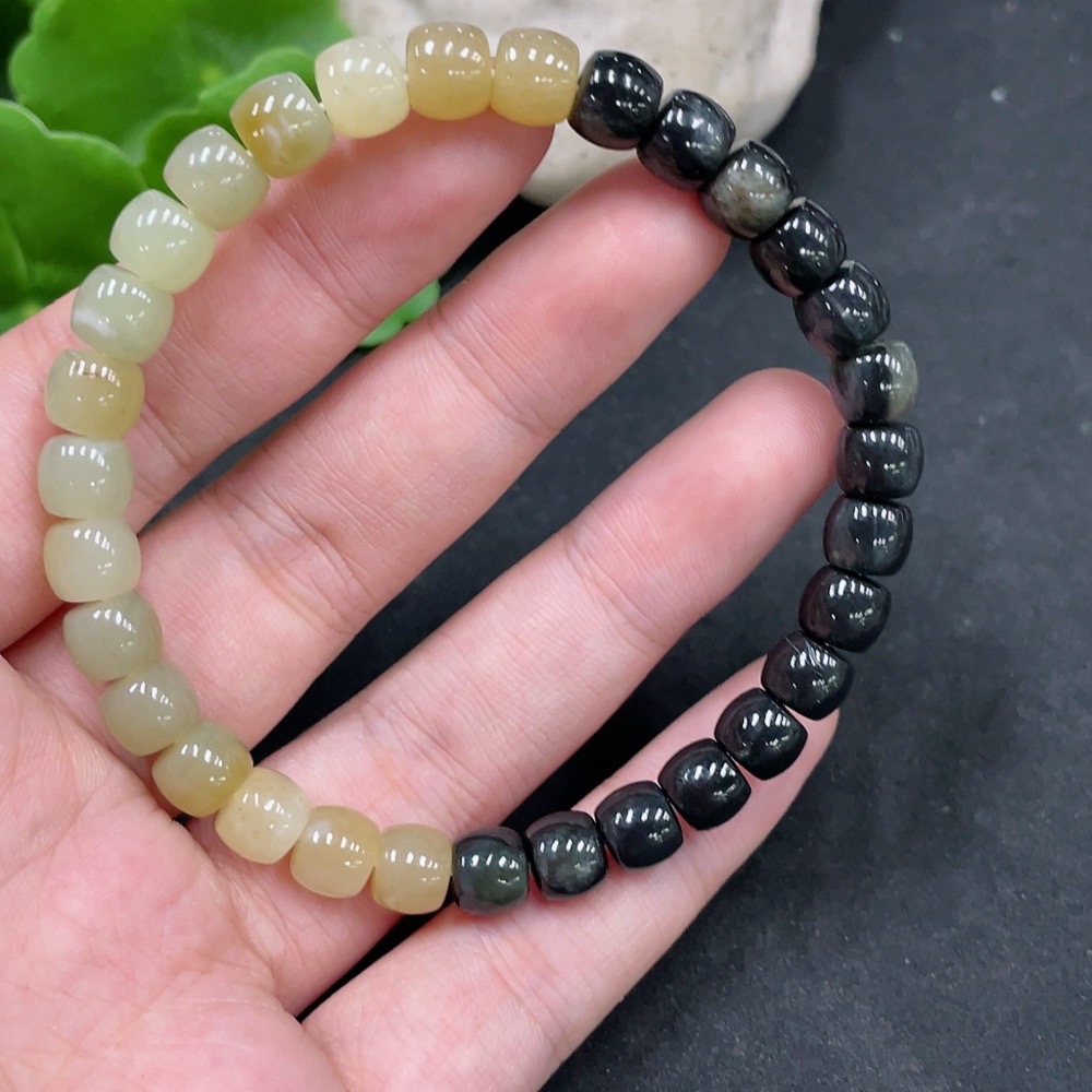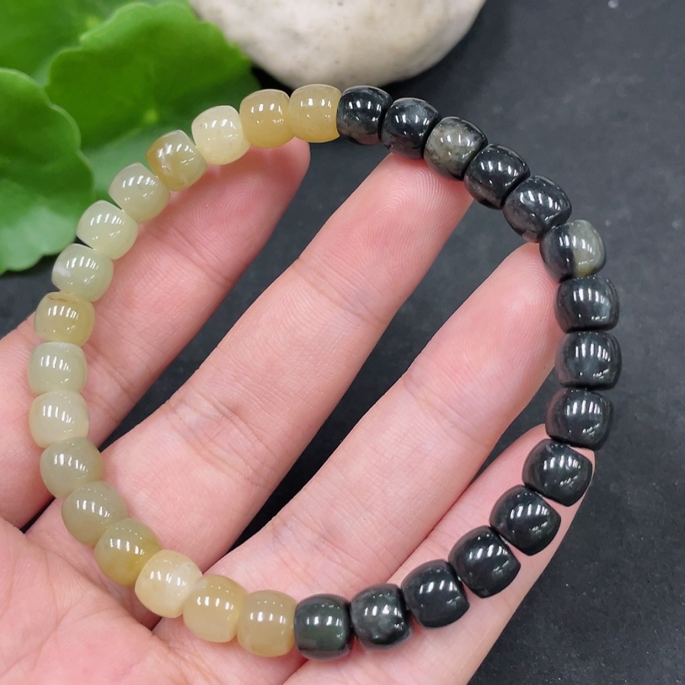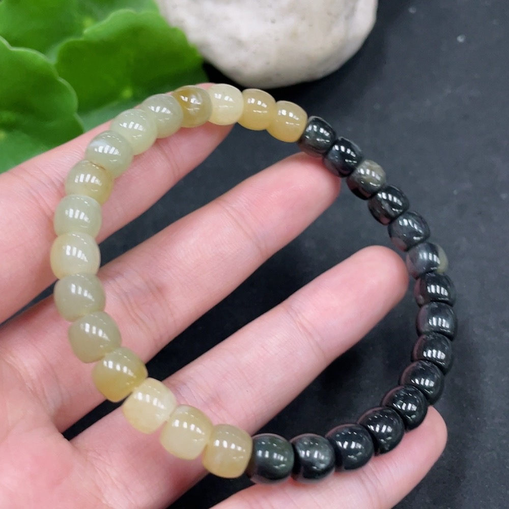 Hetian Jade Bracelet, approx. 6.8mm, total weight approx. 17.6g, containing other mineral components