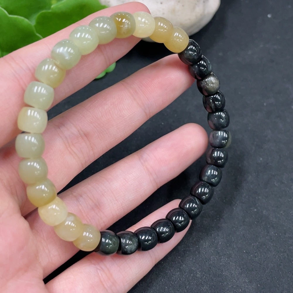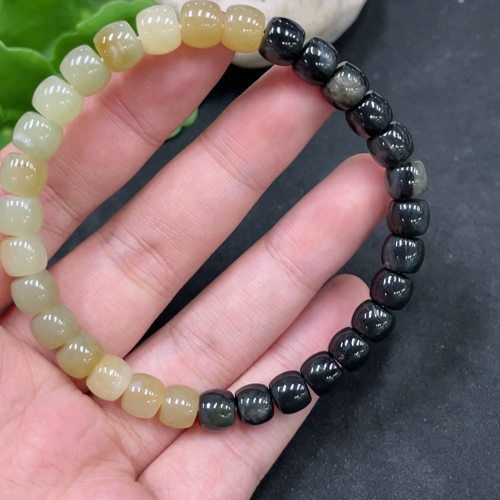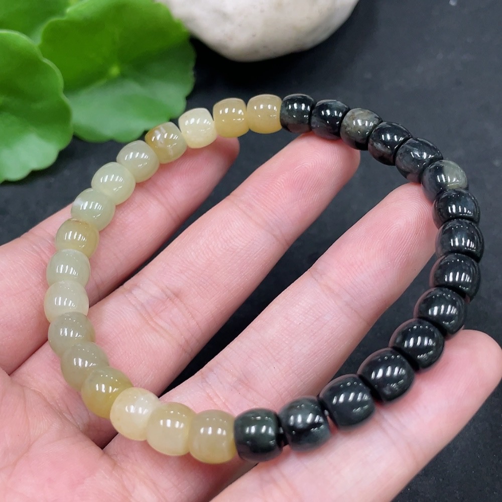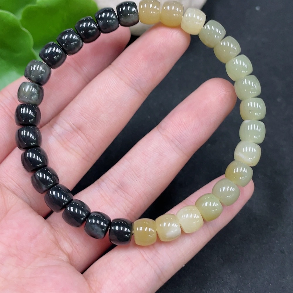 Hetian Jade Bracelet, approx. 6.8mm, total weight approx. 17.6g, containing other mineral components