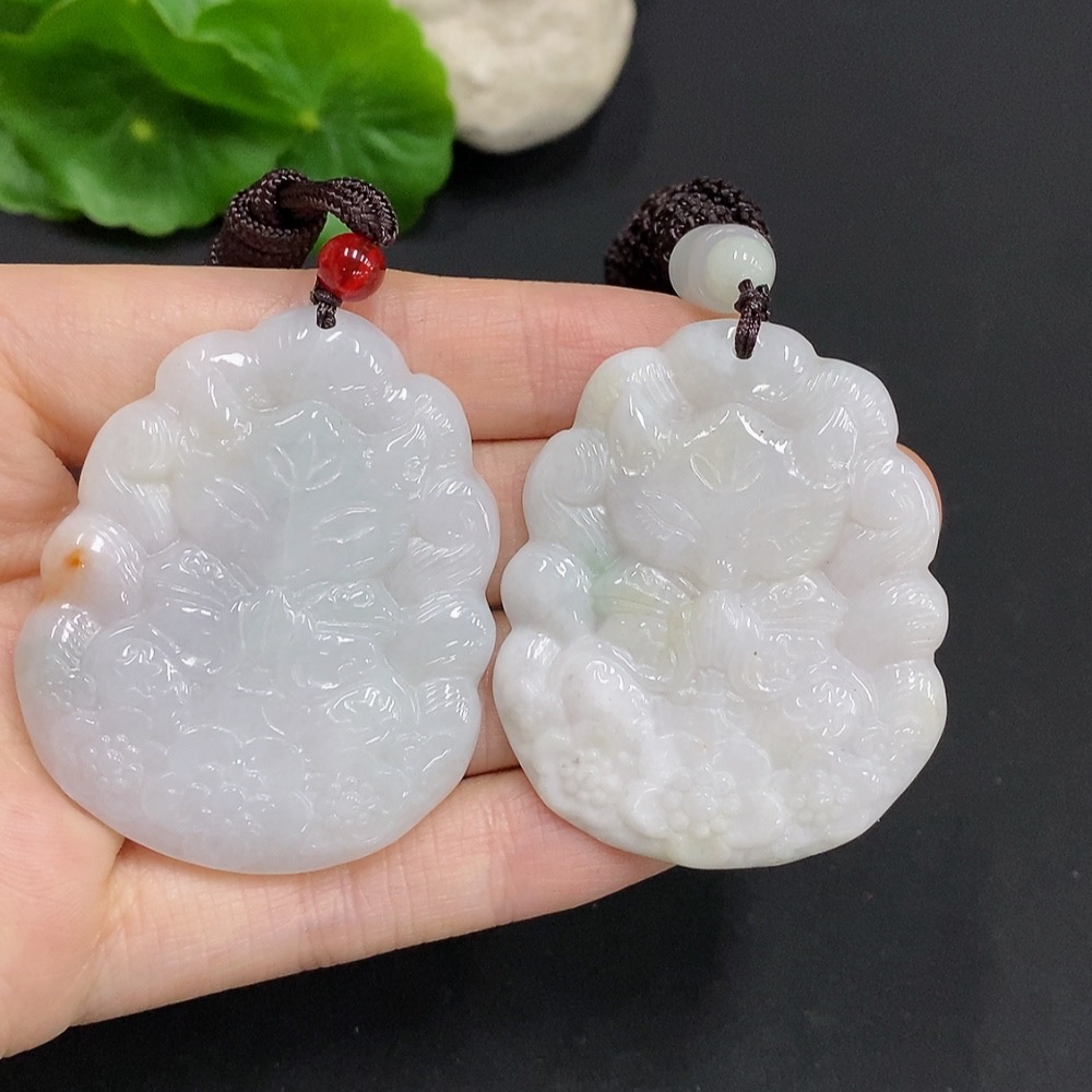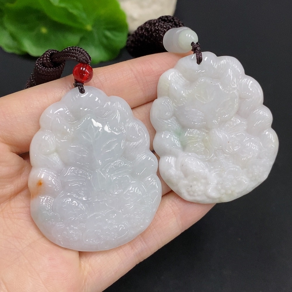 Jadeite Nine-Tailed Fox Pendant Lot, Total Weight Approx. 53g (Including Rope), Beads Not Jadeite