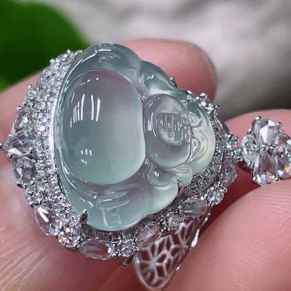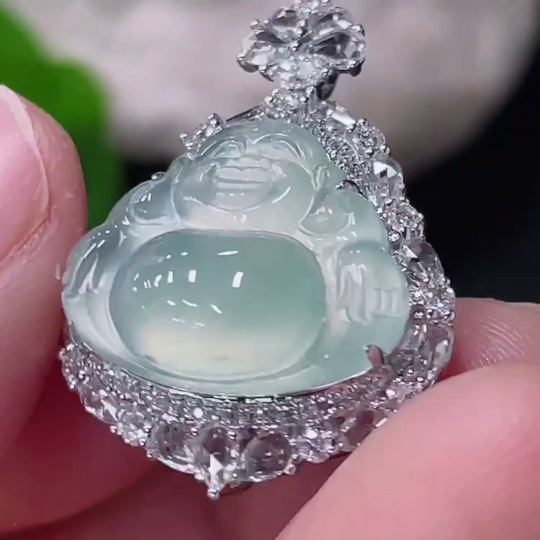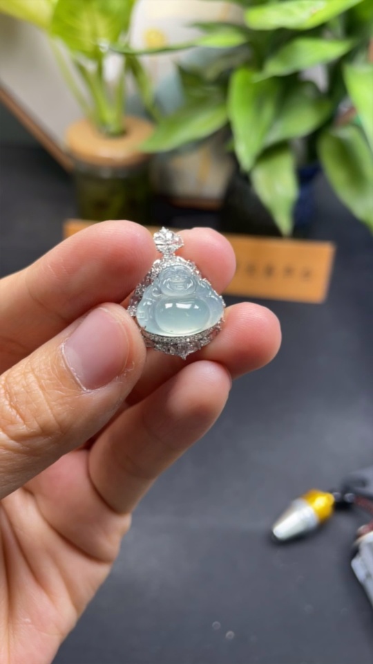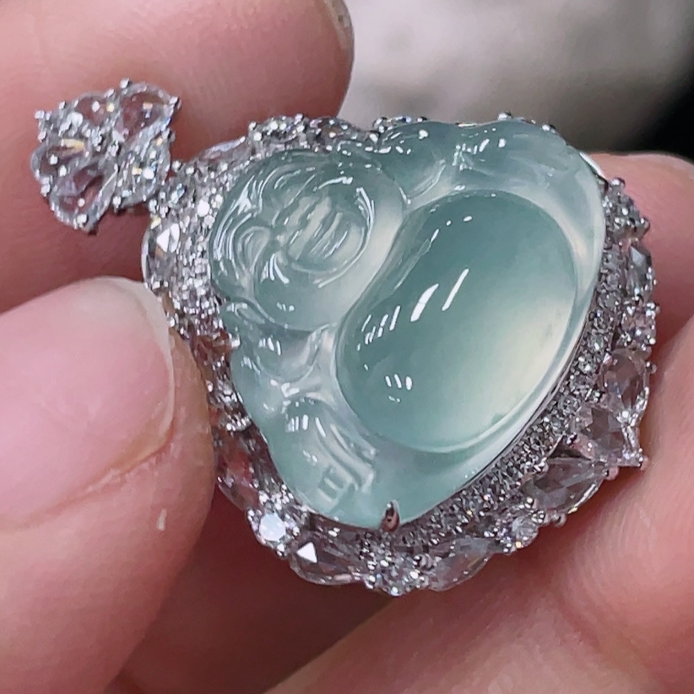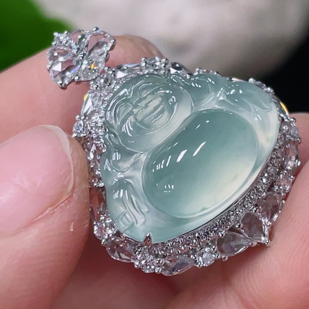 Jadeite Buddha Pendant with 18K Gold and Diamond Accents, Total Weight Approximately 4.57g