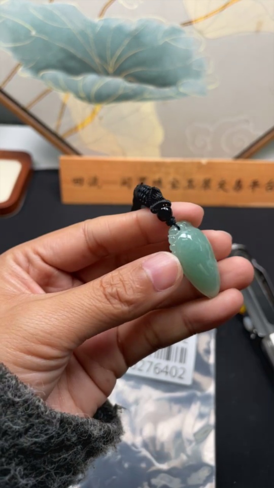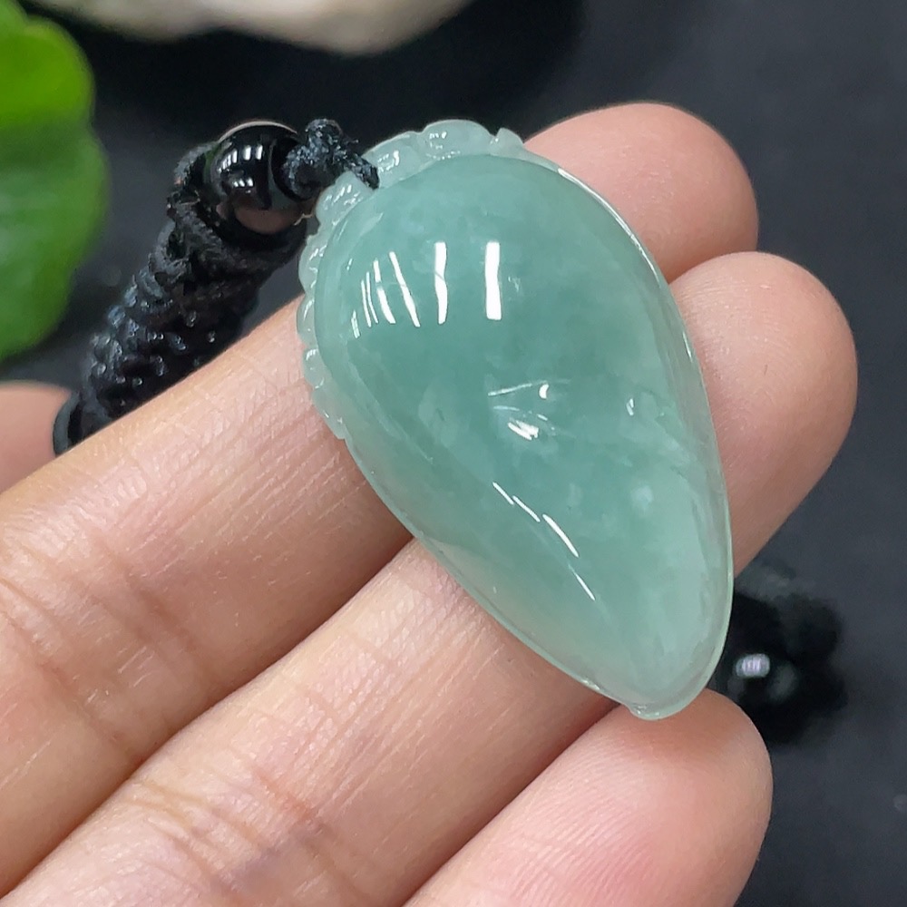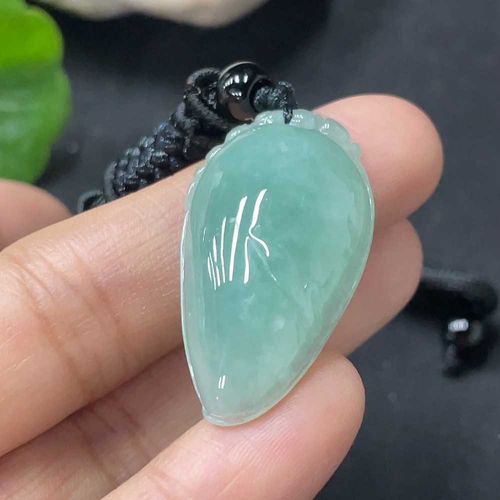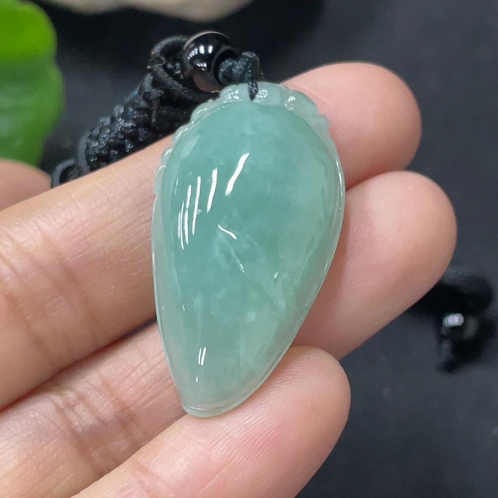 Jadeite Pendant Fu Gua, Total Weight Approx. 10g Including Rope