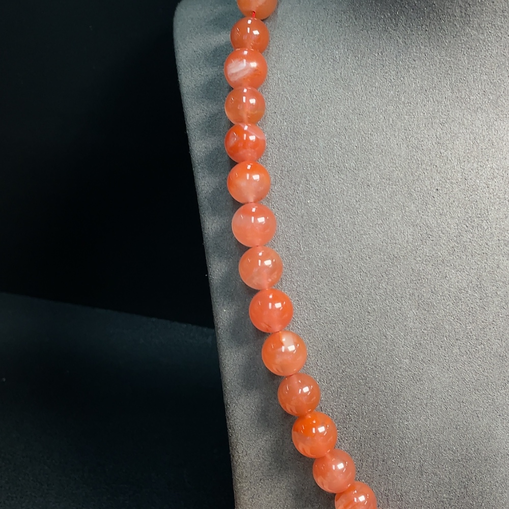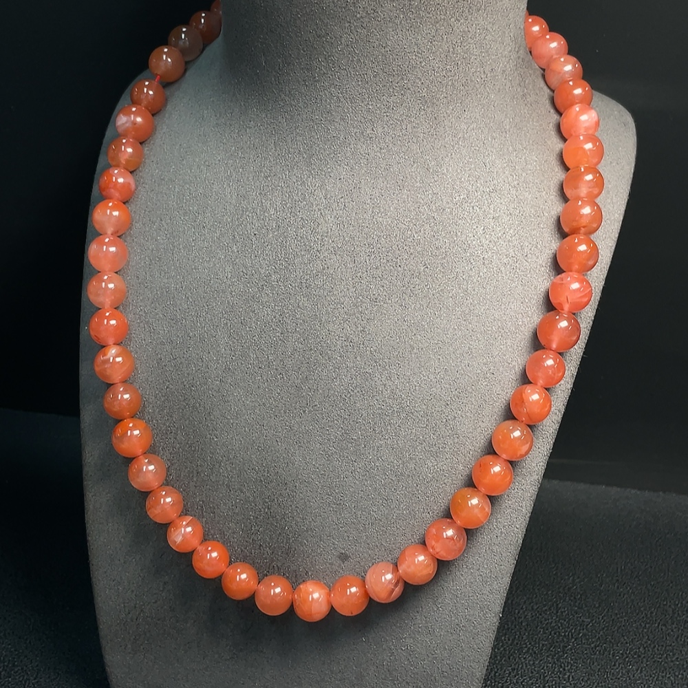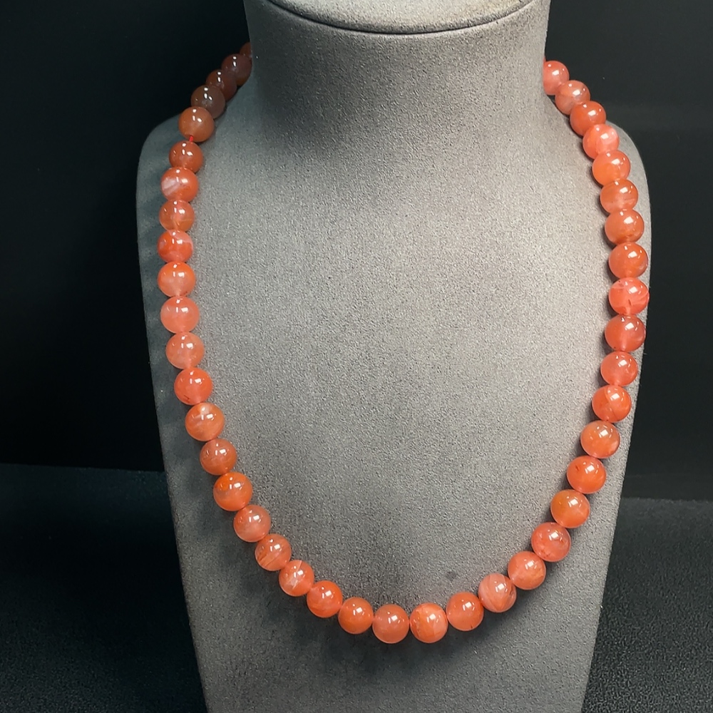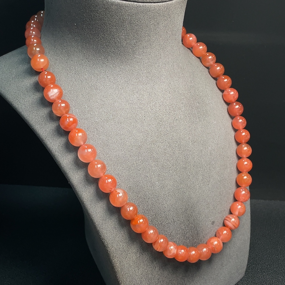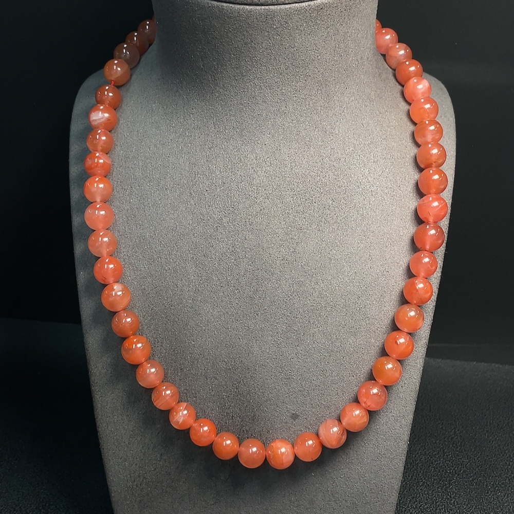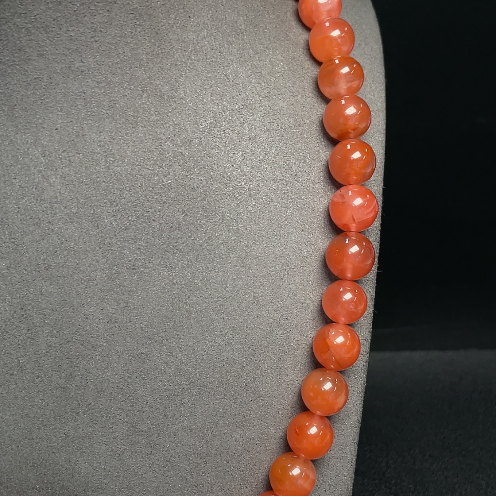 Trezaar - Red Agate Bead Necklace with Visible Organic Matter, Total Weight Approx. 105.28g, Size 11.6mm, Non-Gold