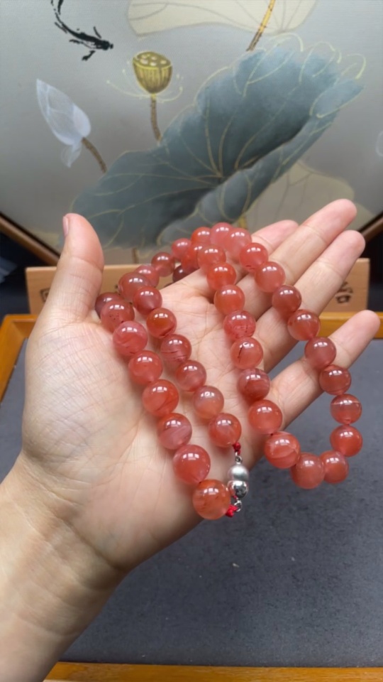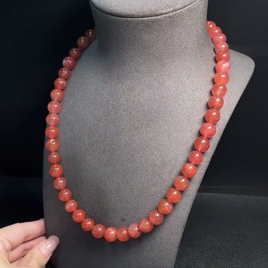 Red Agate Bead Necklace with Visible Organic Matter, Total Weight Approx. 105.28g, Size 11.6mm, Non-Gold