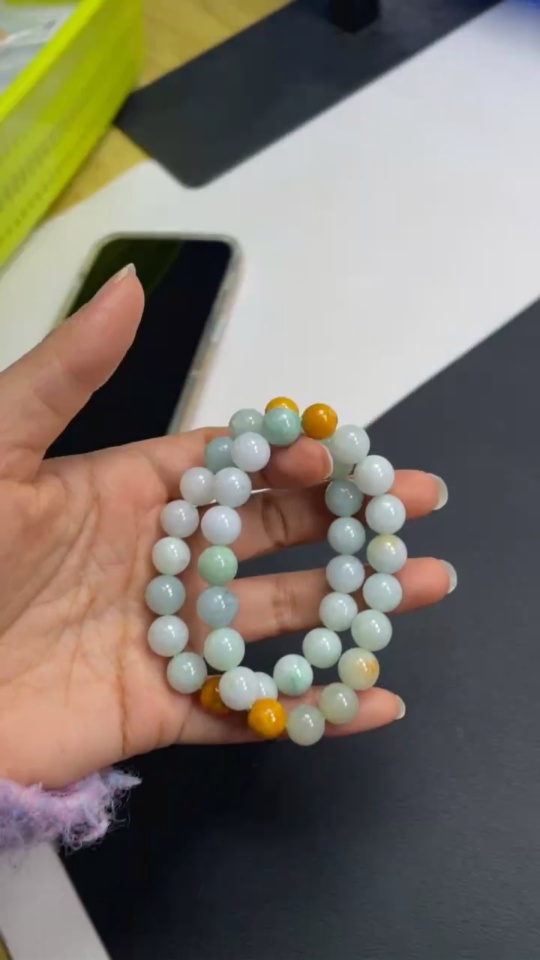 Jadeite Bracelet Total Weight Approx. 60.4g Yellow Beads Non-Grade A