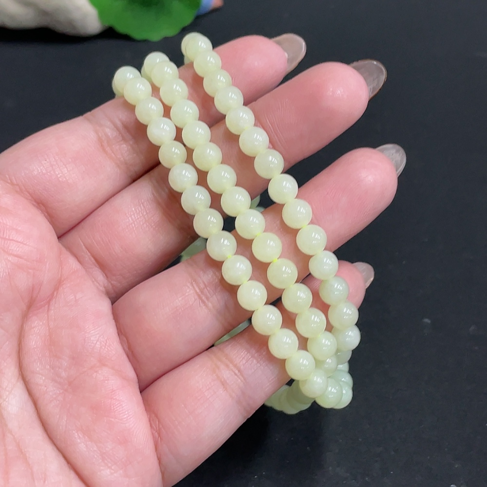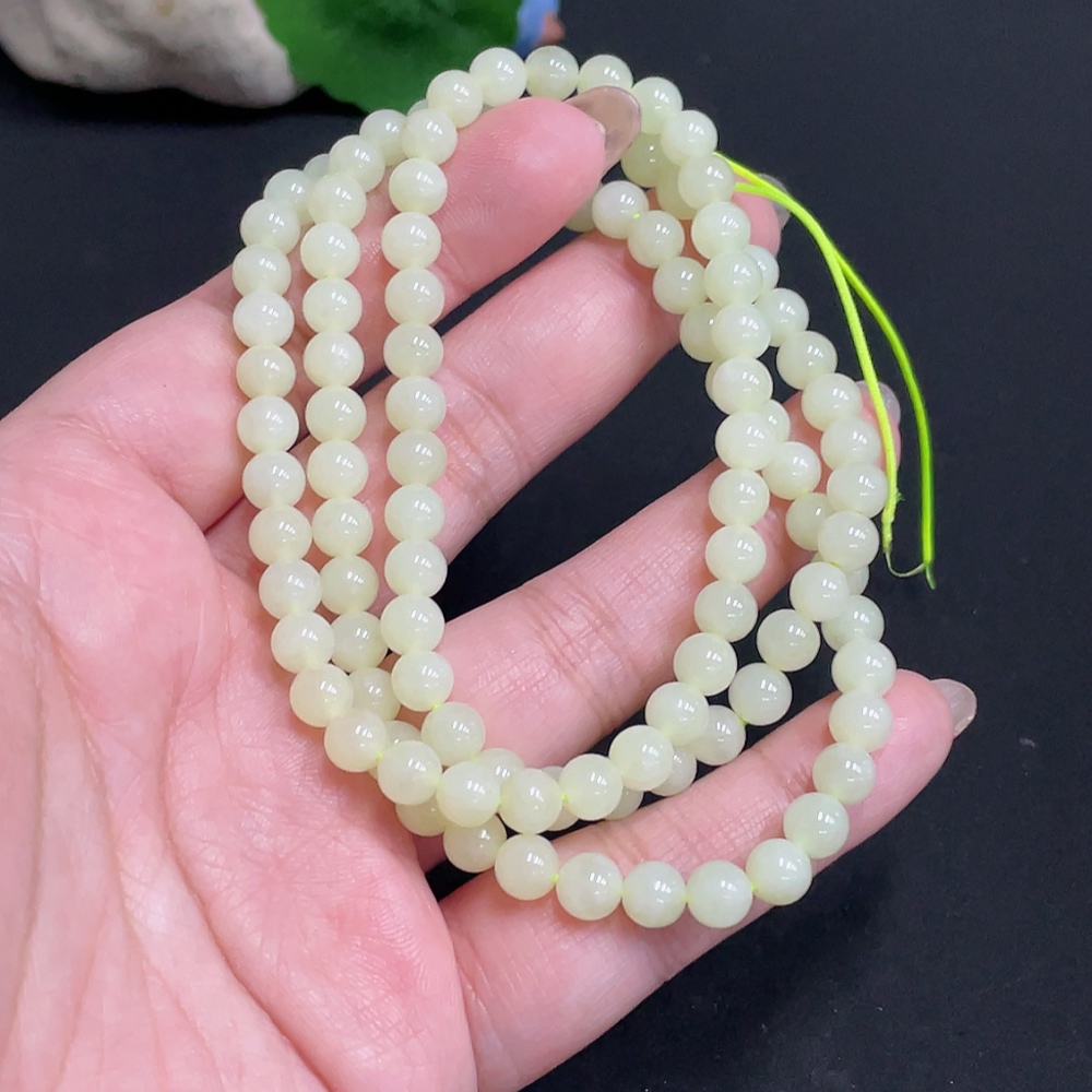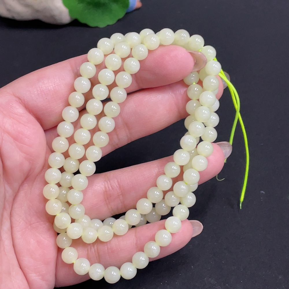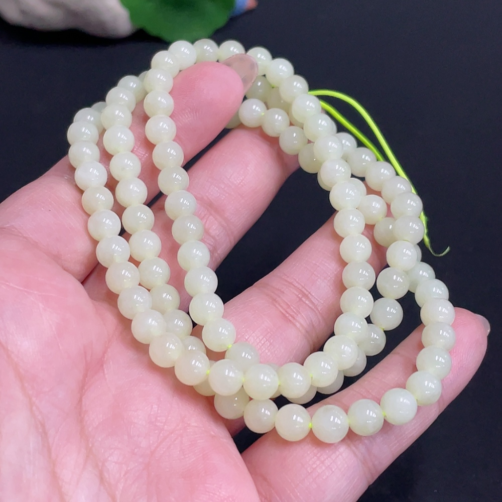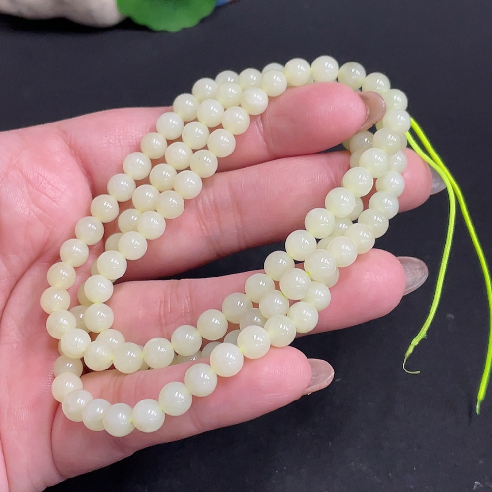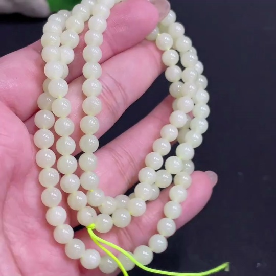Hetian Jade Bead Necklace Approximately 5.9mm Total Weight About 35.1g