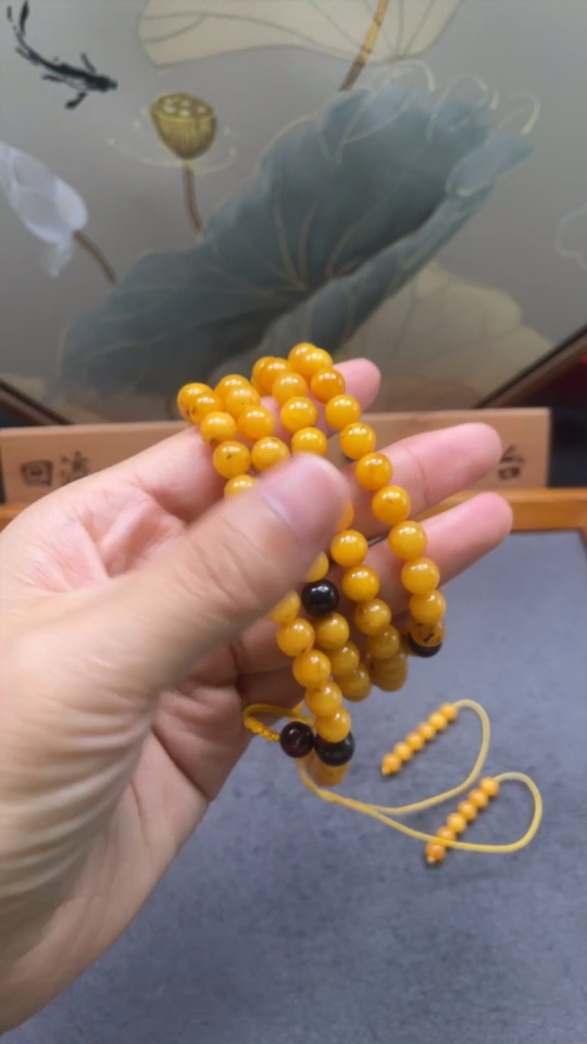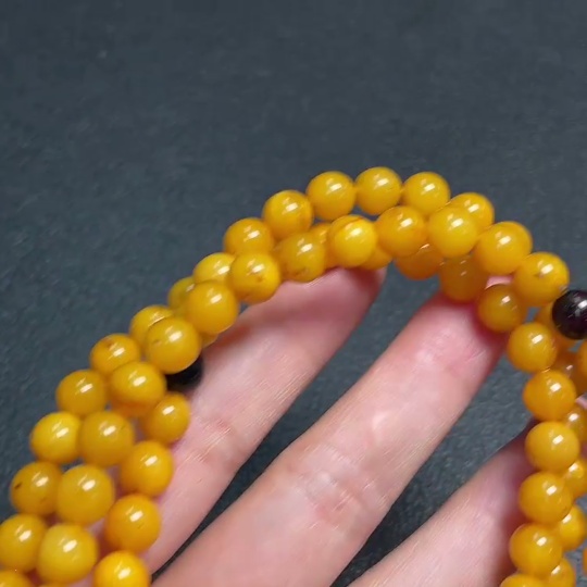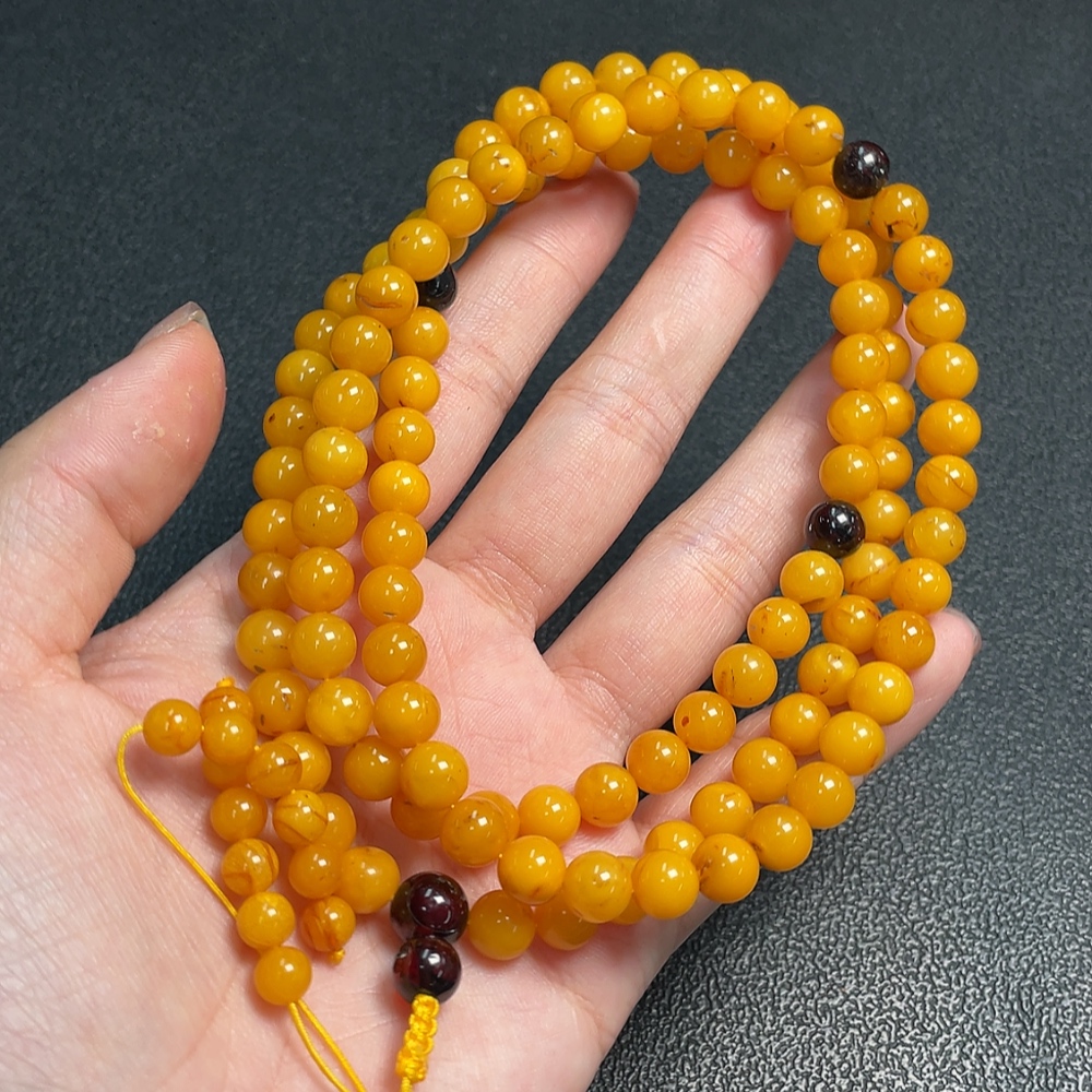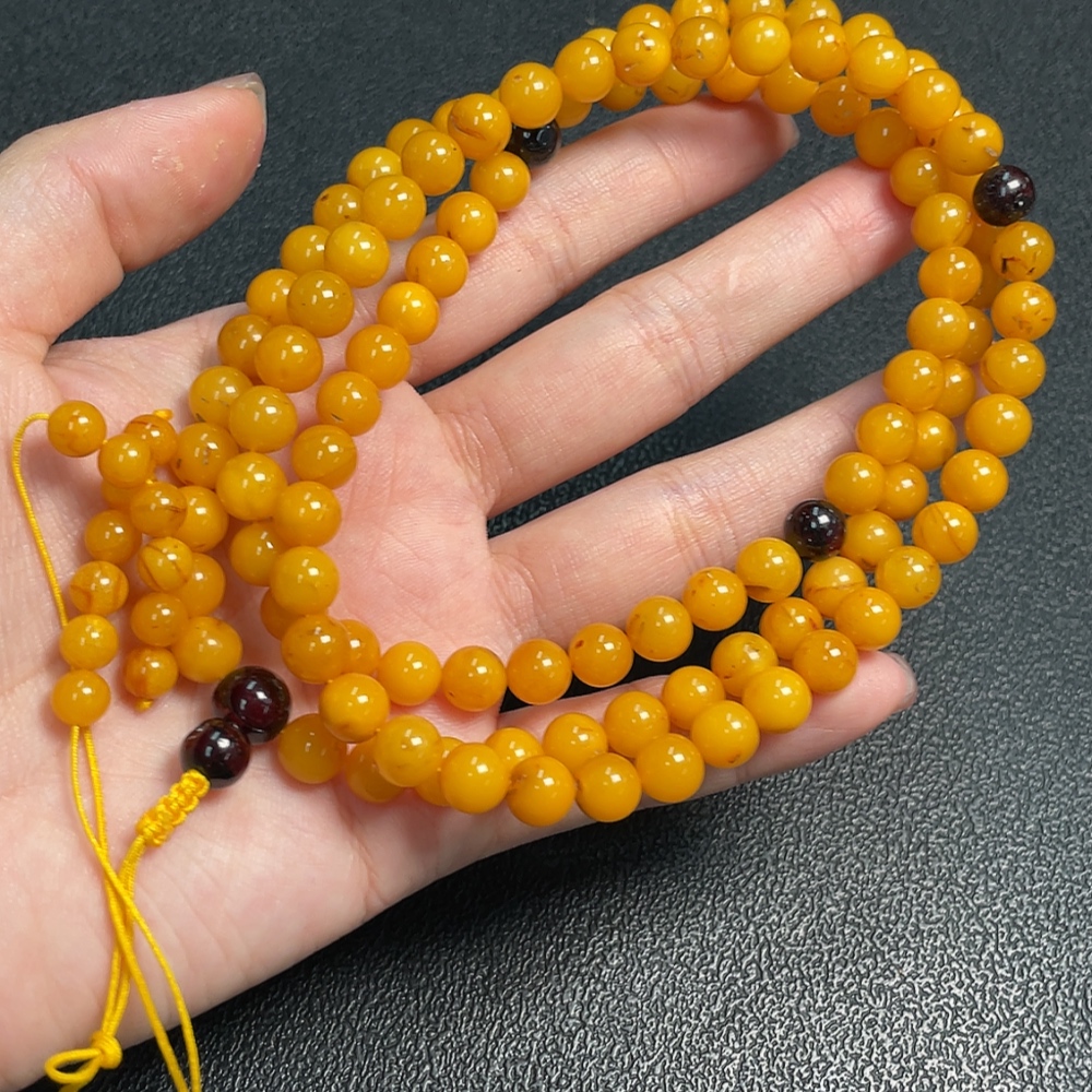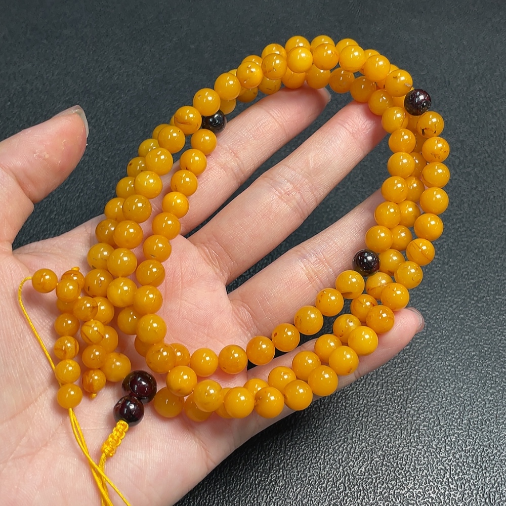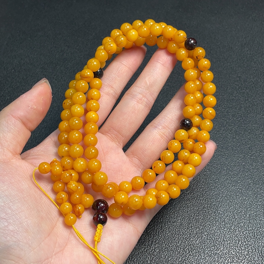 Amber Beeswax Bead Necklace, Total Weight Approx. 25.93g, Size About 7.1mm